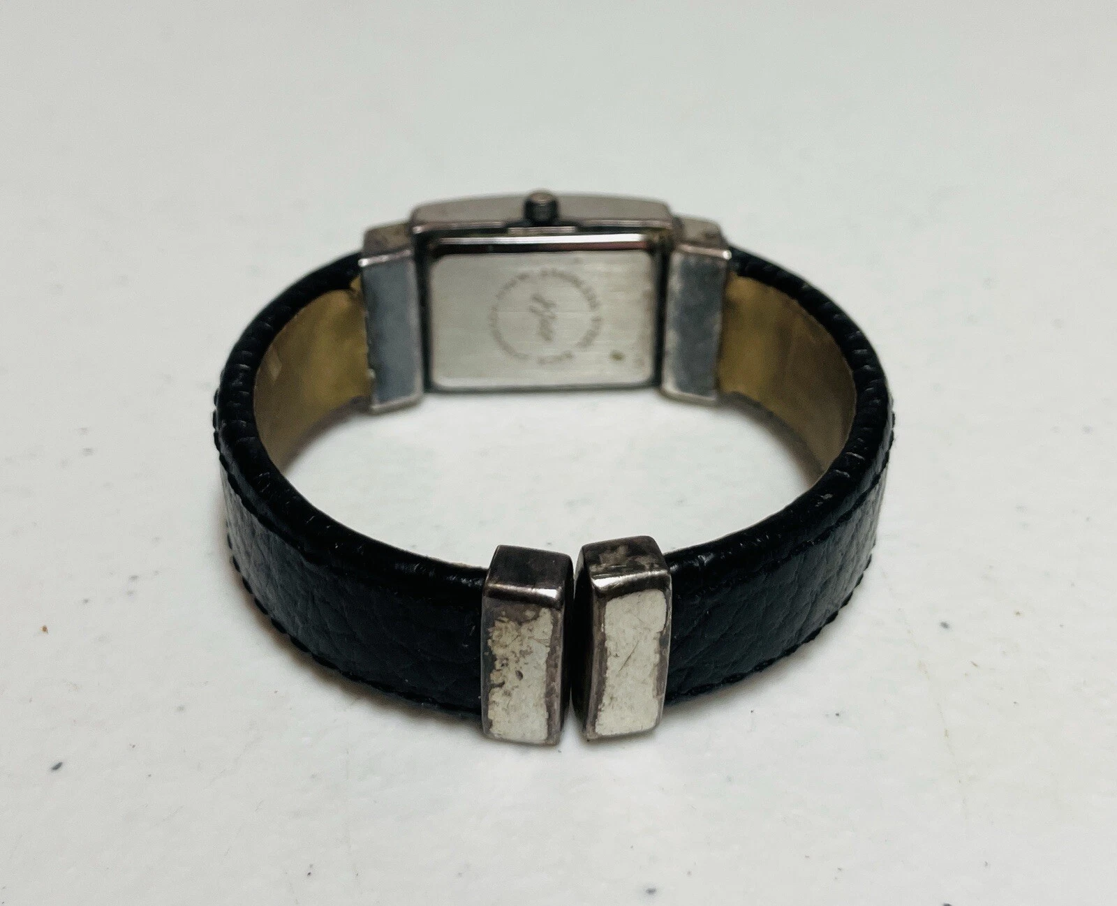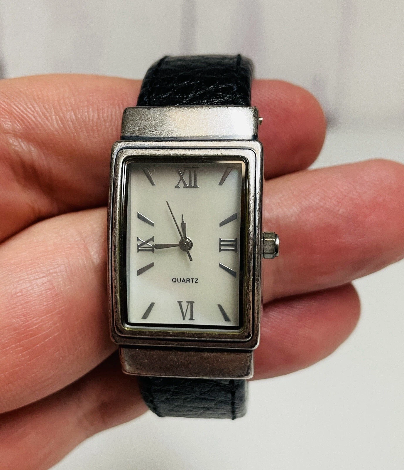 J. Jill White Dial Silver Tone Rectangle Case Cuff Hinge Bangle Band Watch