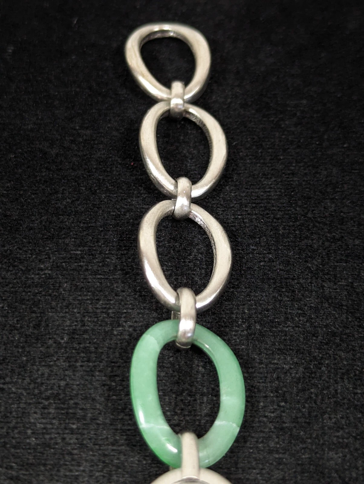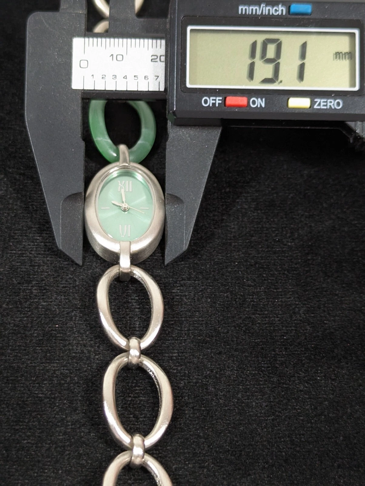 J. Jill Green Dial Silver Tone Oval Case Link Bracelet Band Watch 7 Inch