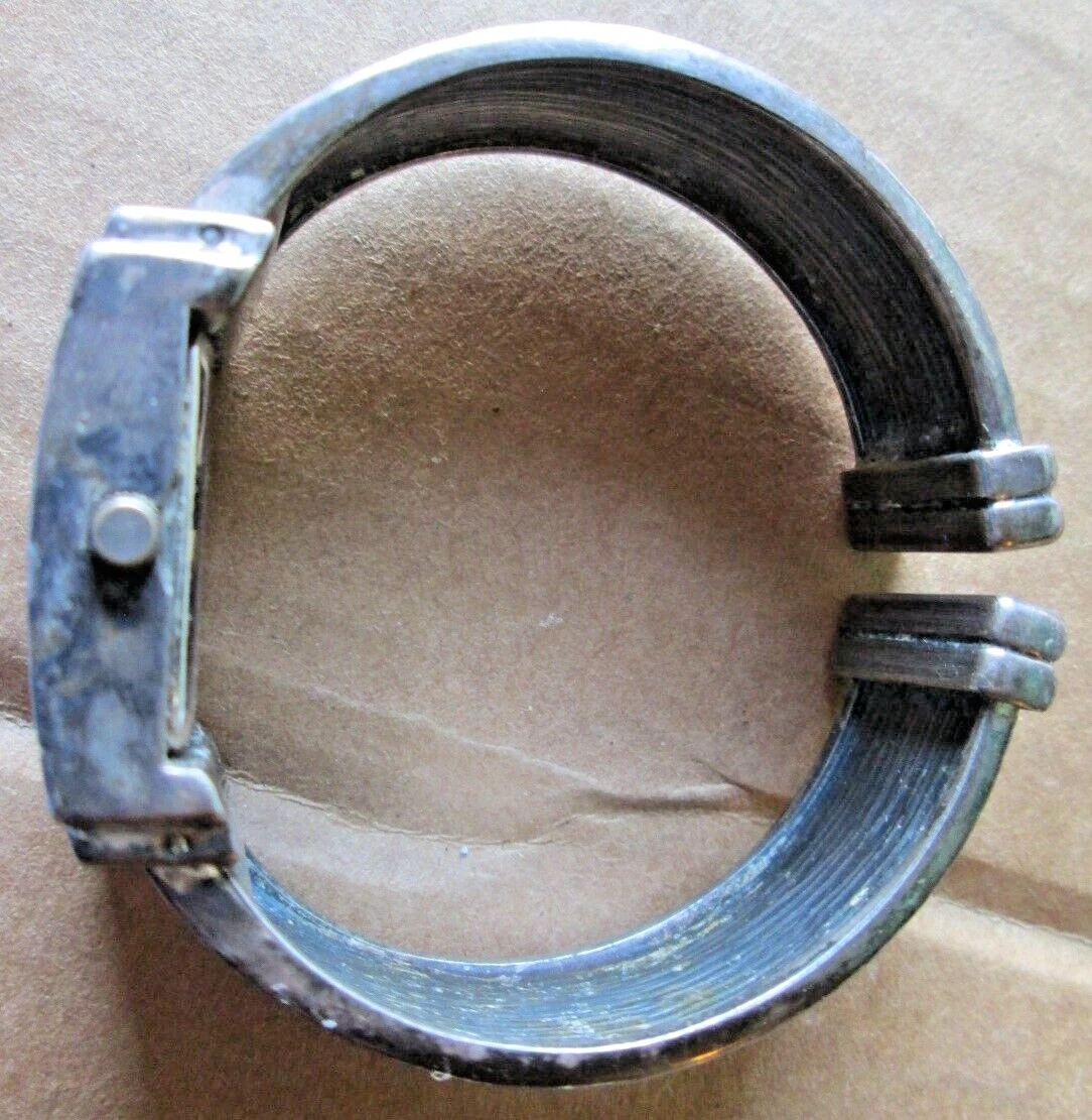 VINTAGE J. JILL ANALOG QUARTZ 22MM FLEX WEAVE METAL SILVER CUFF, WORKING, USED