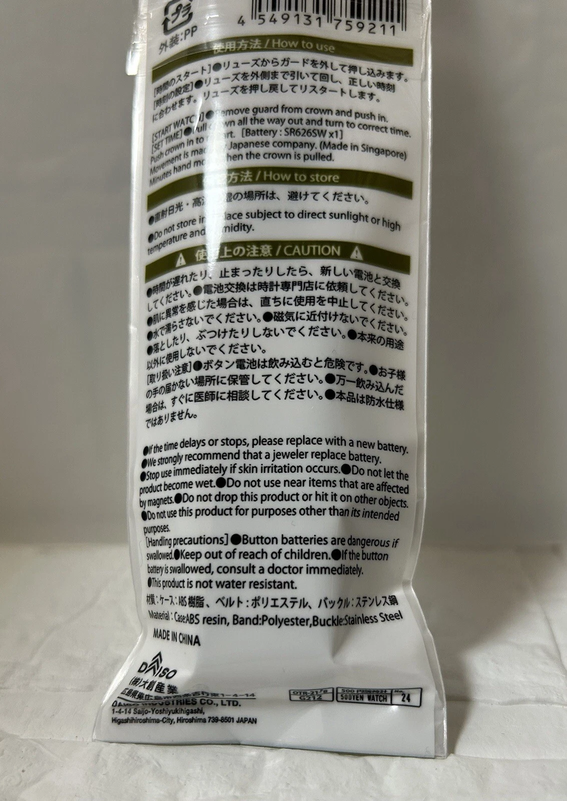 DAISO mili watch Japanese-made movement(SEIKO) BLACK