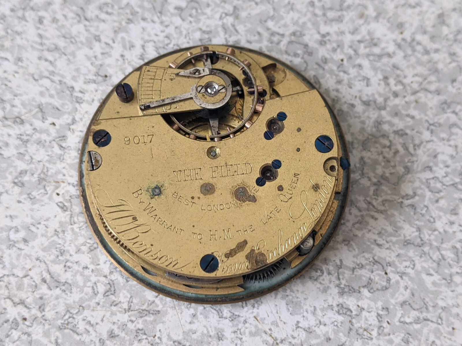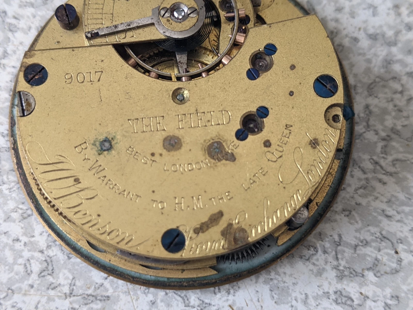 ANTIQUE POCKET WATCH MOVEMENT - J. W BENSON- THE FIELD- SPARES REPAIRS 2