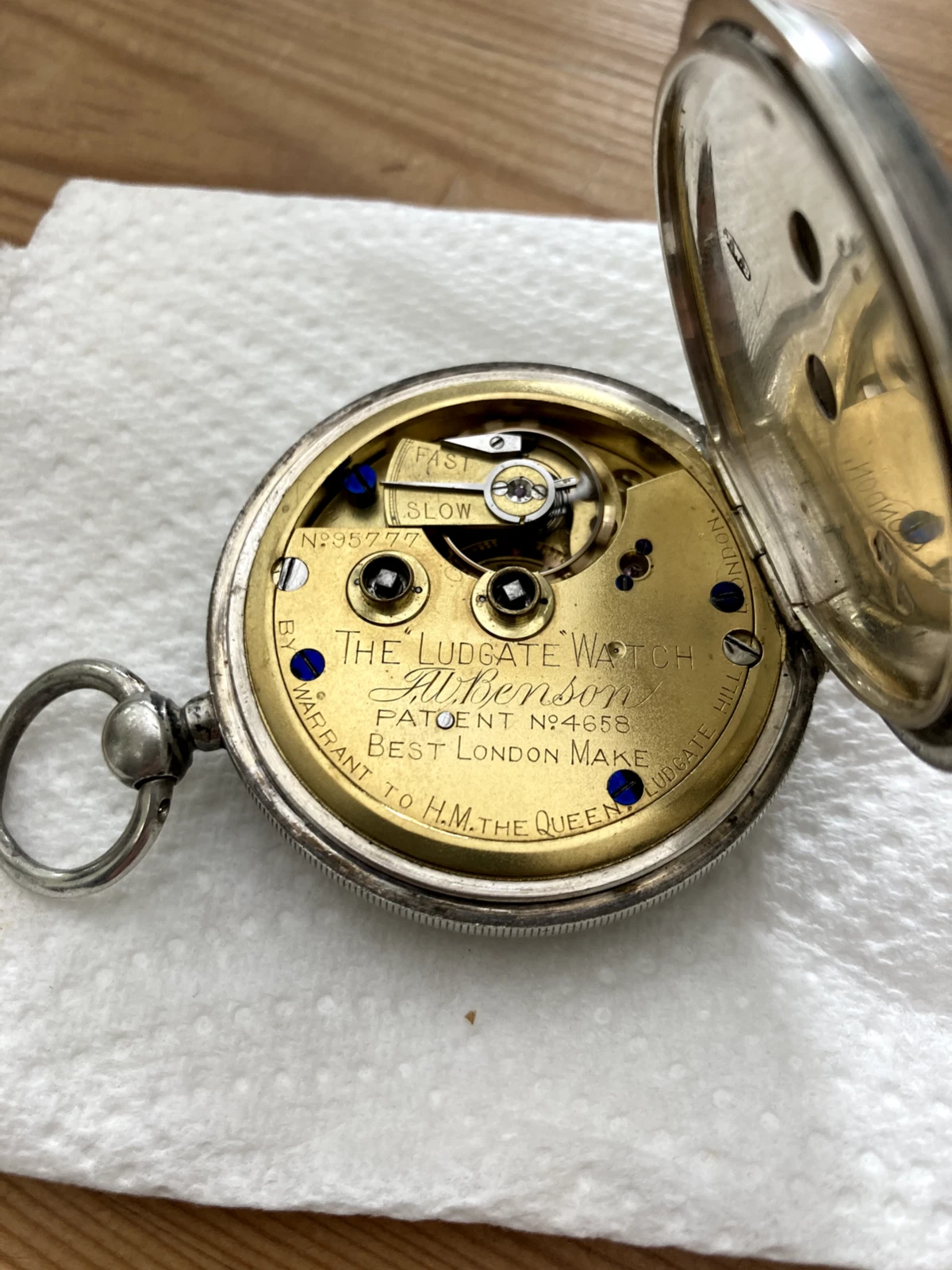 Antique 1880's Silver Pocket Watch "The Ludgate" by JW Benson