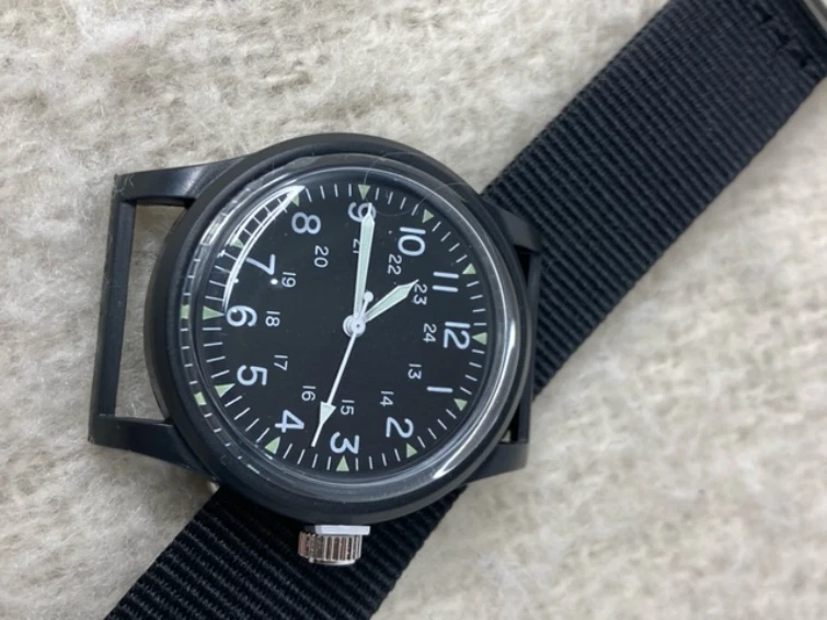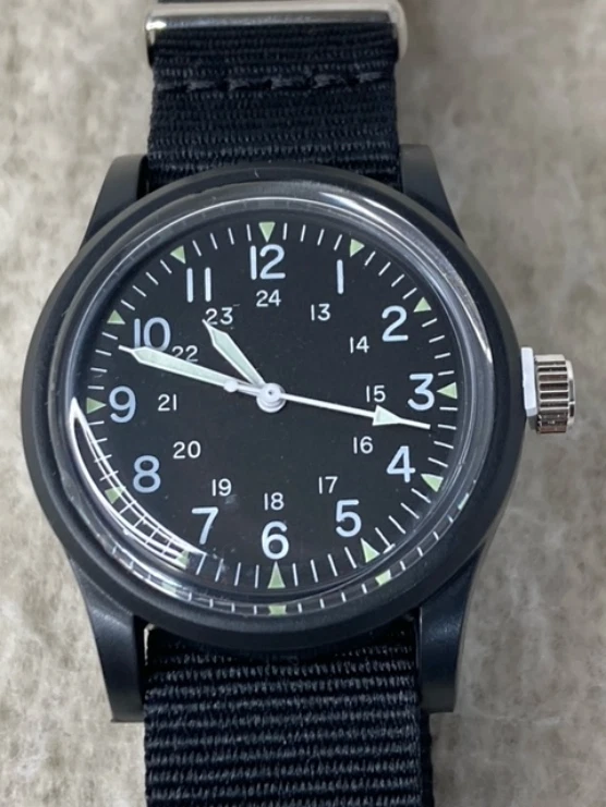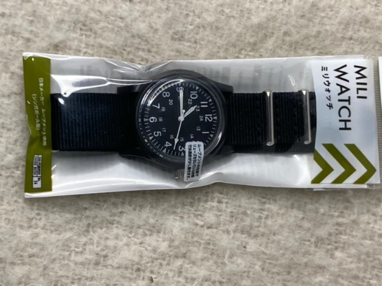 DAISO MILITARY WATCH Hattori/Seiko Movement Japan Black Face=Black  [New}