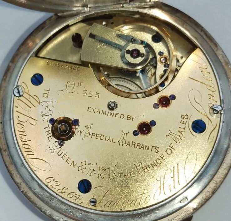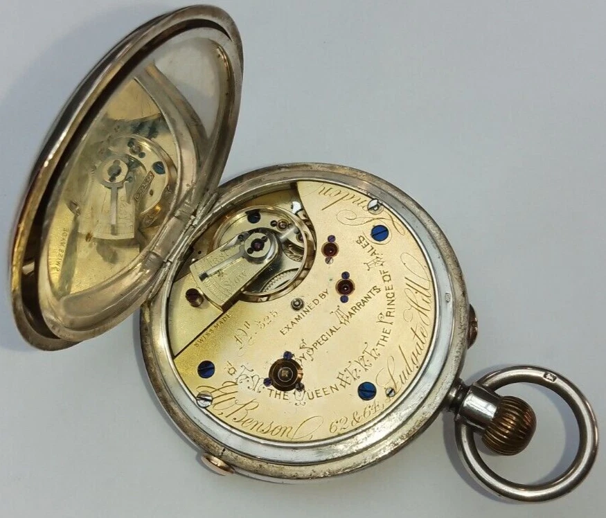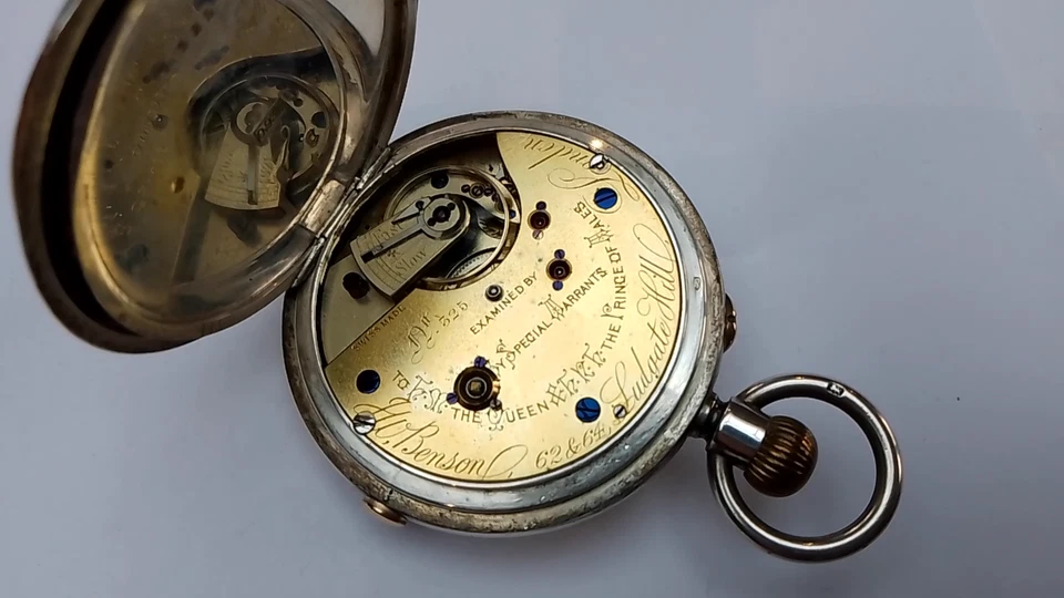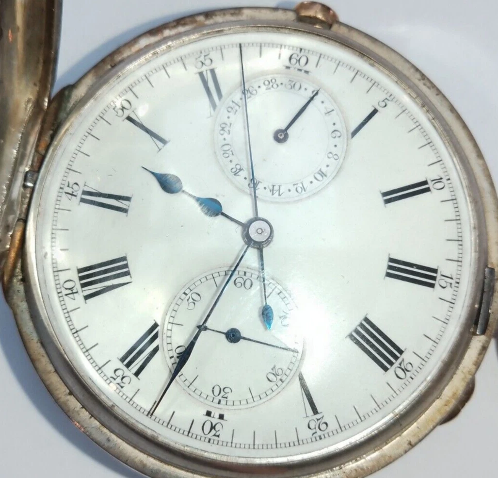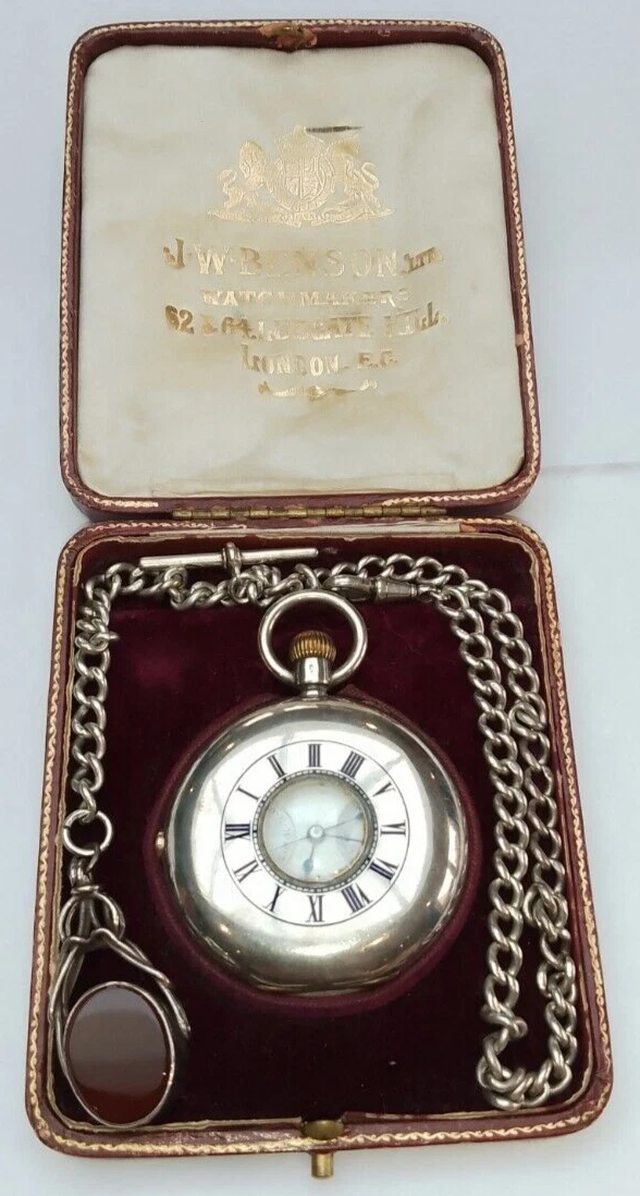J.W.BENSON boxed Antique Silver Half Hunter Pocket Watch Chronograph c1890 runs