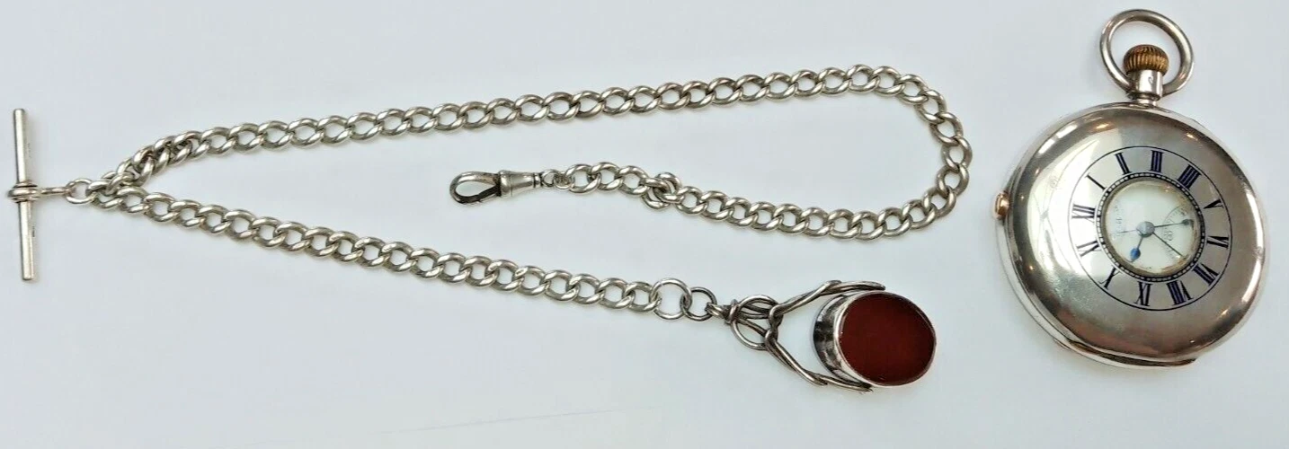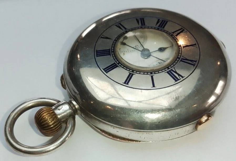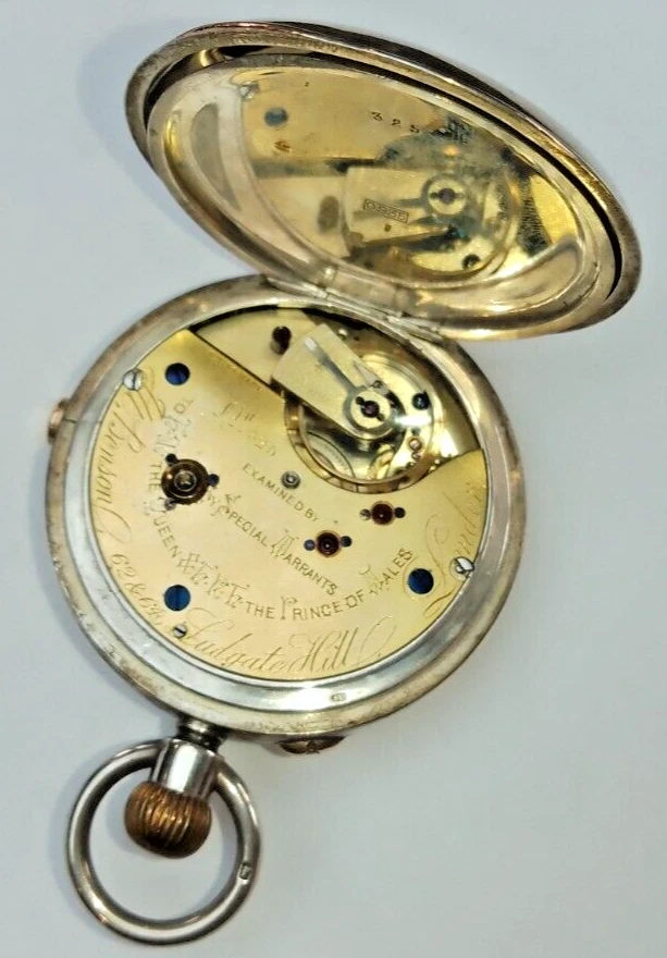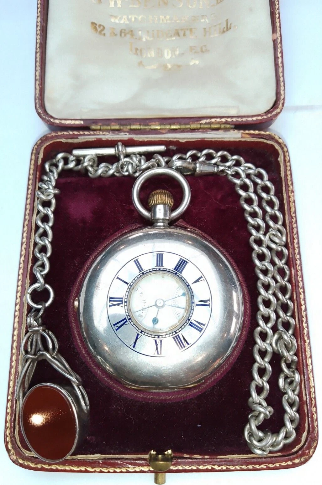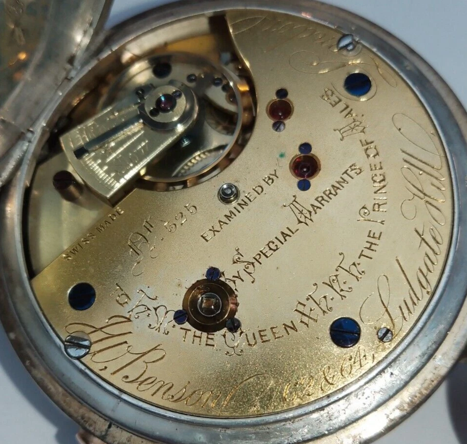 J.W.BENSON boxed Antique Silver Half Hunter Pocket Watch Chronograph c1890 runs