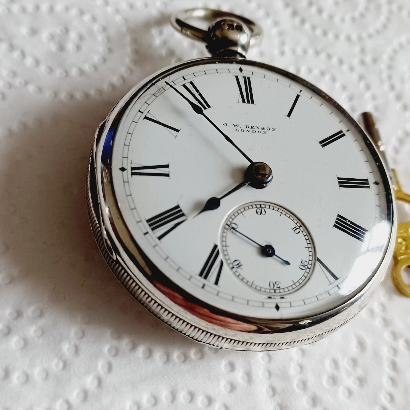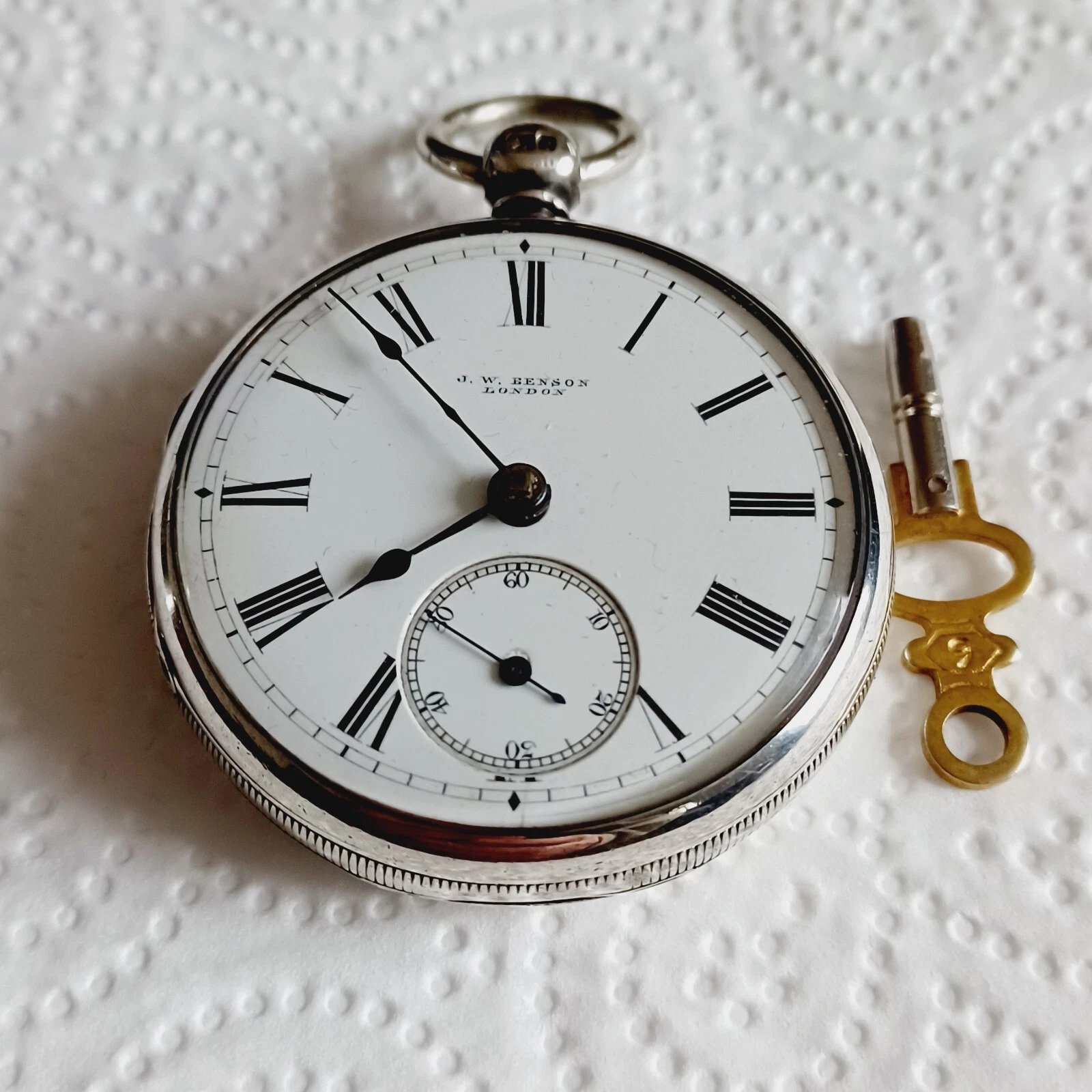 Jw Benson Silver Fusee Pocket Watch Good Working Order