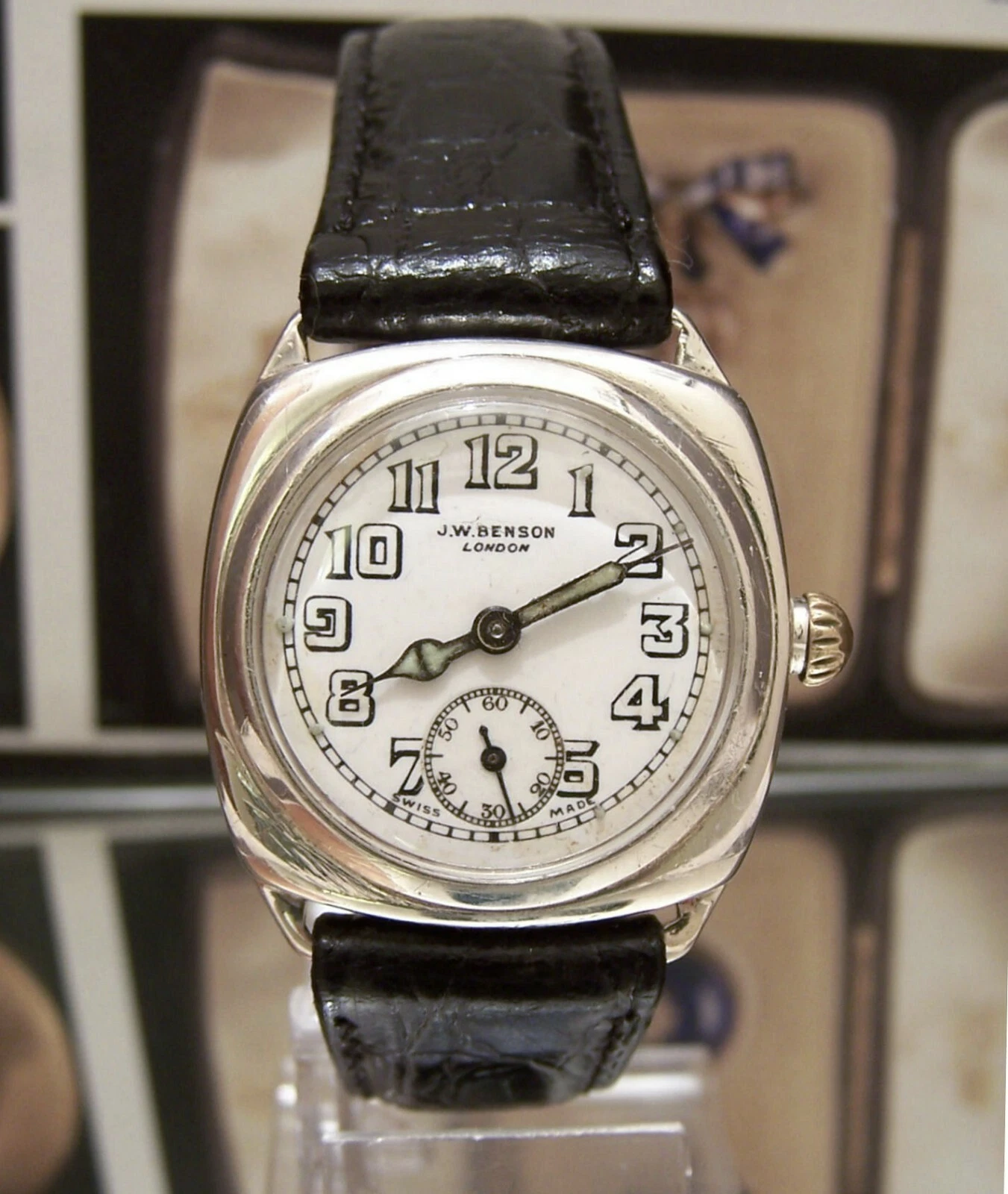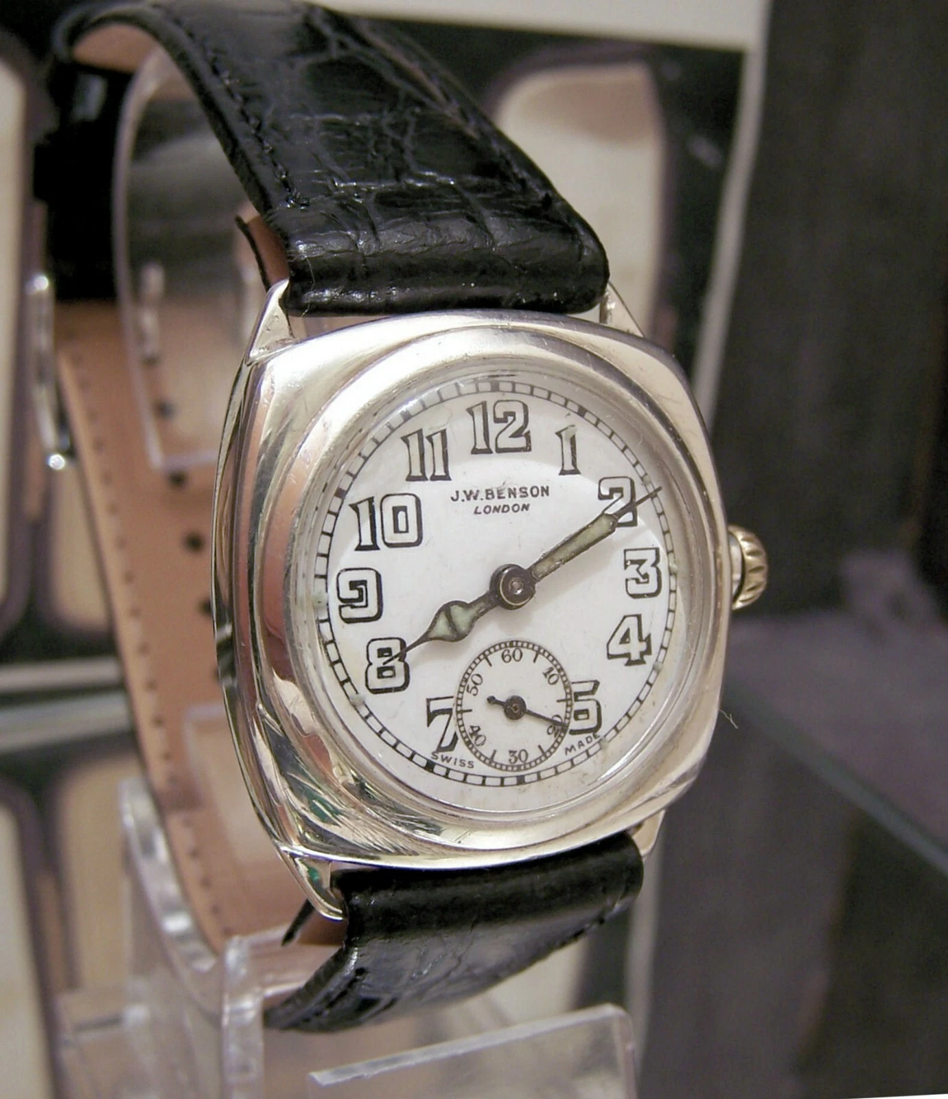 ANTIQUE VINTAGE 1937 JW BENSON BORGEL SOLID SILVER CASE LOVELY DIAL WATCH WORKS