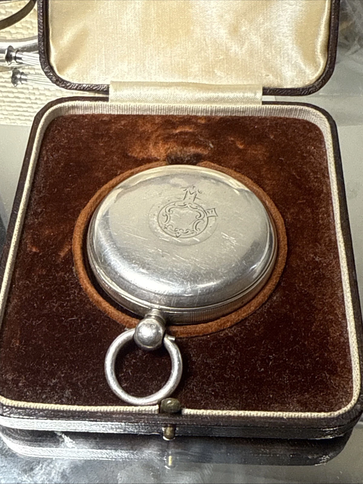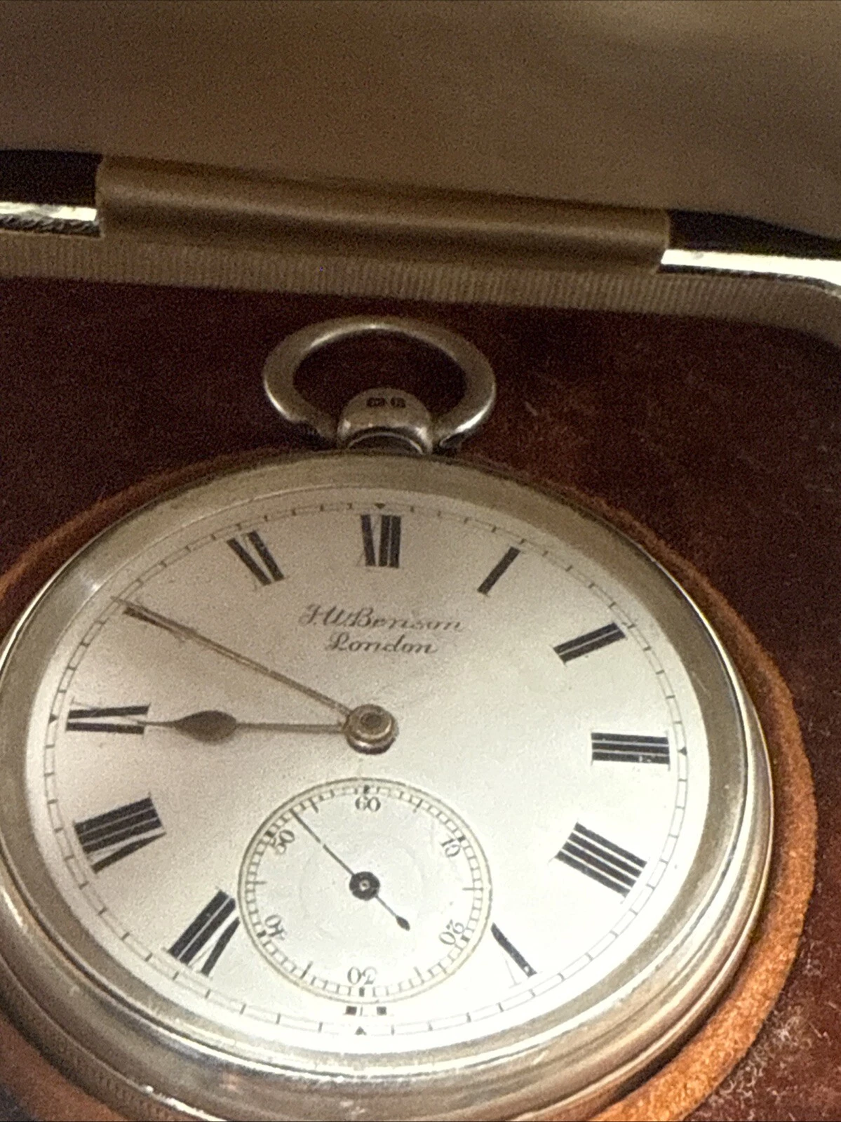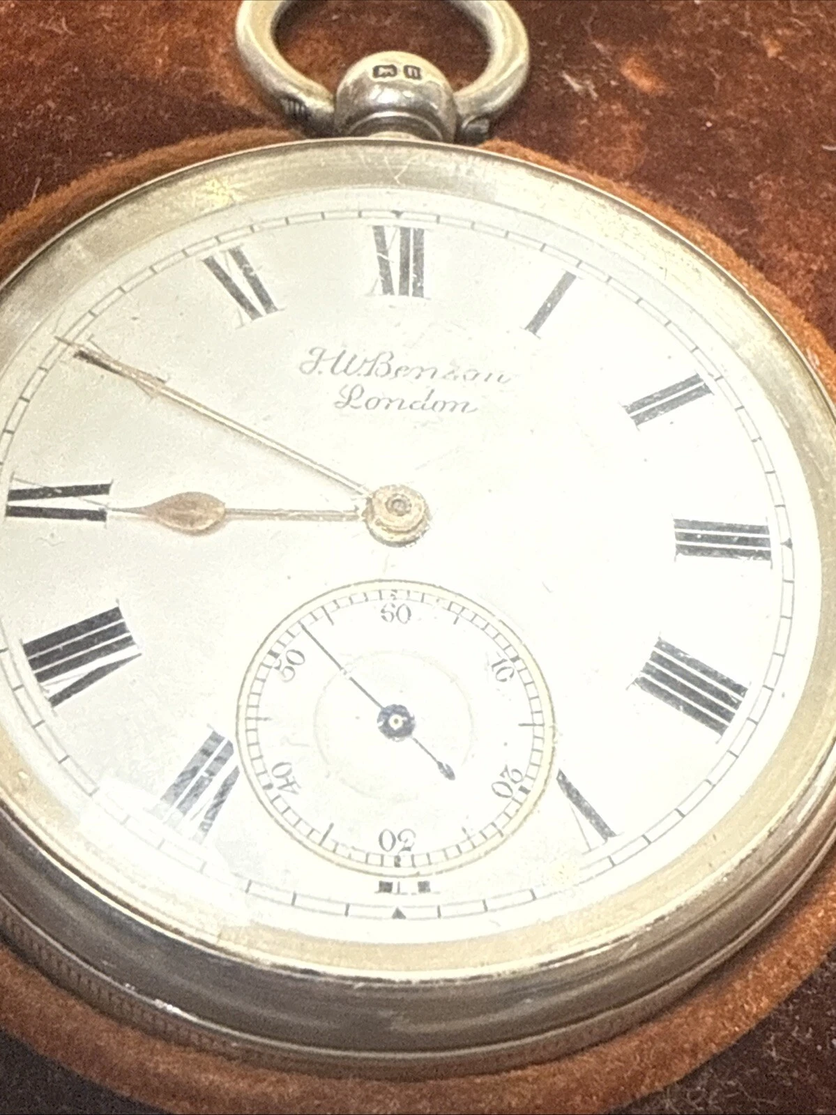 Antique 1880's Silver Pocket Watch "The Ludgate" by JW Benson Working  Box