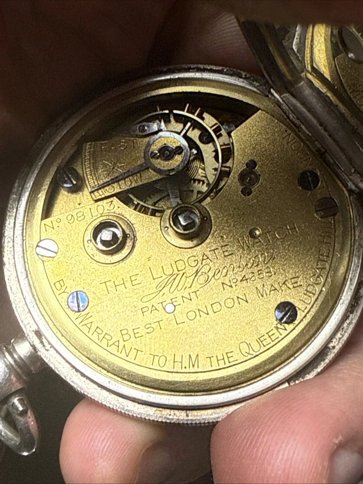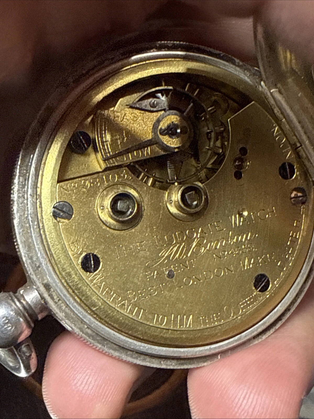 Antique 1880's Silver Pocket Watch "The Ludgate" by JW Benson Working Box