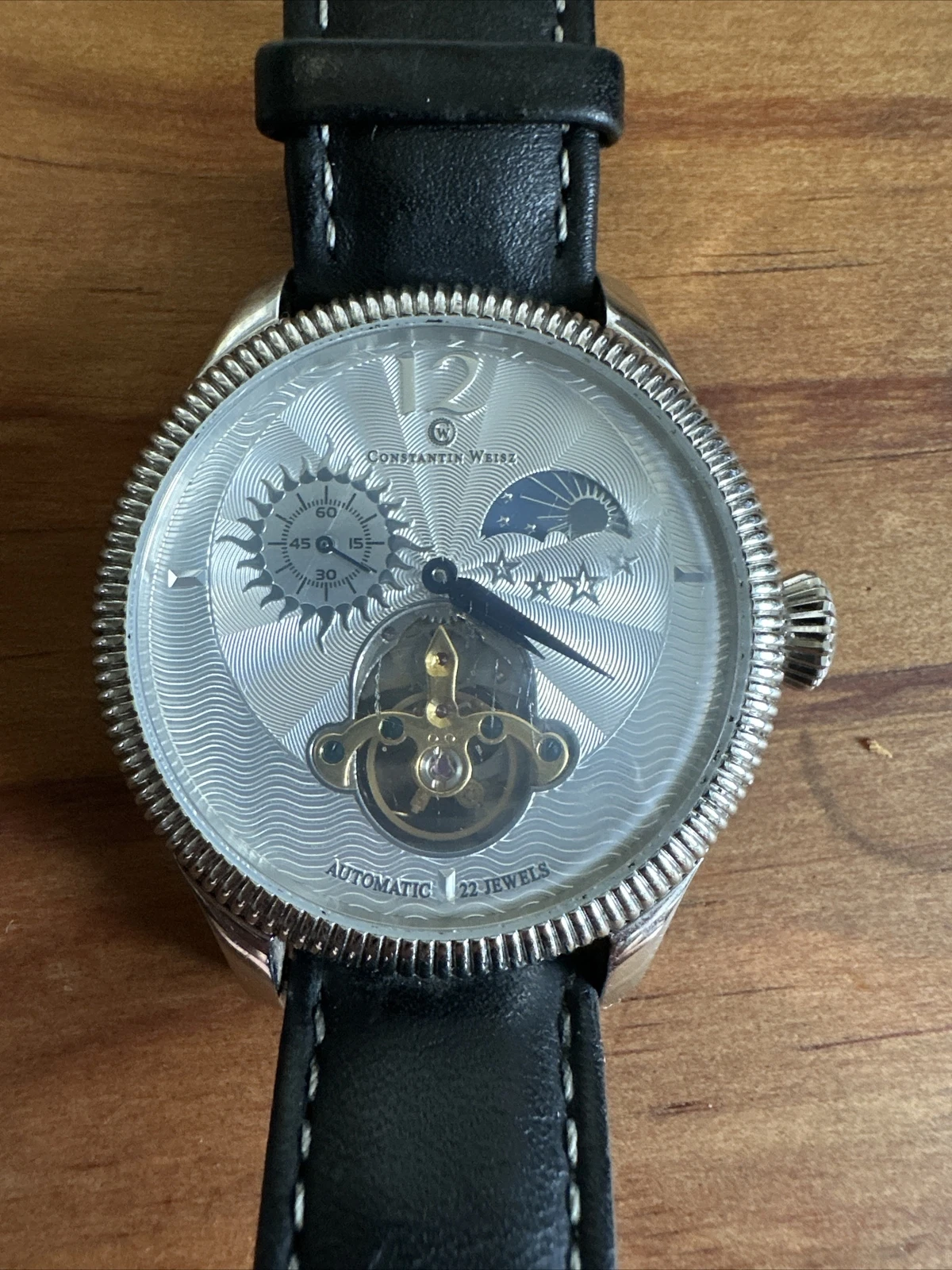 Constantin Weisz automatic open heart wrist watch 22 jewels date day night