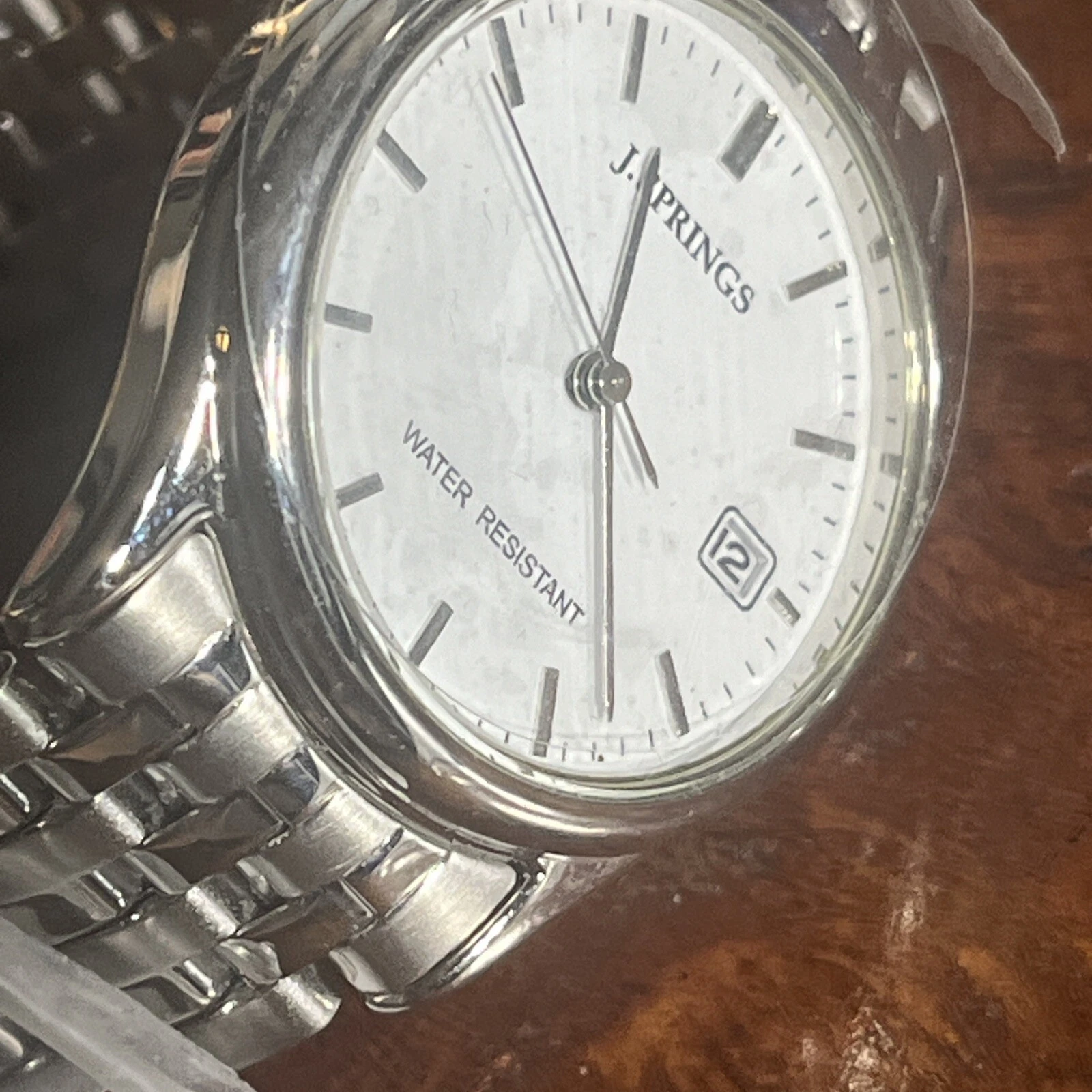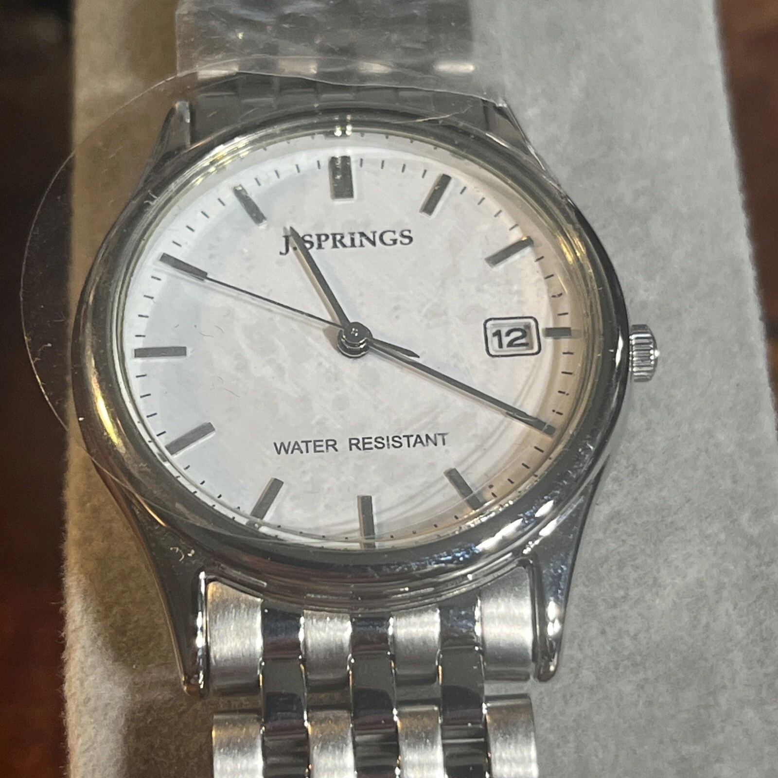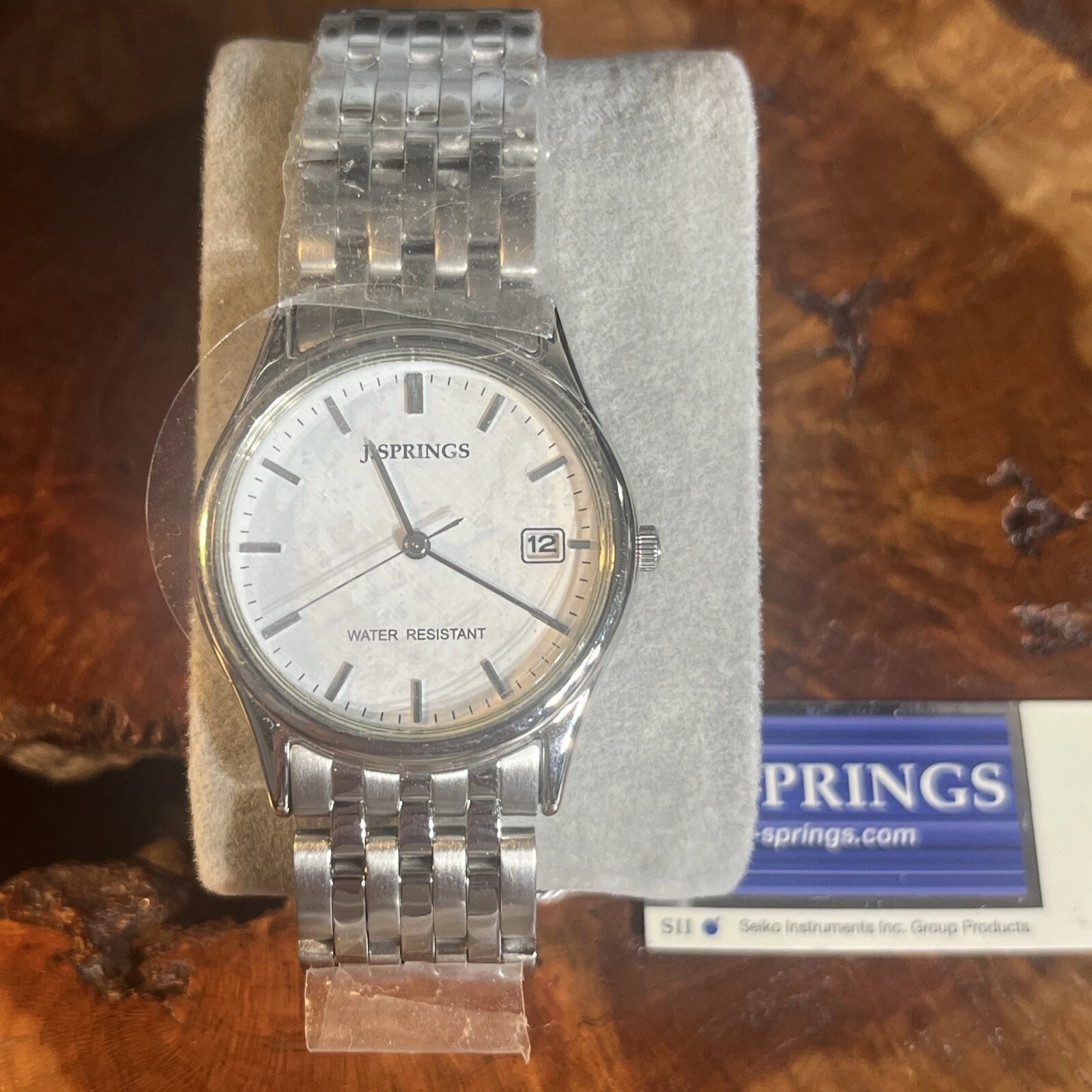 J-Springs Watch Mens White Dial Stainless Steel Band 33mm NWT (by Seiko)