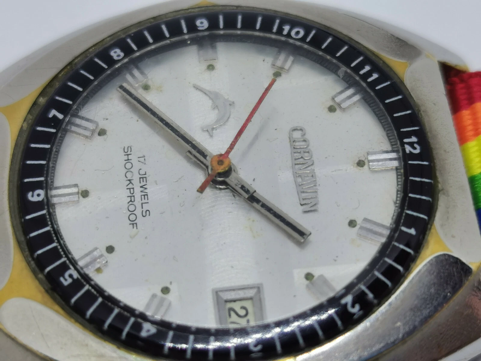 Vintage Cornavin Date Silver Dial - Wand Wind 17 Jewels - 36.5mm - RUNNING