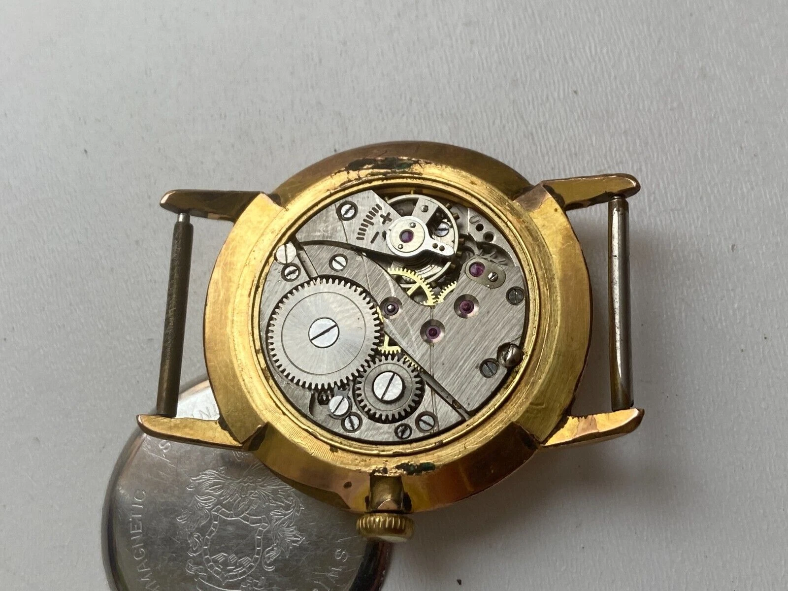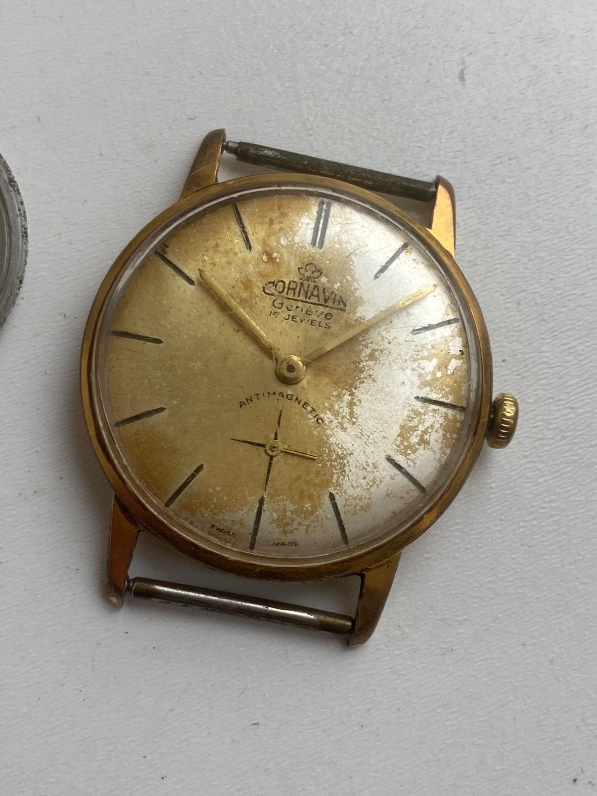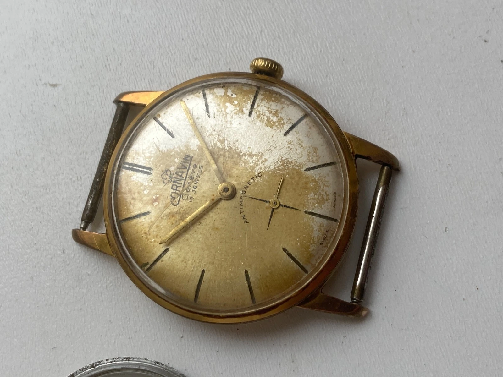 VINTAGE MEN WIRST WATCH FOR PARTS CORNAVIN GENEVE 17 JEWELS AU 10 CAL A 151