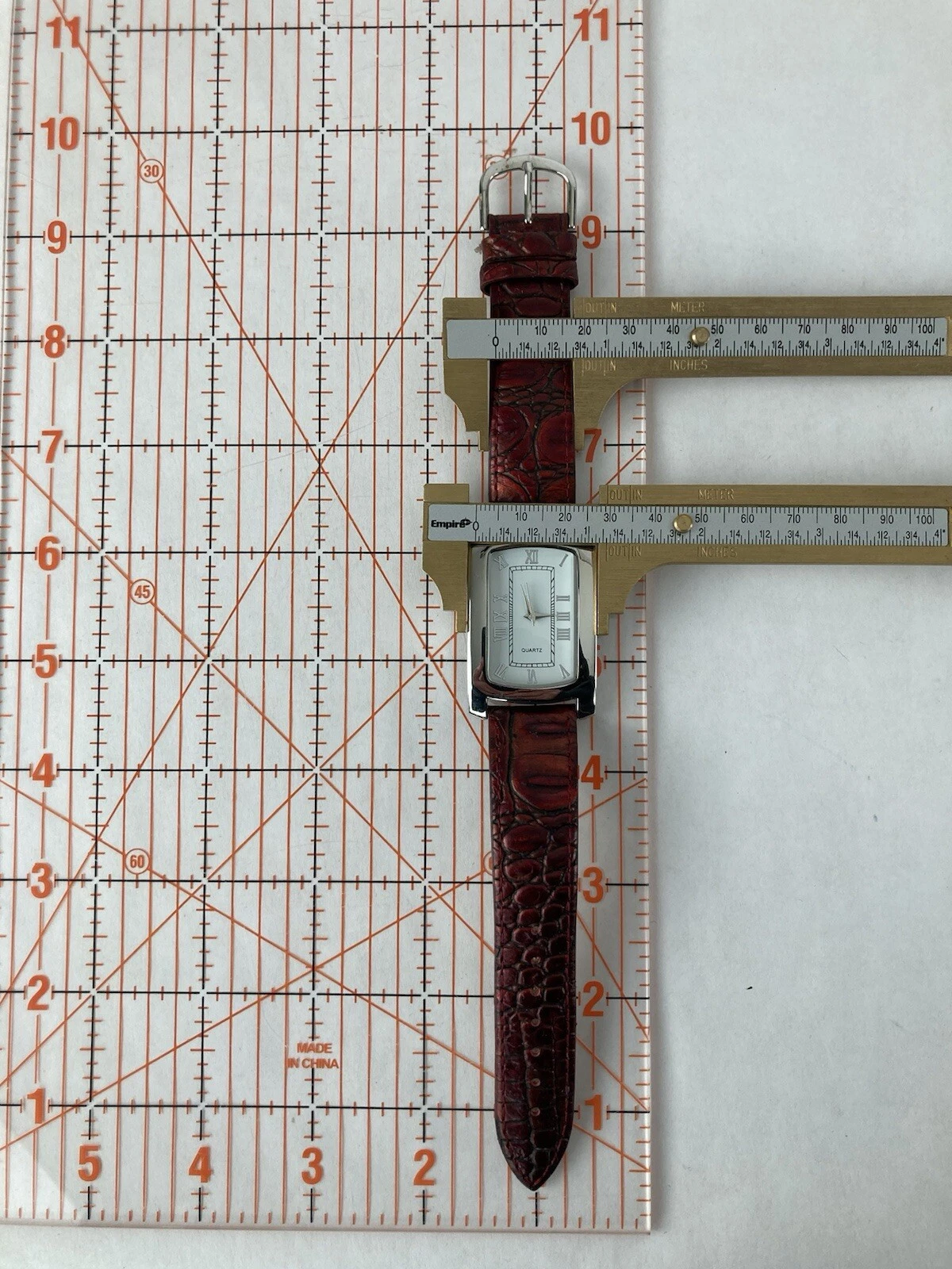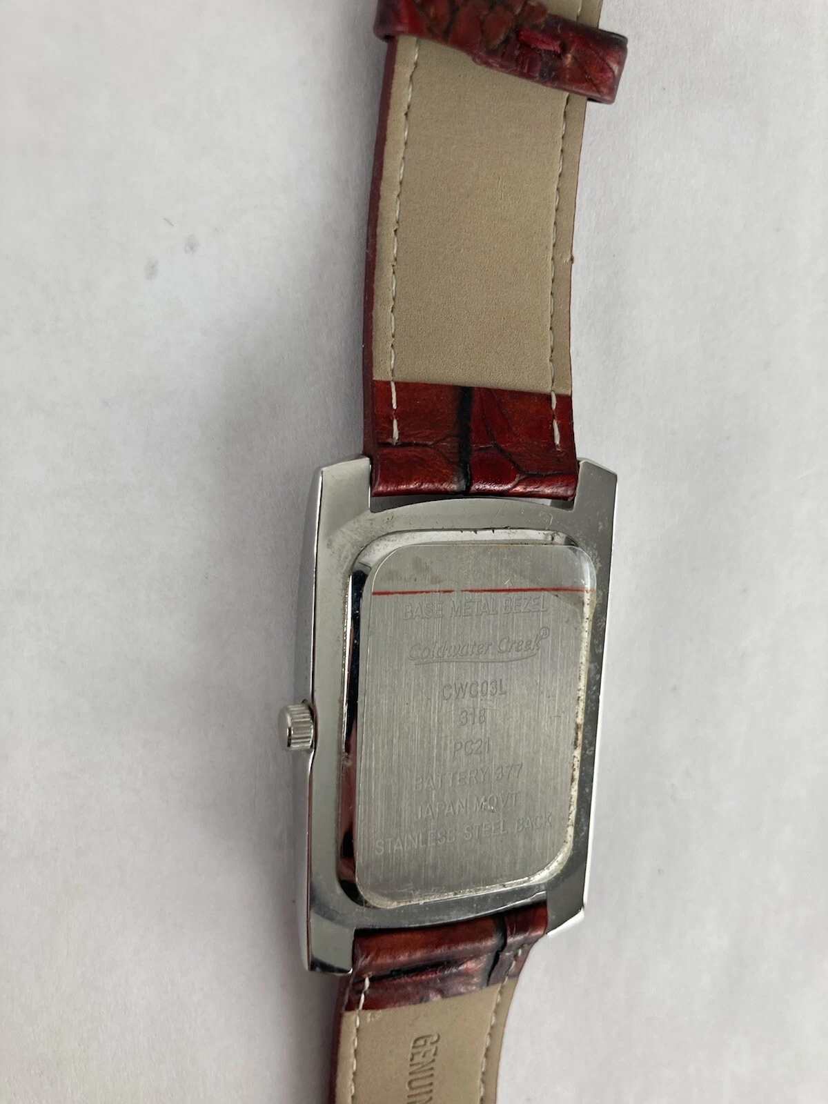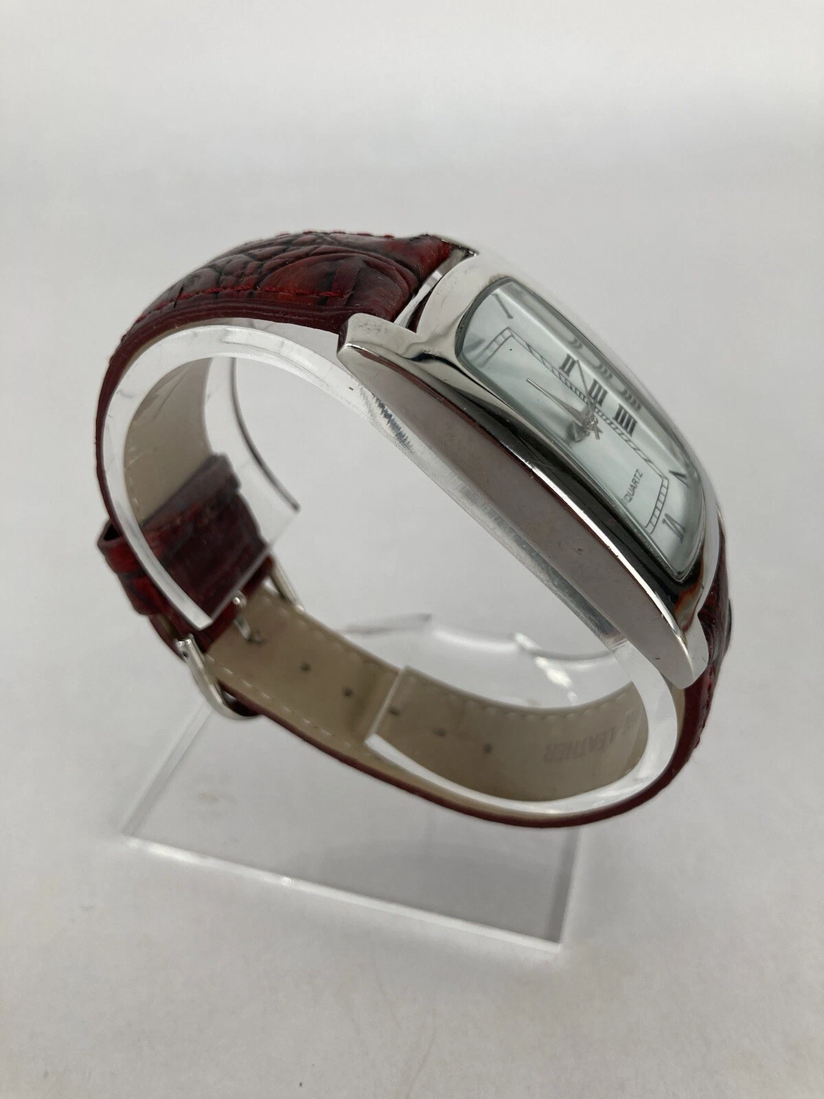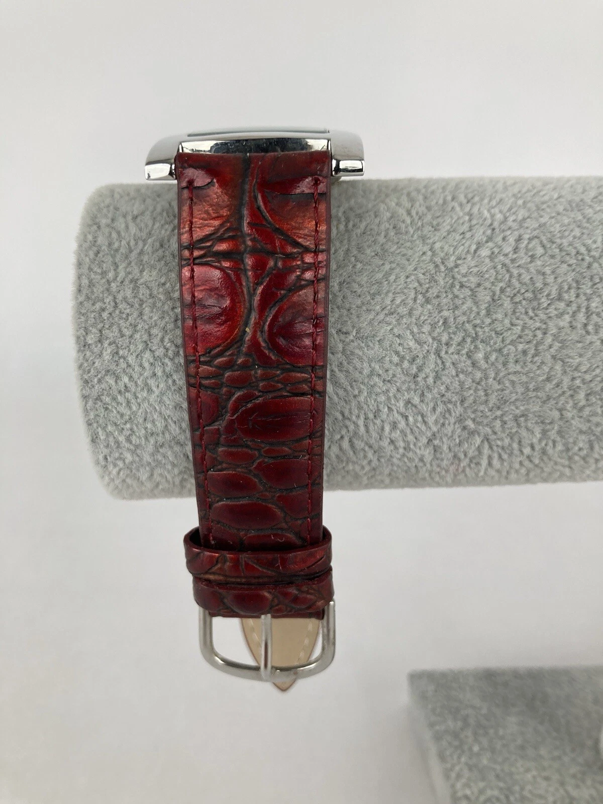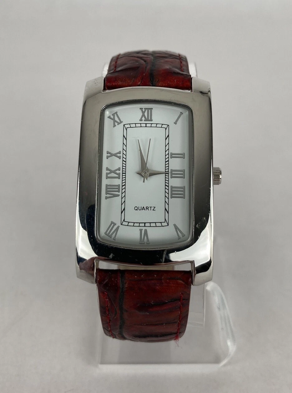Coldwater Creek 30mm Silver Tone Quartz Watch w/Red Leather Band & Battery