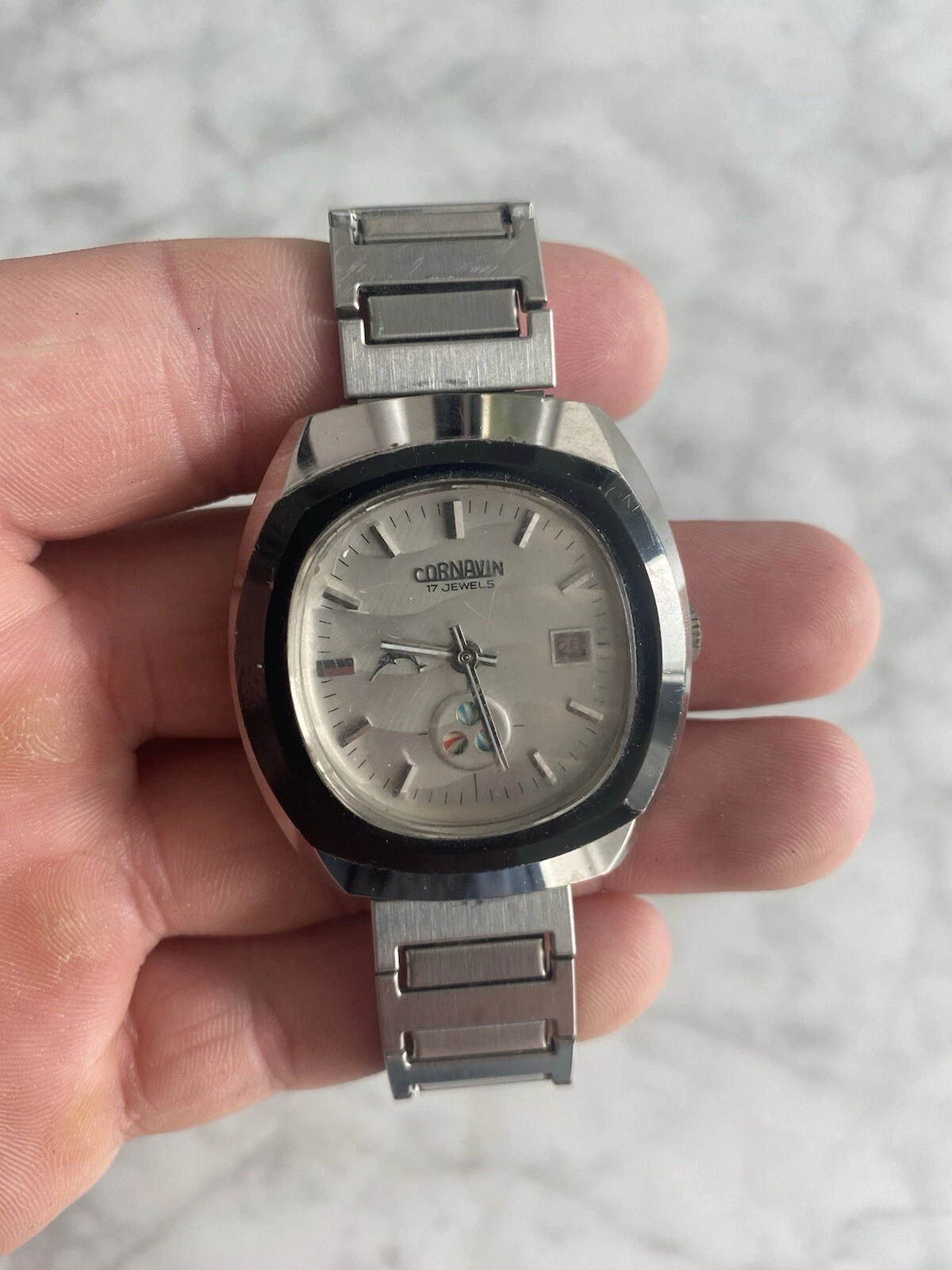 Cornavin Pentaflex Dolphin 17 Jewels Square Case Silver Dial Watch - Works