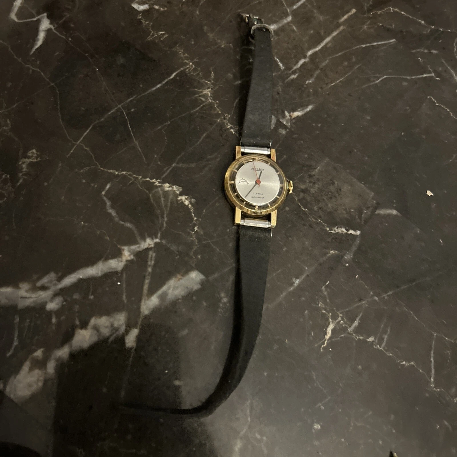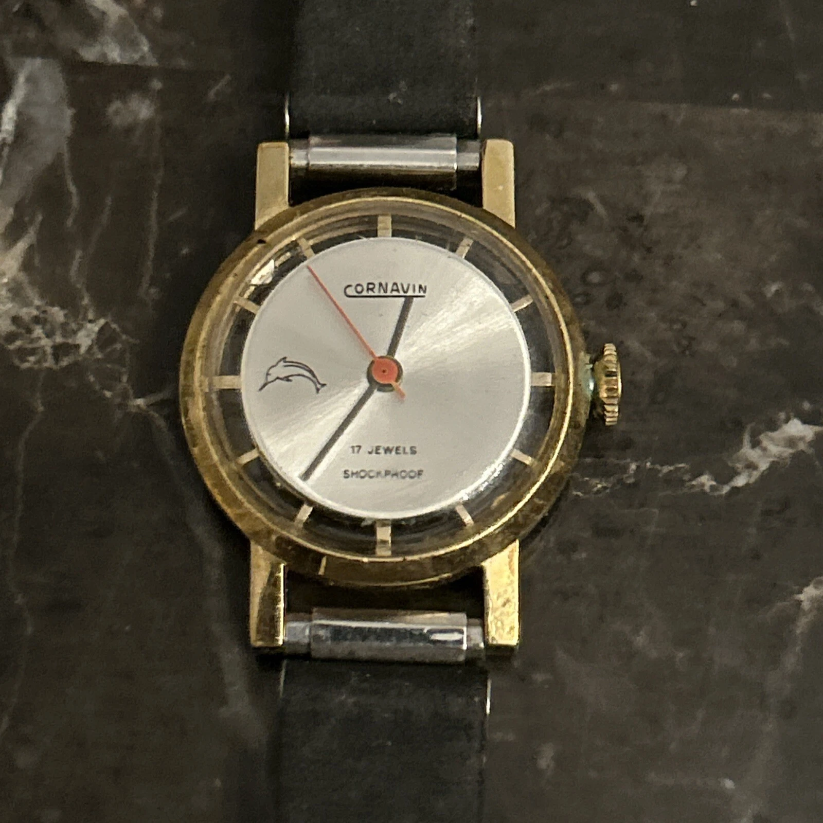Cornavin Watch 17 Jewels Clear Case Shock Proof Gold Tone Vintage Needs Battery