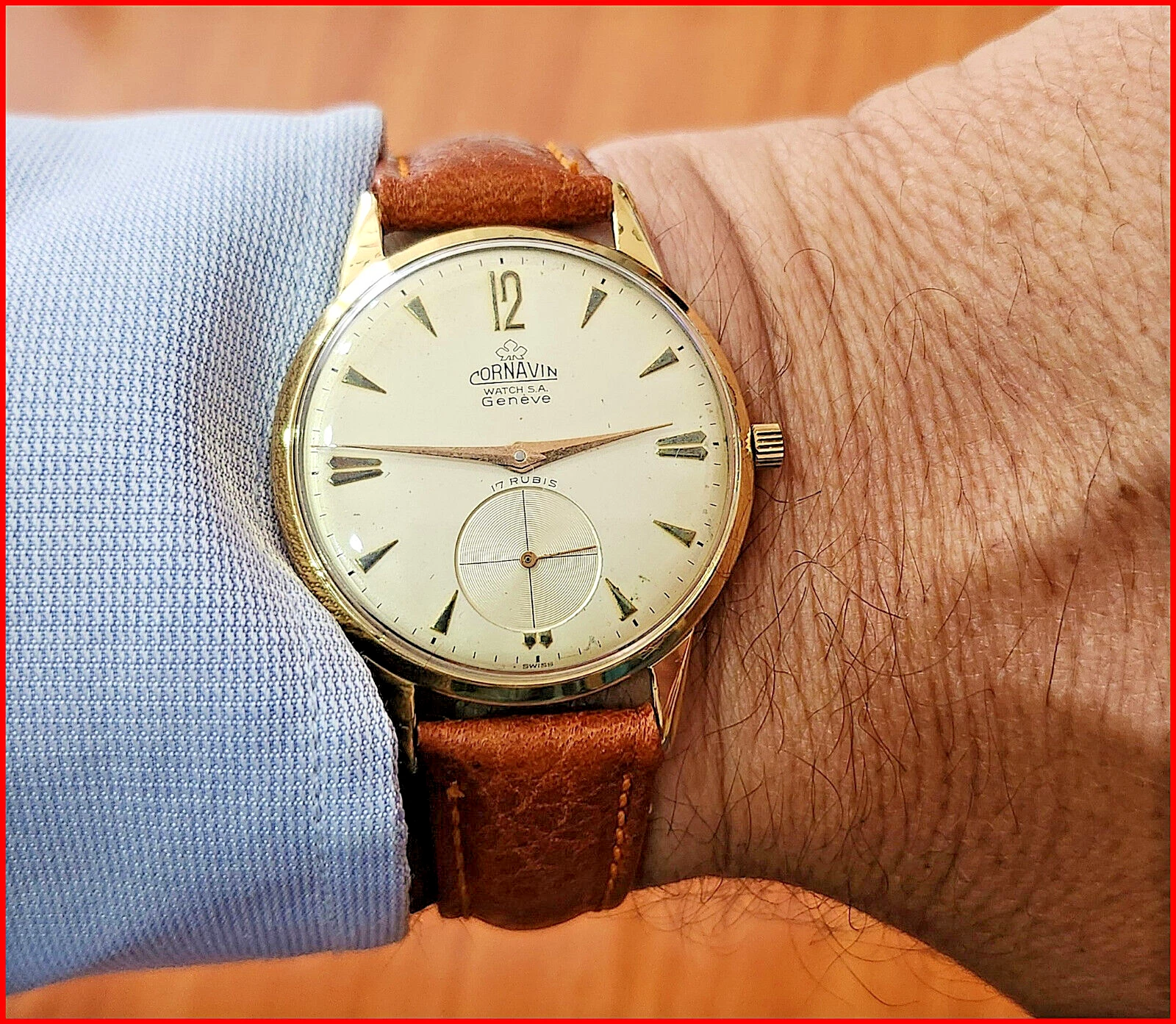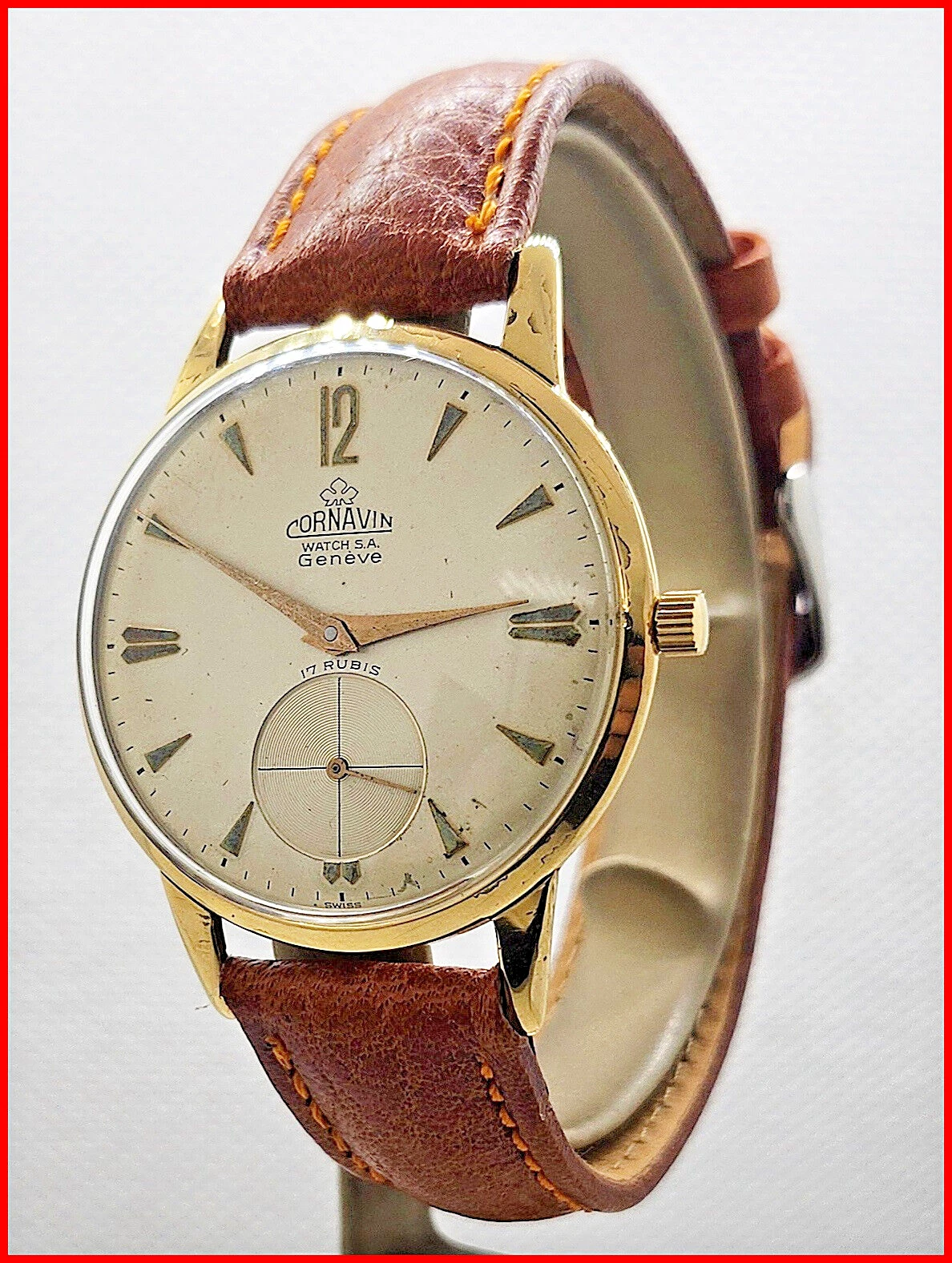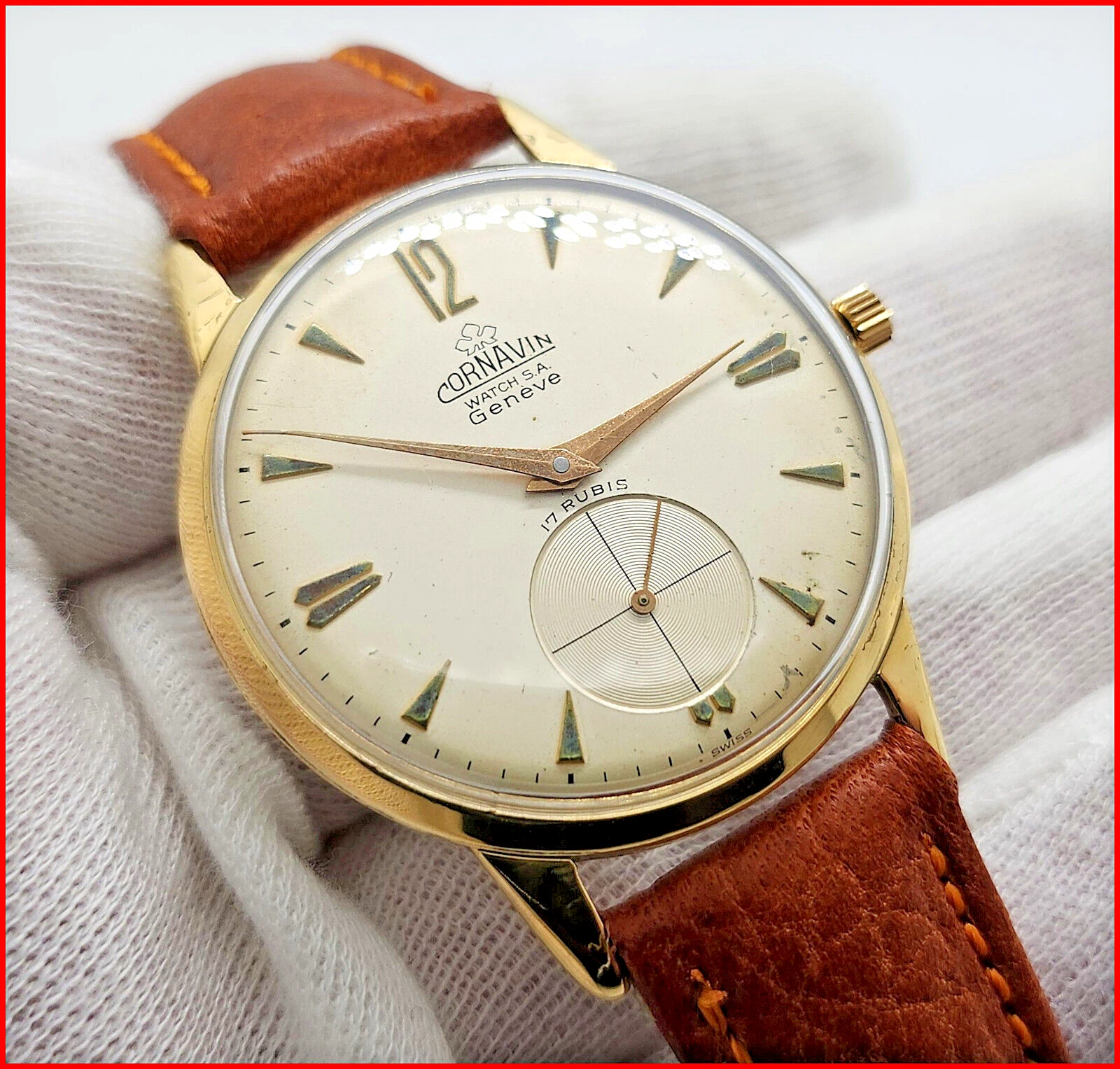 Early Vintage Cornavin Watch S.A. Geneve AS1130 36mm Manual Winding Gold Plated
