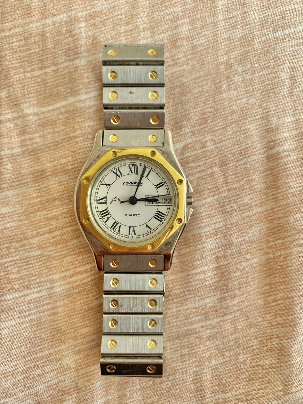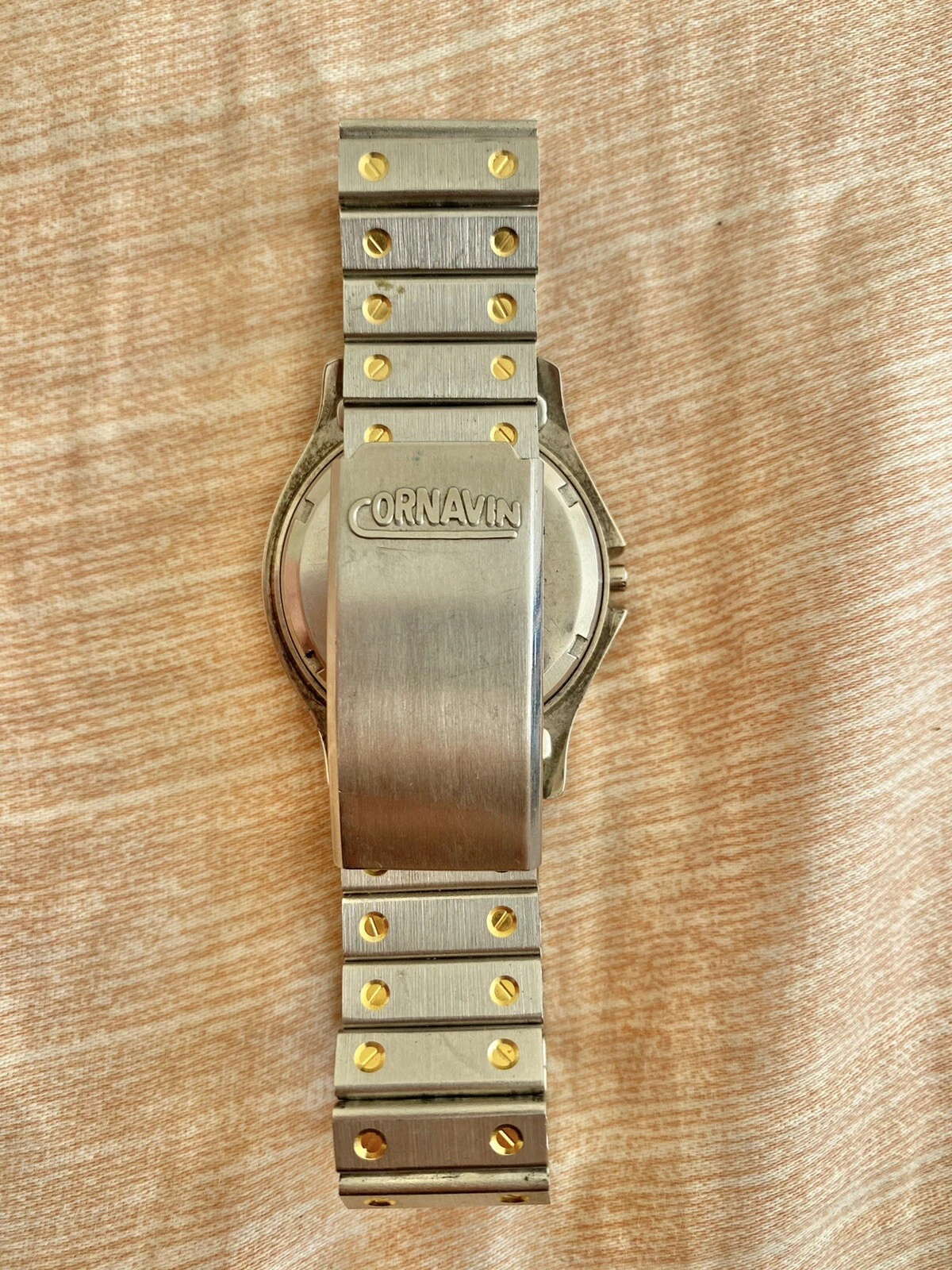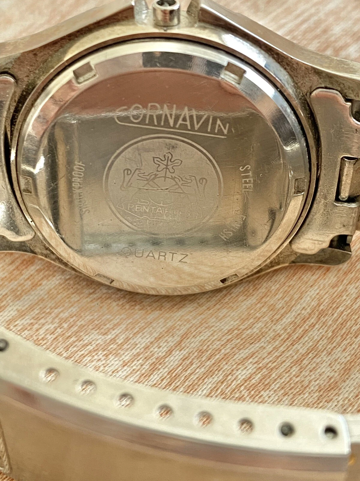CORNAVIN PENTAFLEX QUARTZ SHOCKPROOF STEEL FINISH DOUBLE CALENDAR VINTAGE USSR