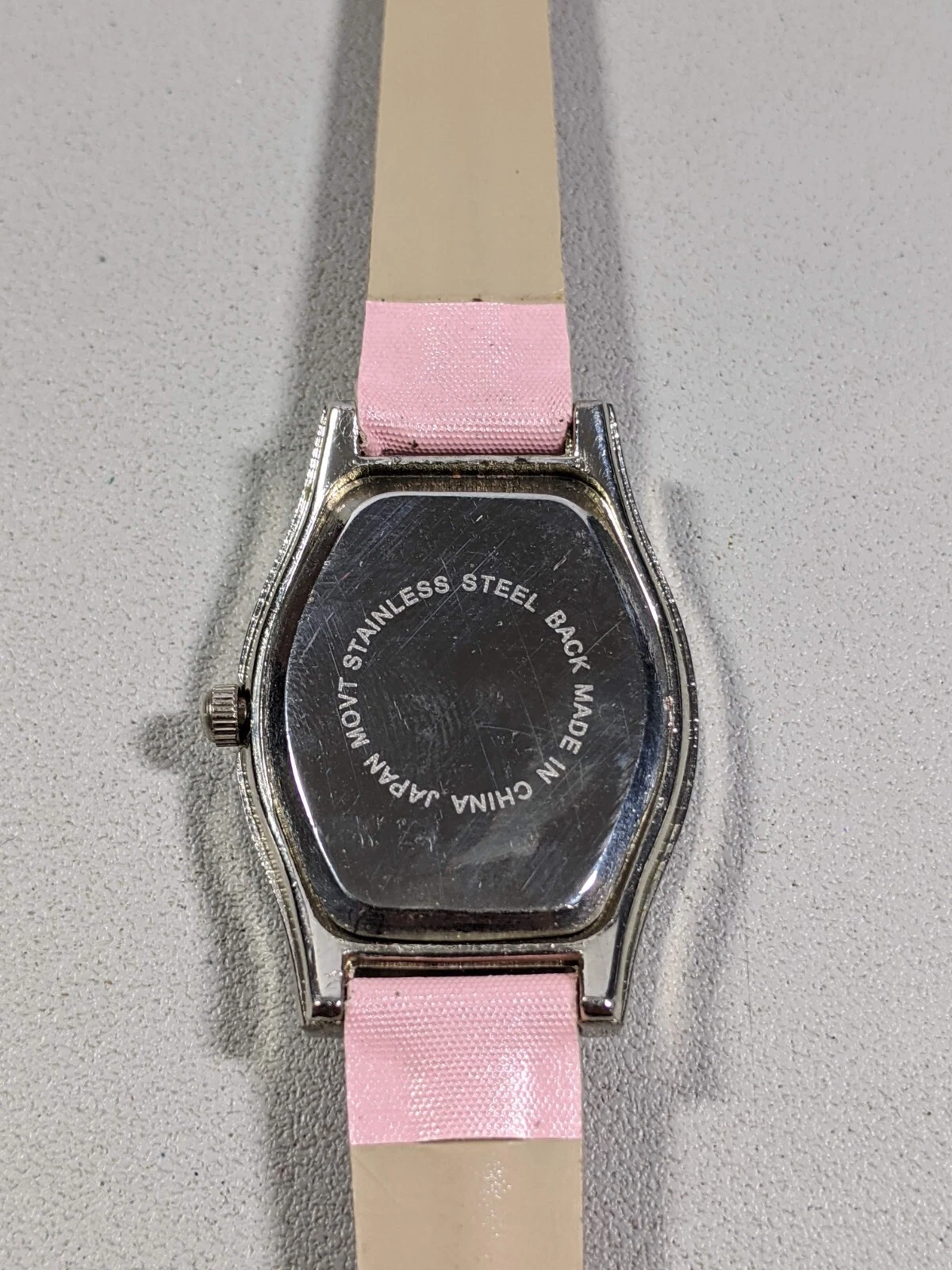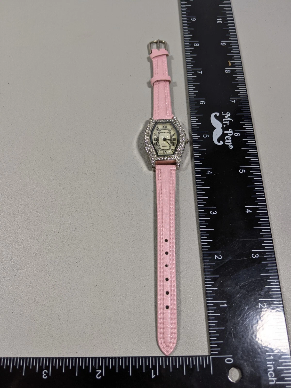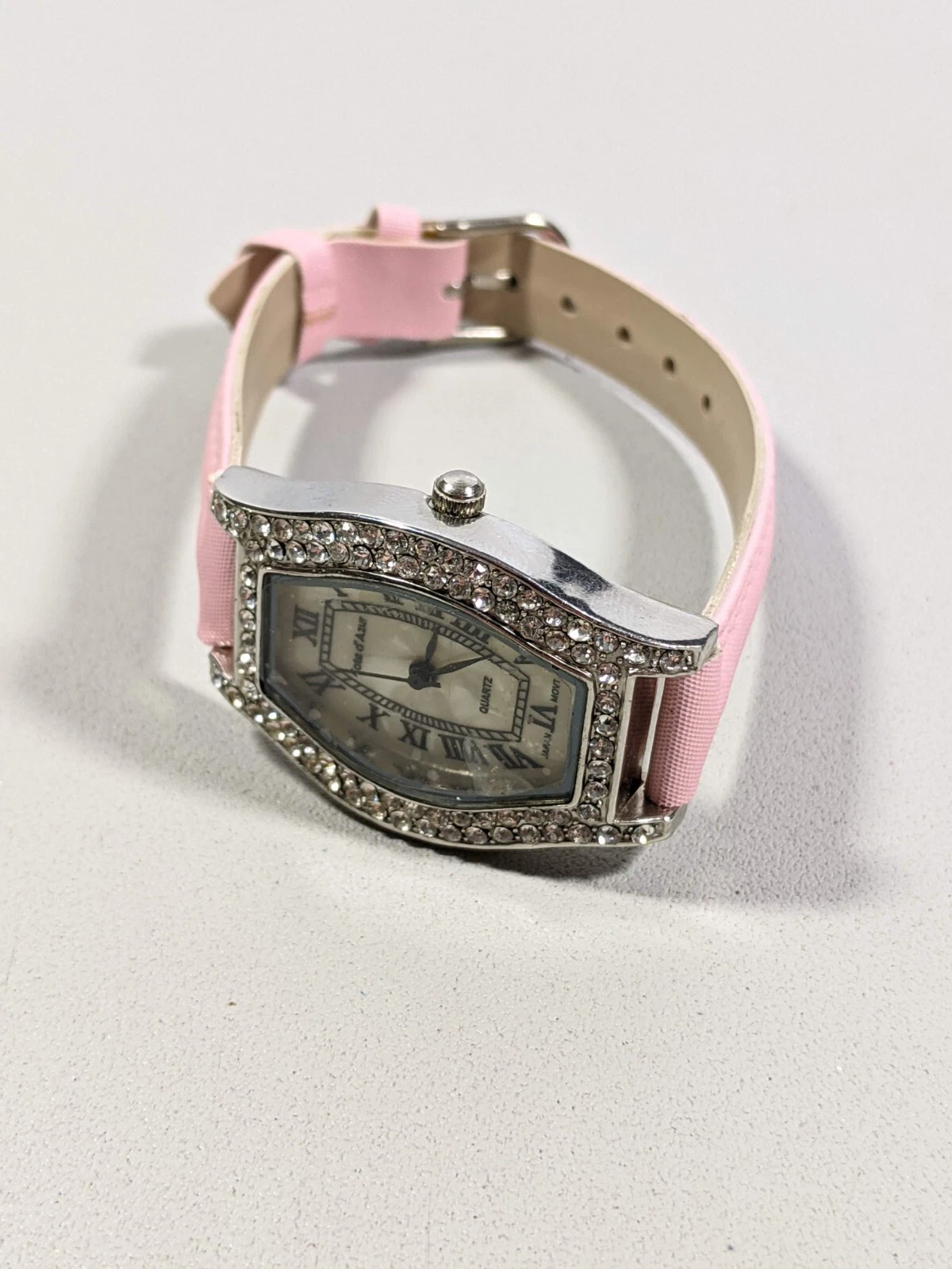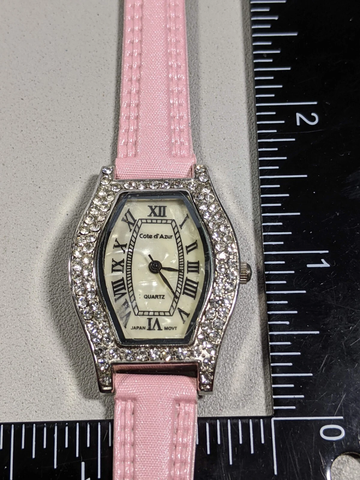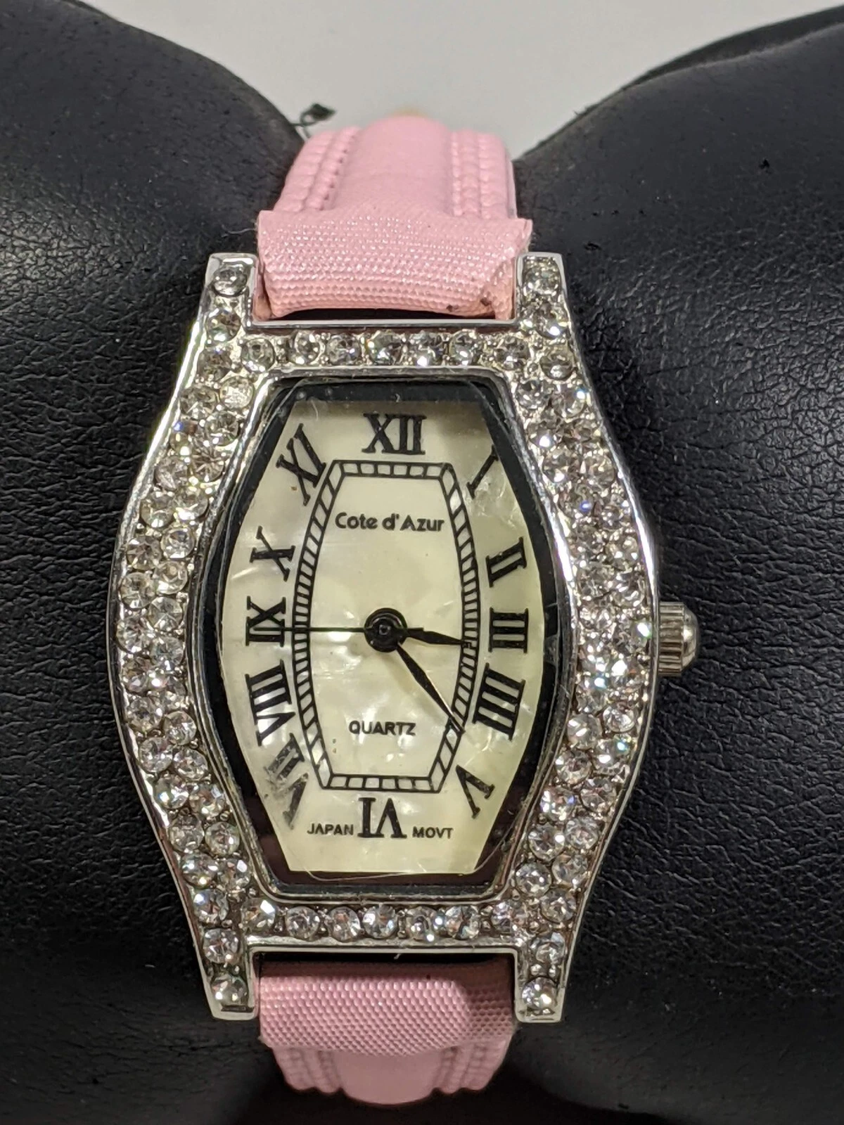 Cote d' Azur Pearlized Dial Crystal Accent Silver Tone Case Pink Band Watch