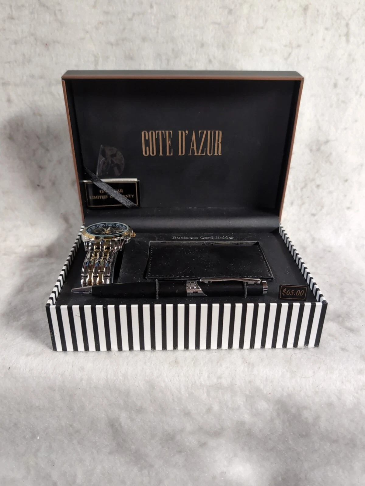 Cote d' Azur Men's Watch Pen and Business Card Holder Gift Set in Original Box