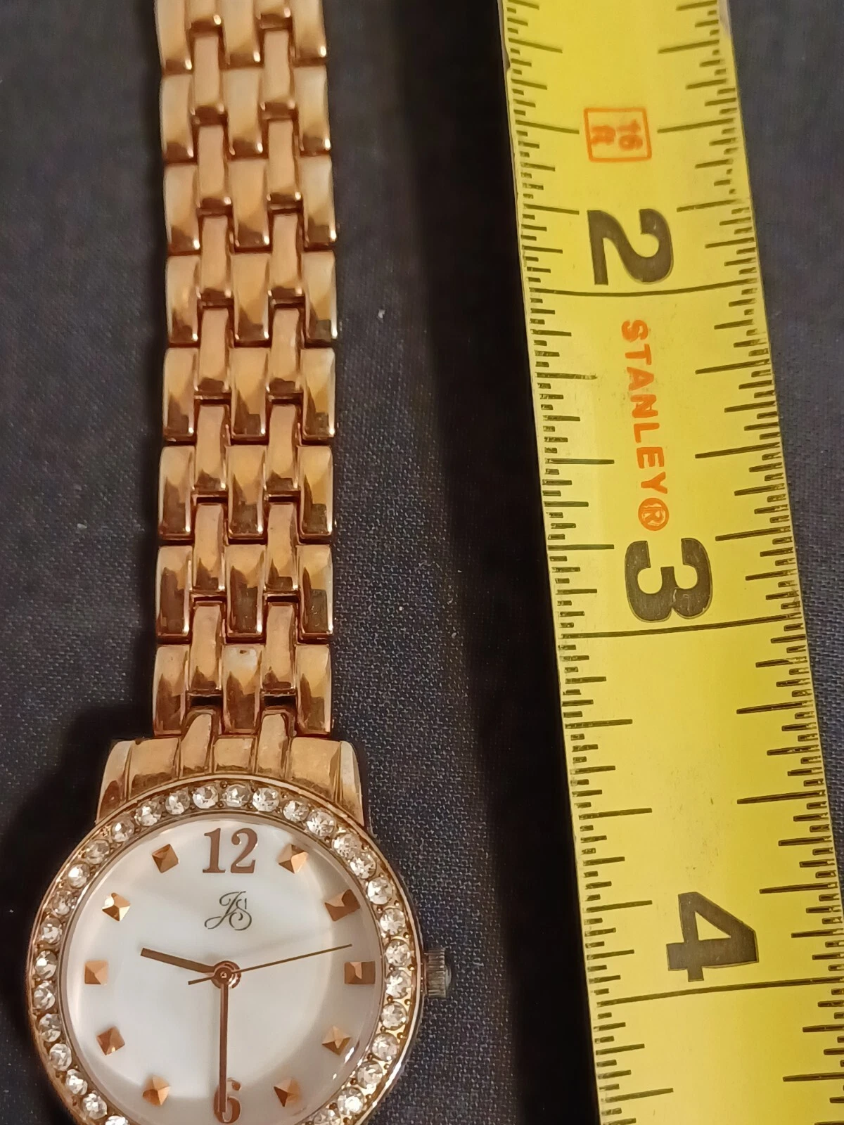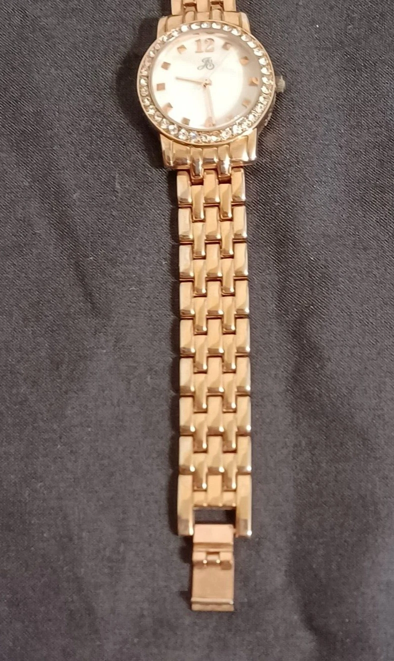 JS Ladies Fashion Quartz Watch Gold Tone Link Band Artificial Diamond Round