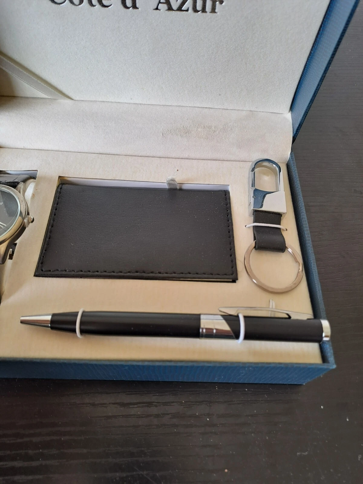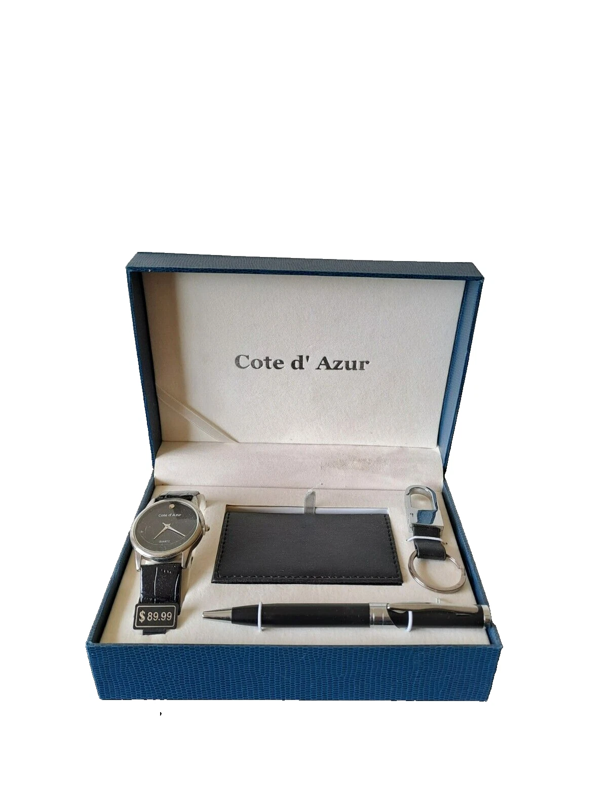 Vintage Cote d' Azur Mens Wrist Watch Card Holder Wallet Key Chain and Pen Set