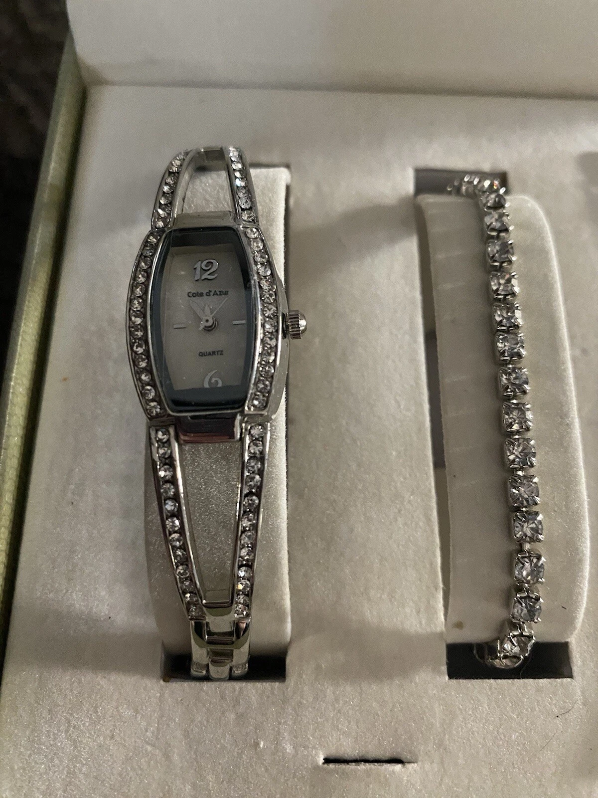 Cote D' Azure Watch & Rhinestone Bracelet Jewelry Gift Set