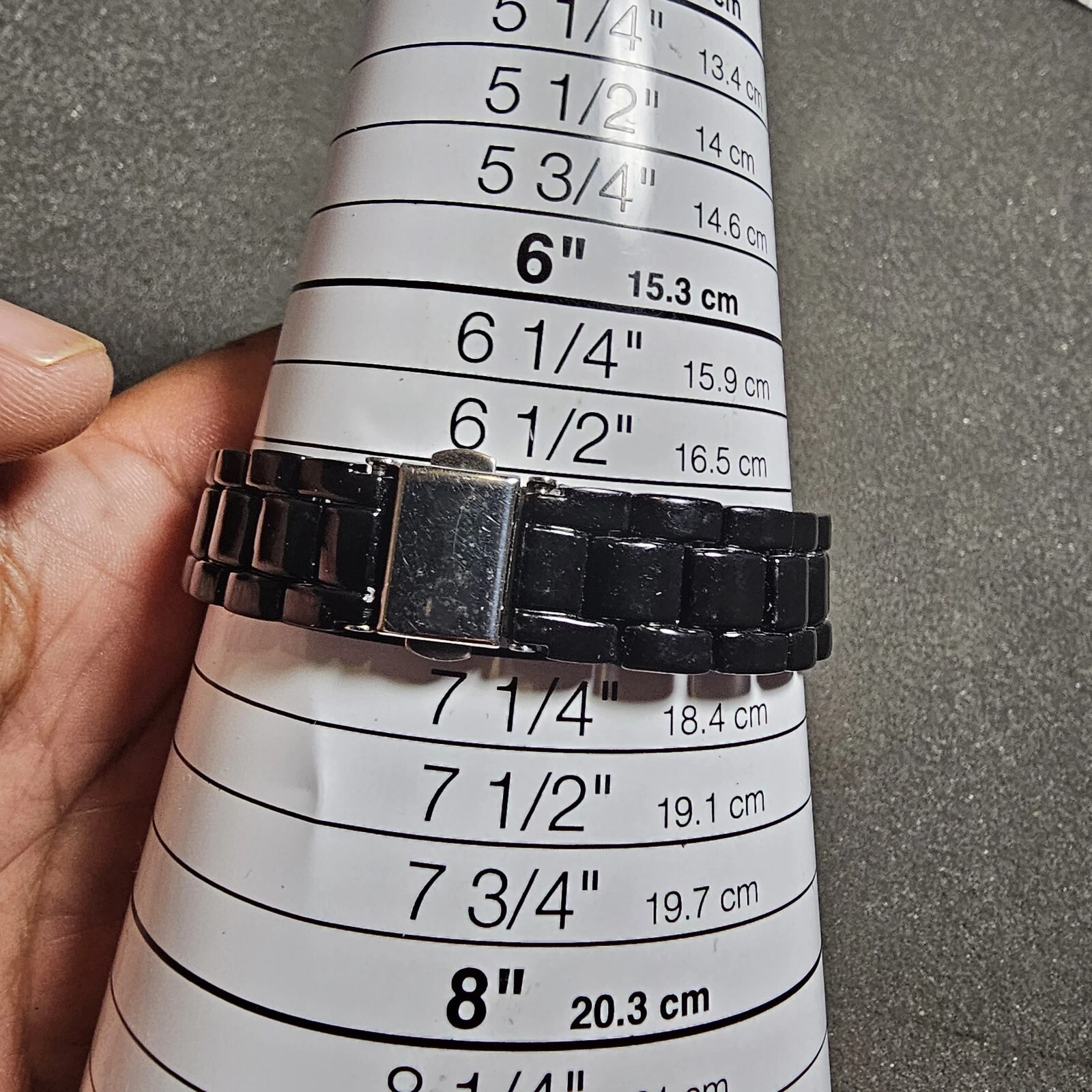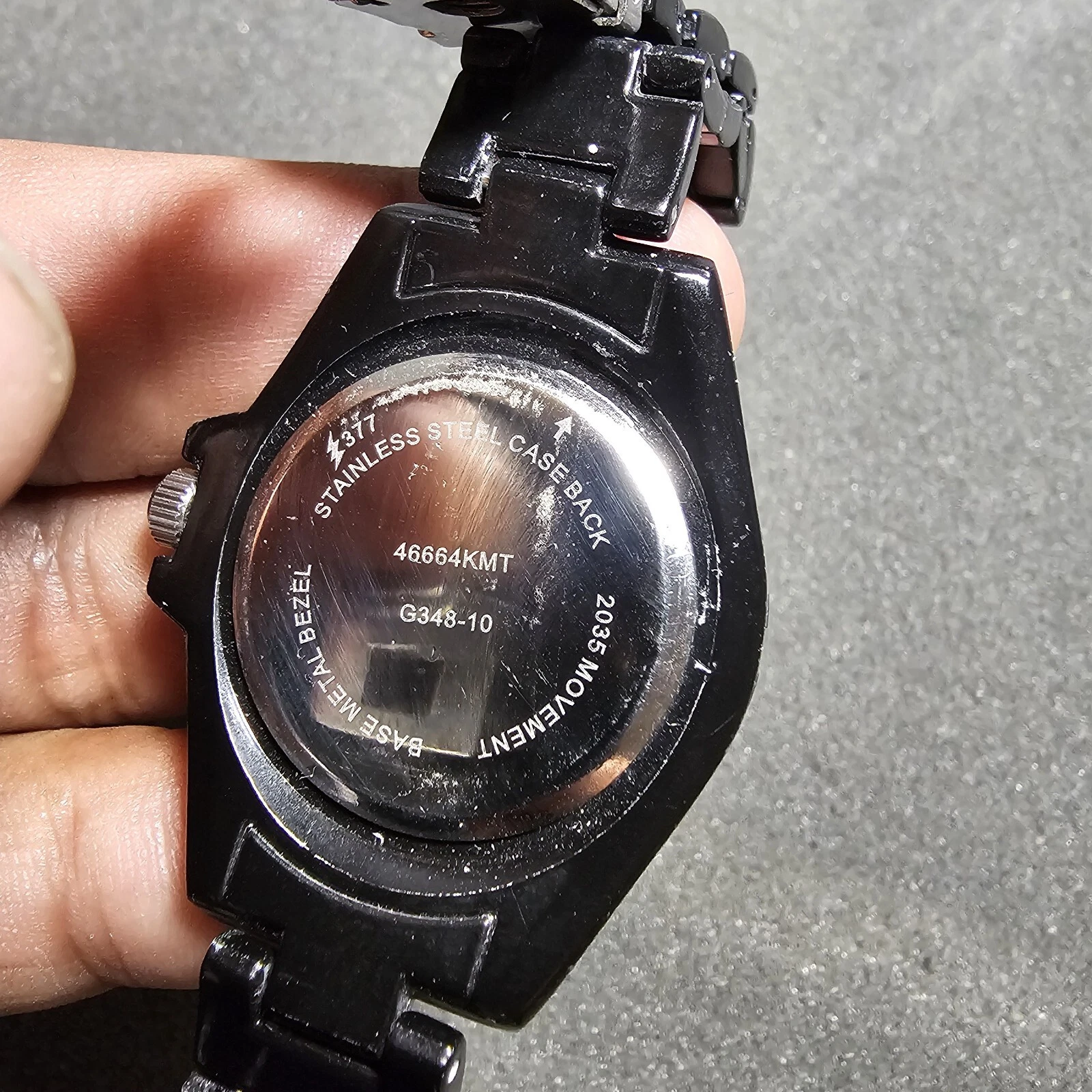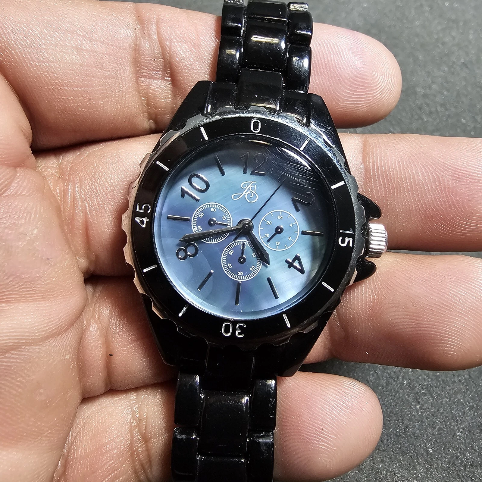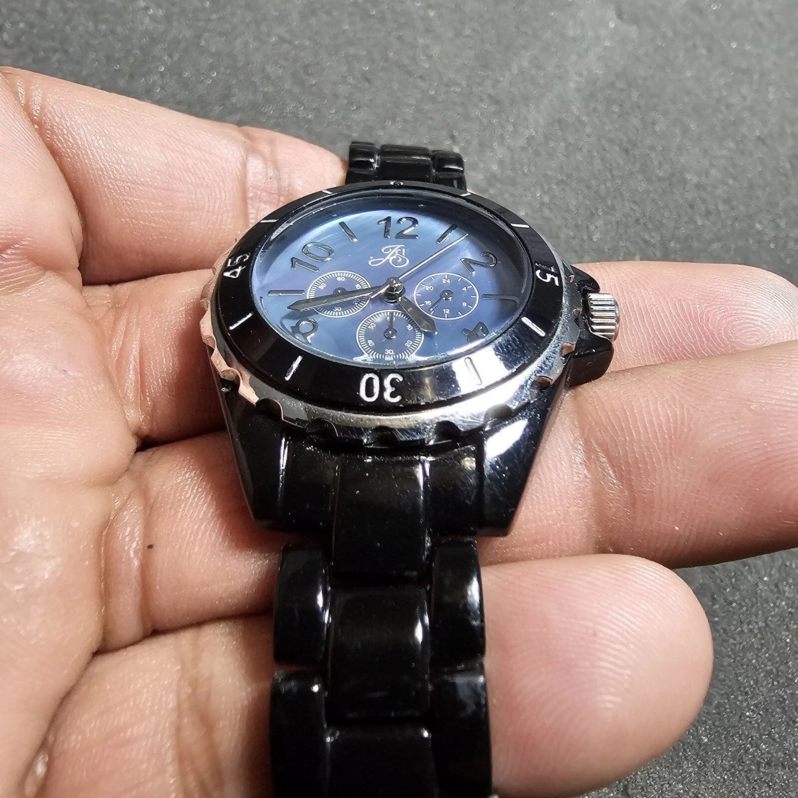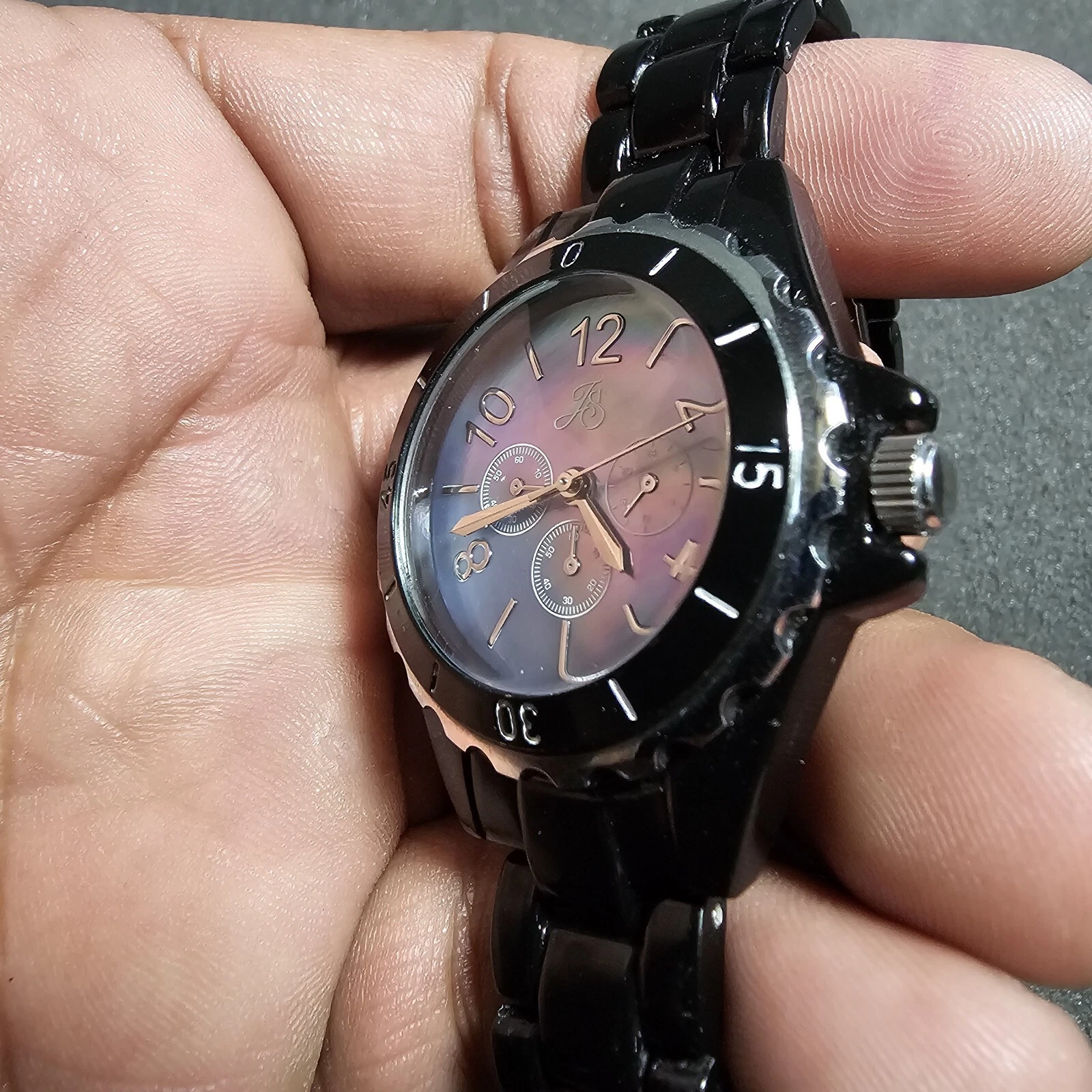 JS Ladies Quartz Fashion Watch Black With MOP dial G348-10 Working New Battery