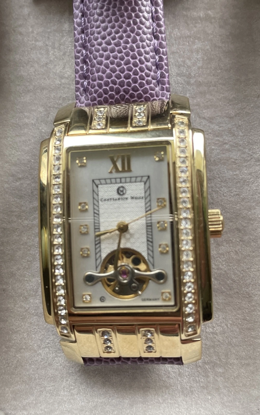 Constantin Weis Gold Plated MechanicalWatch w/ Purple Leather Strap + Box