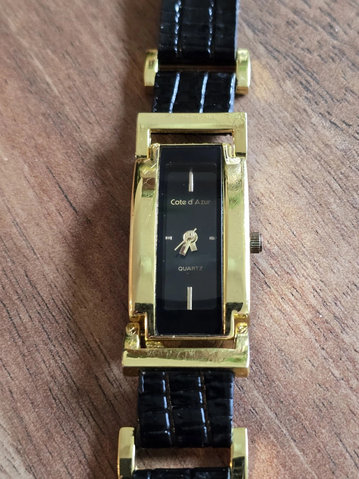Cote D’ Azur Gold Tone Black Leather Band  Vintage Watch