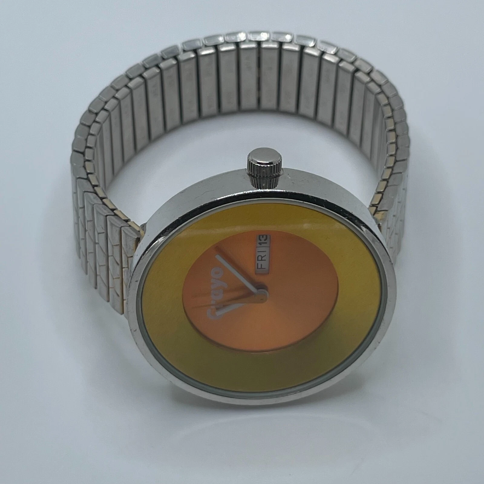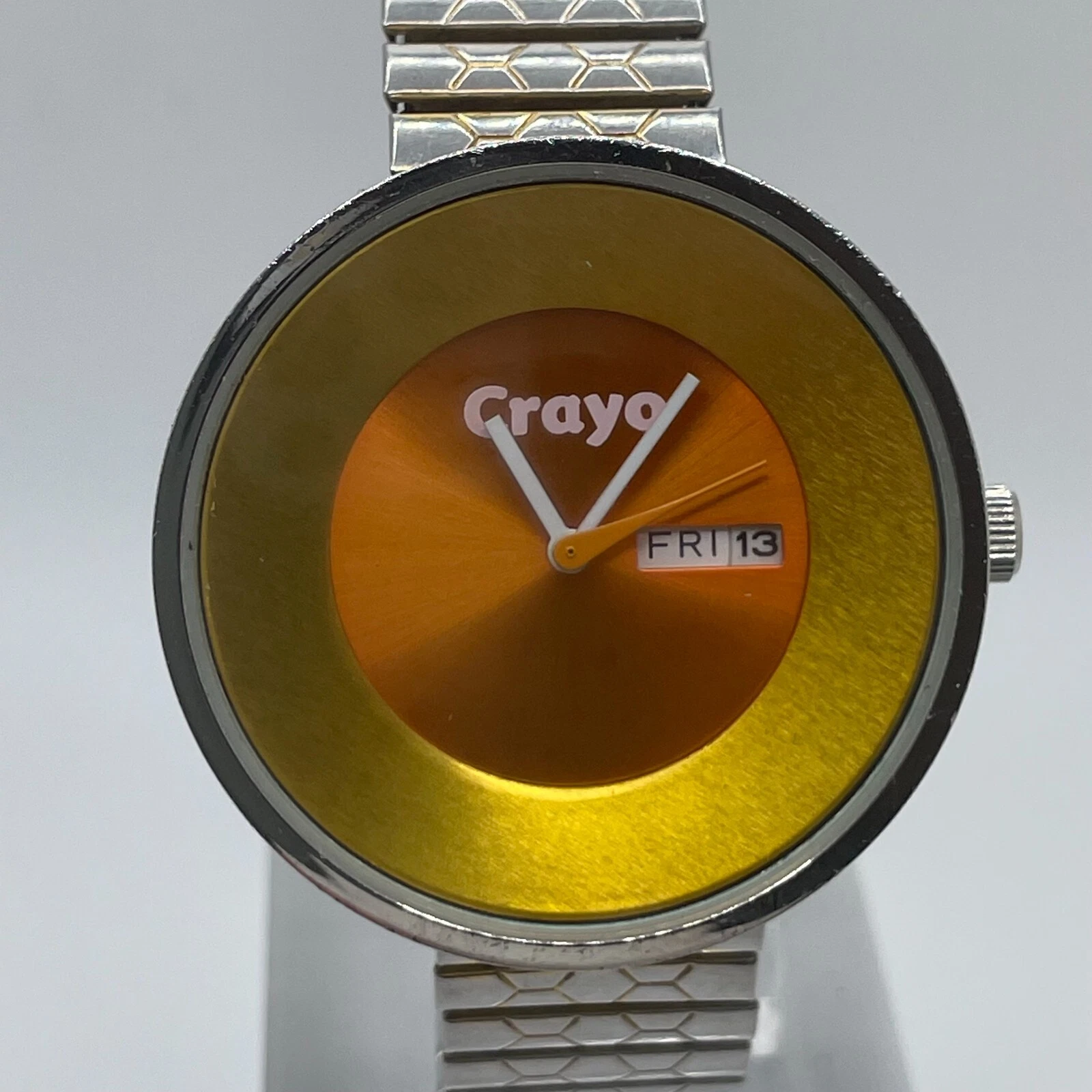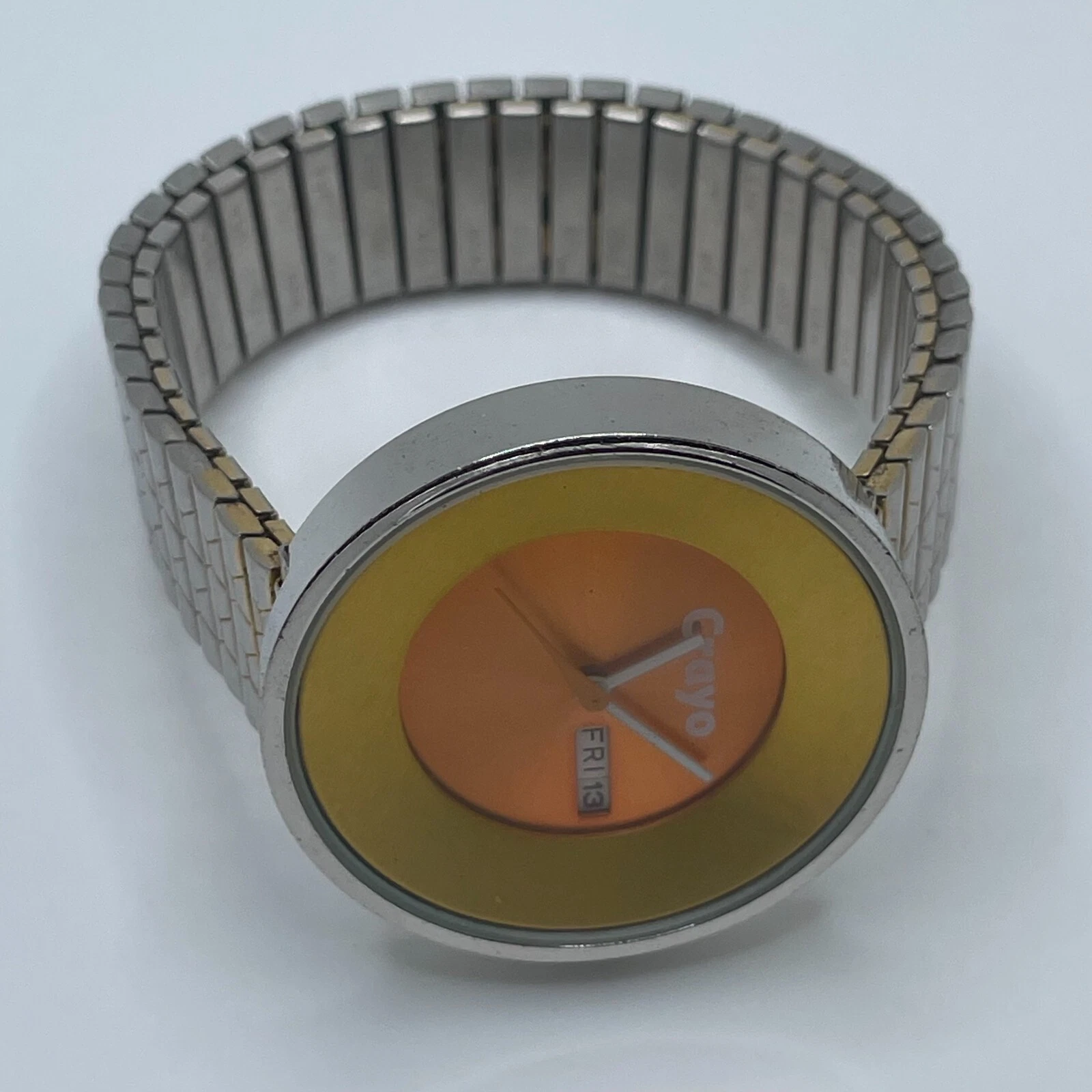 Crayo Watch Womens Day Date 40mm Case Orange Dial Stretch Band Quartz Analog