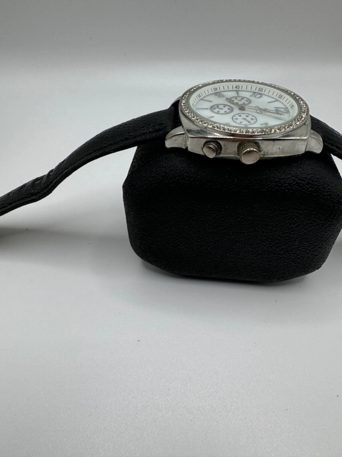 Womens JS watch with Rinestones amd mother of pear look face new battery!