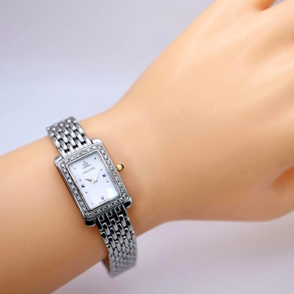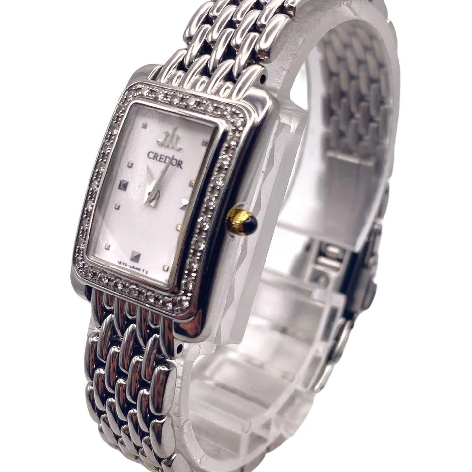 Credor Seiko Diamond Bezel Square Watch Model 594 - Authentic Timepiece