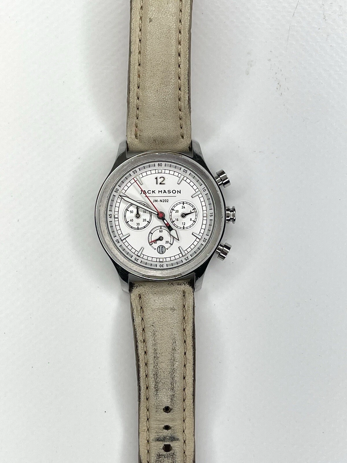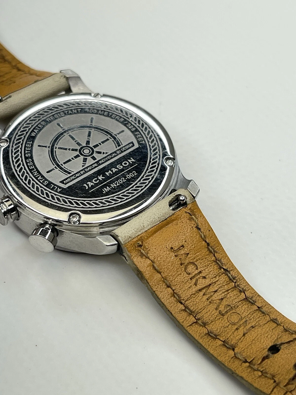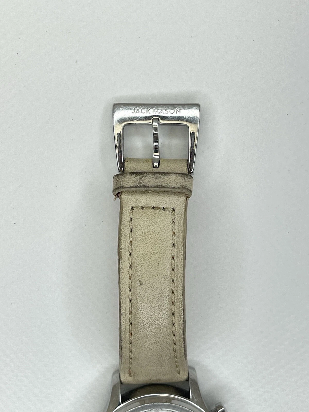 Jack Mason JM N202 002 Wrist Watch Nautical Stainless Steel Cream Leather Band