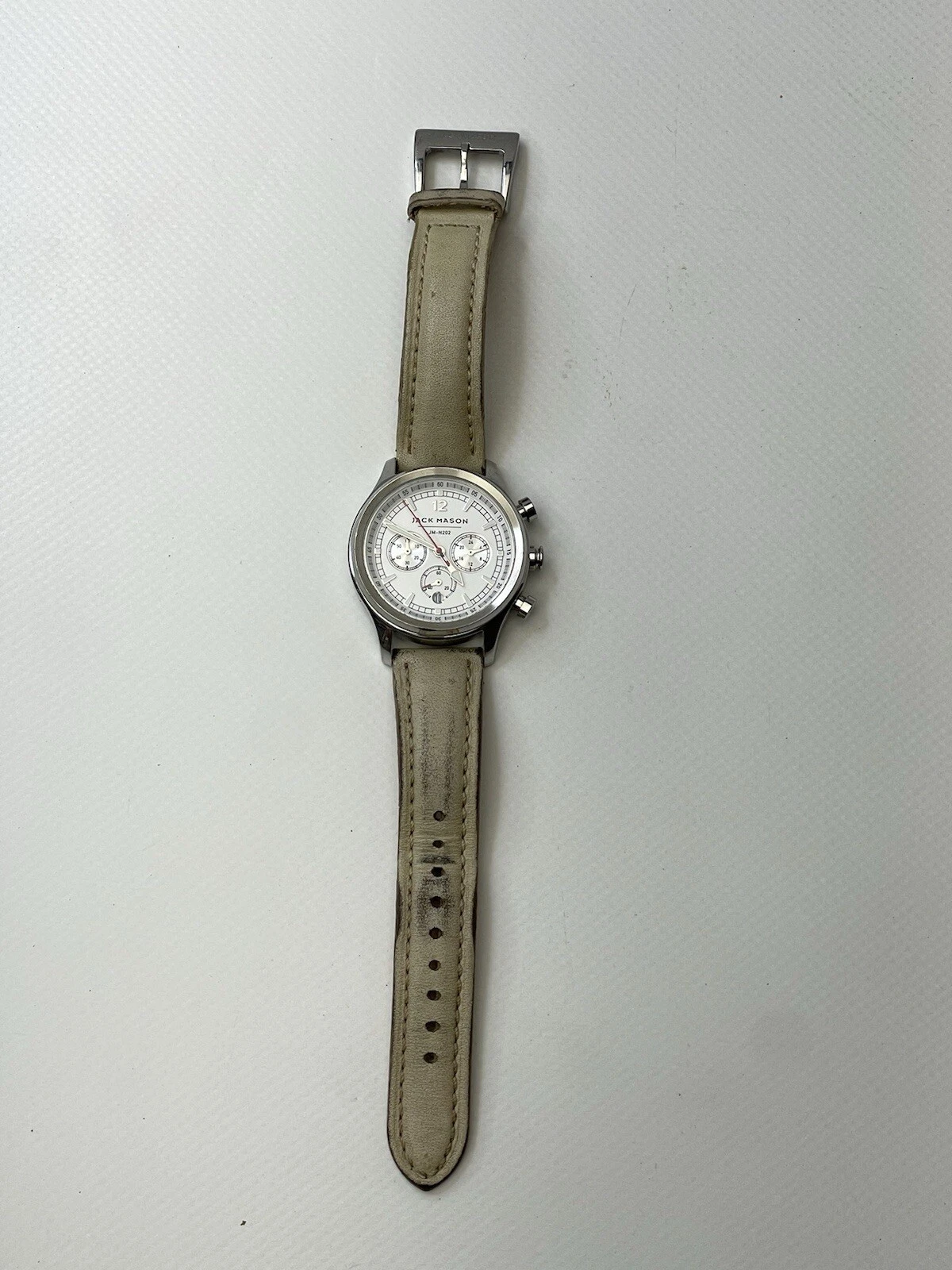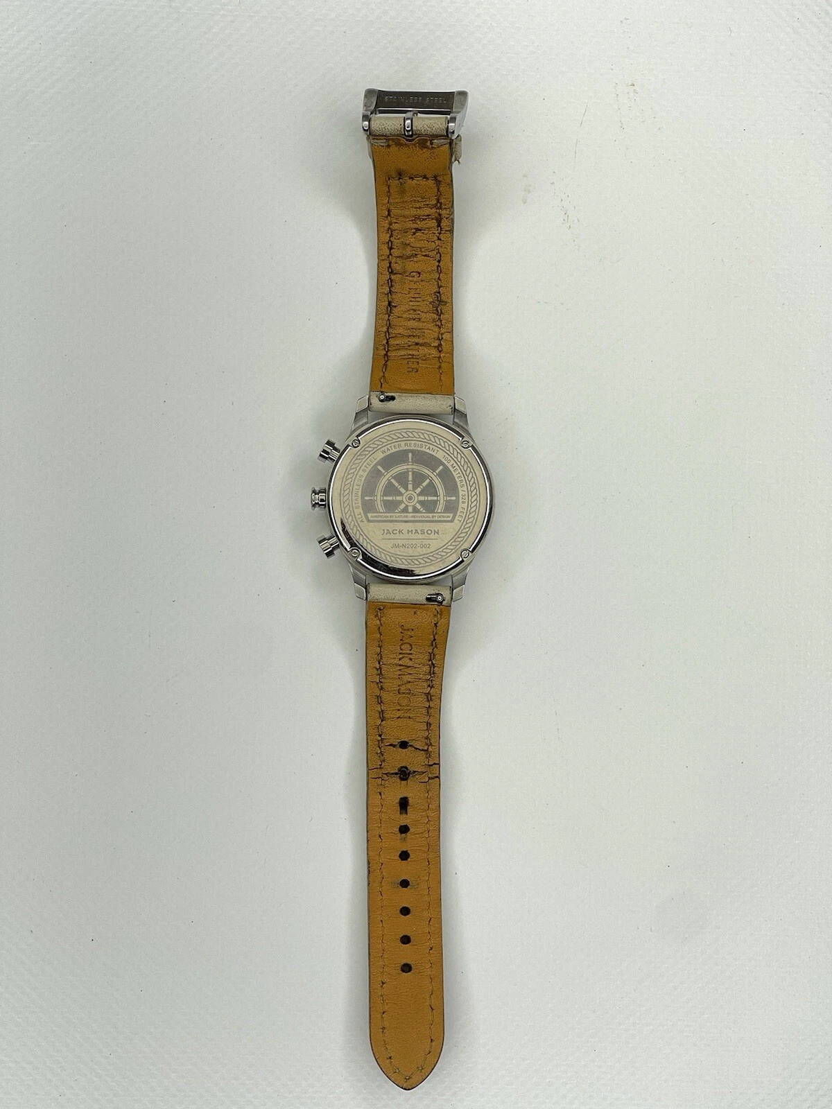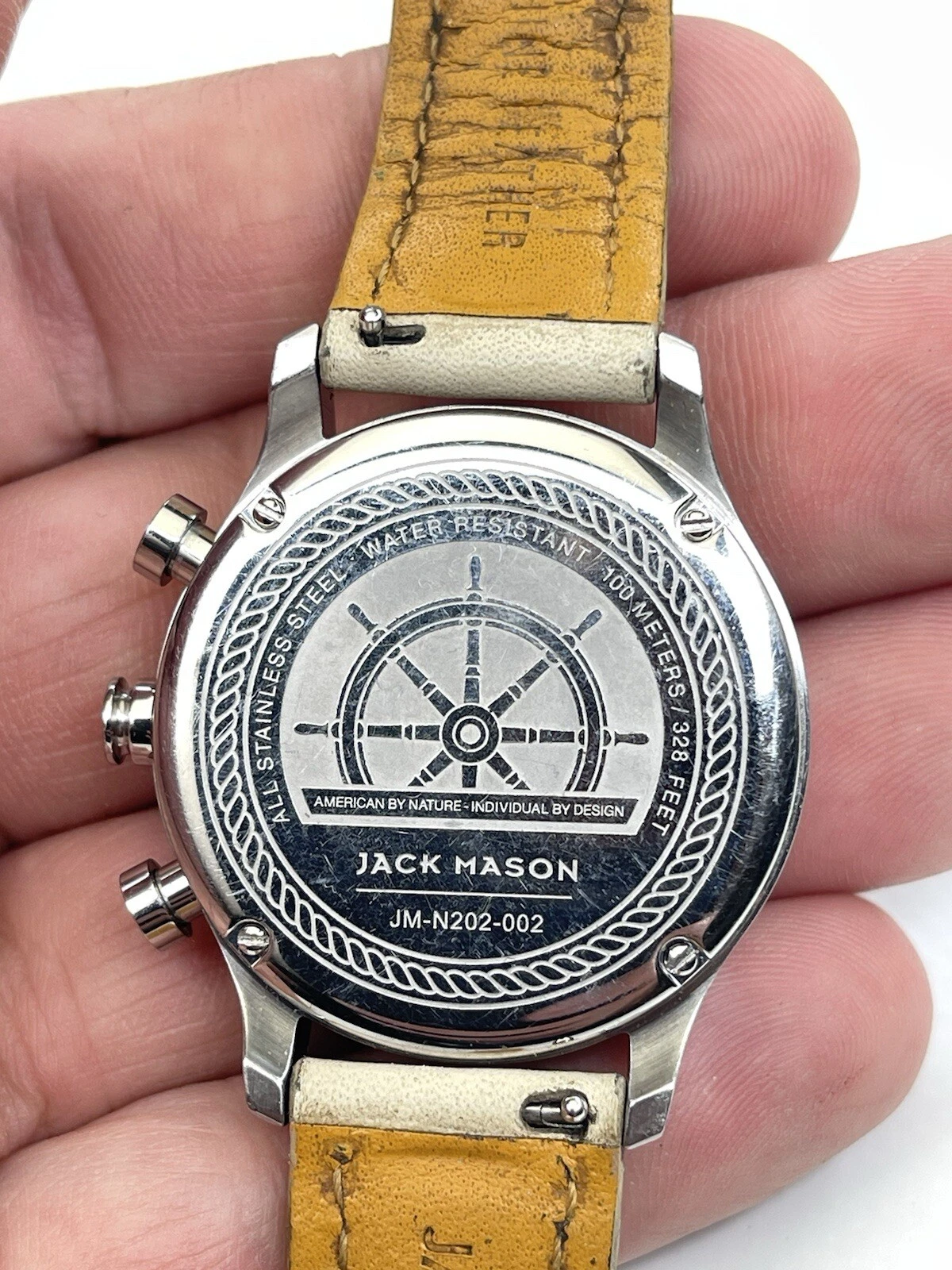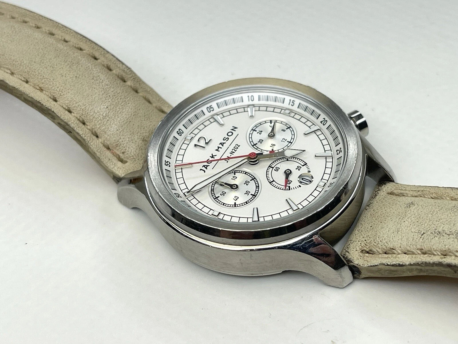 Jack Mason JM N202 002 Wrist Watch Nautical Stainless Steel Cream Leather Band