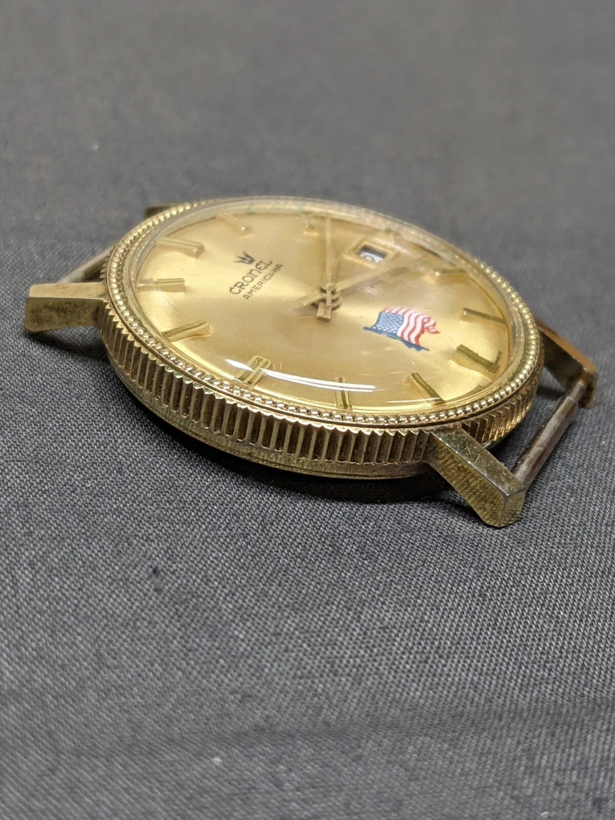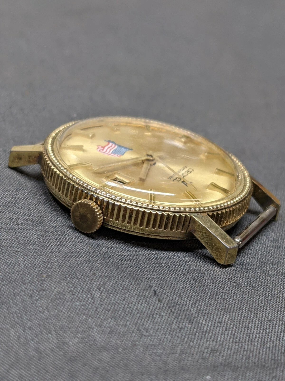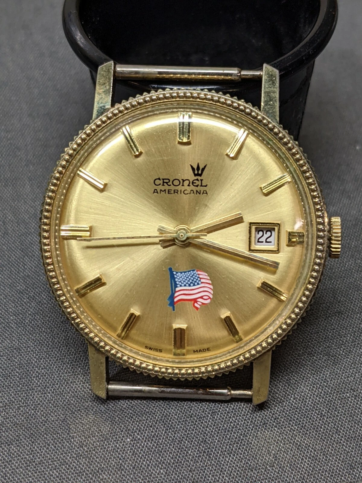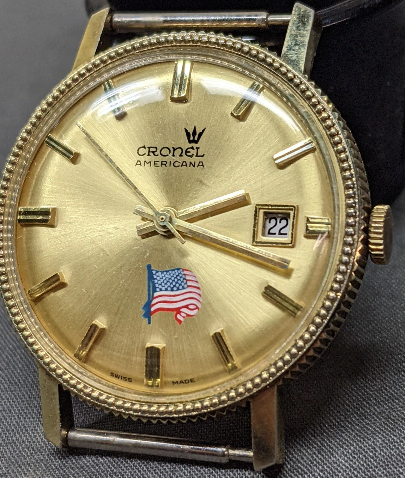 UNIQUE Cronel Americana Swiss Made Windup. American Flag.. Works Good.