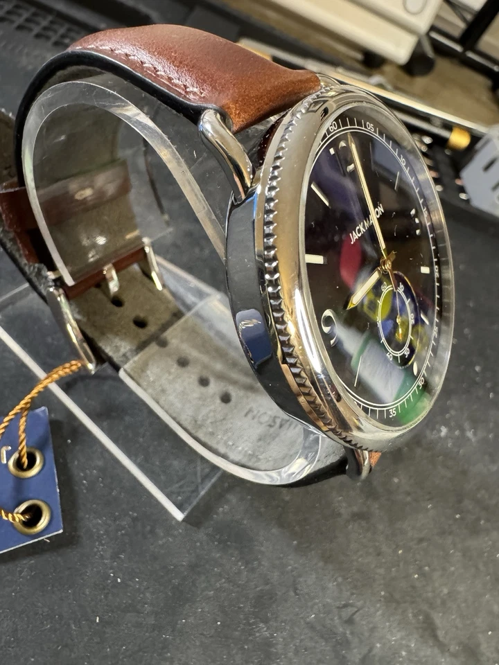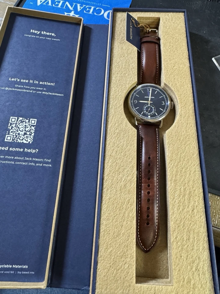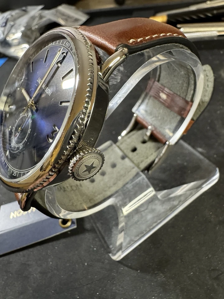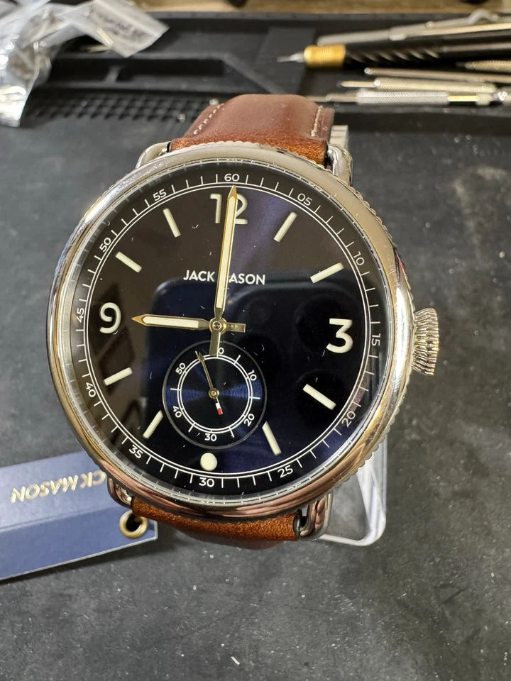 Jack Mason Avigator 45MM Dark Blue w/ Stanless Case Brown leather Strap
