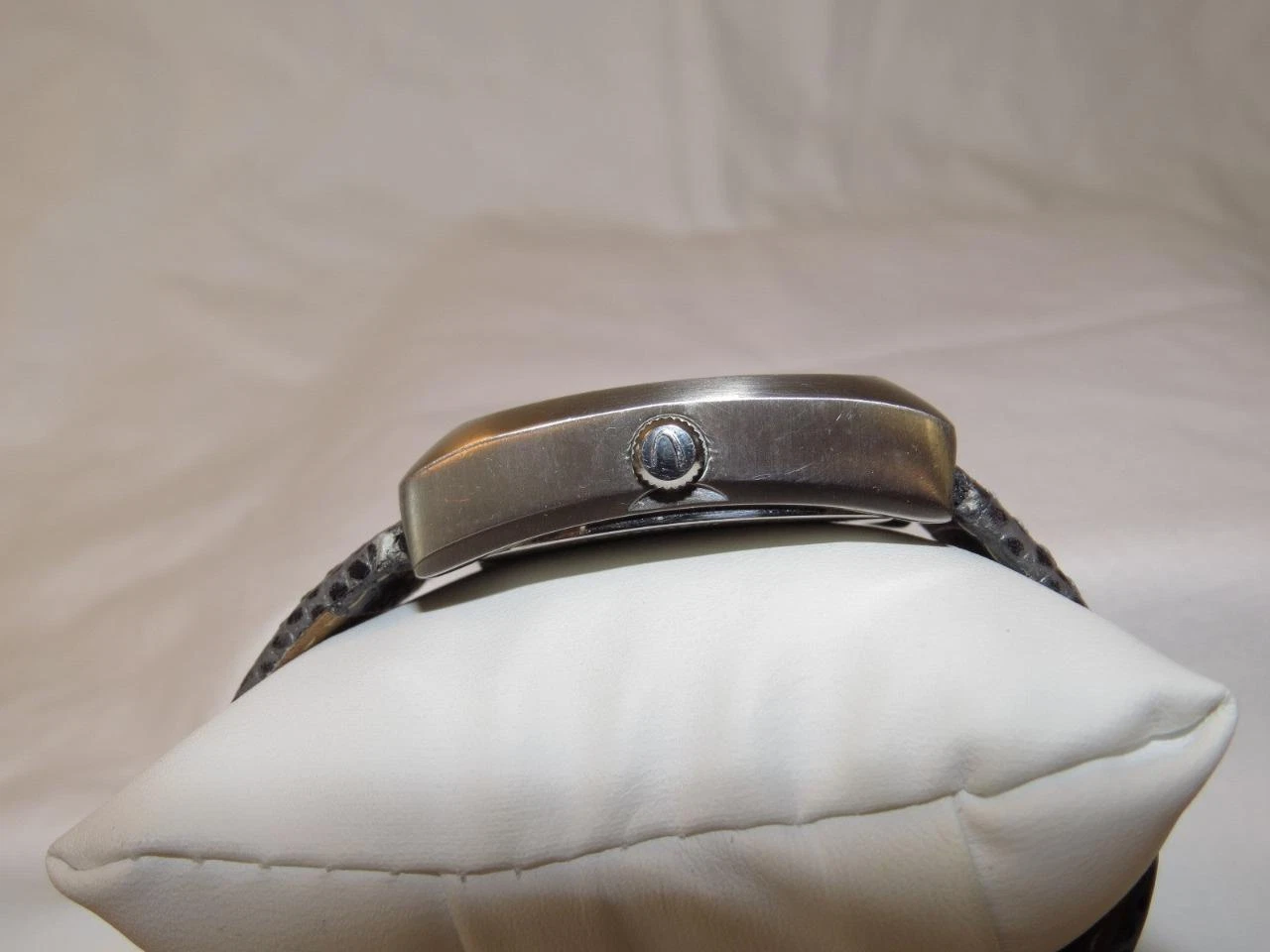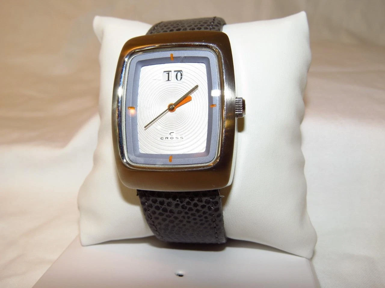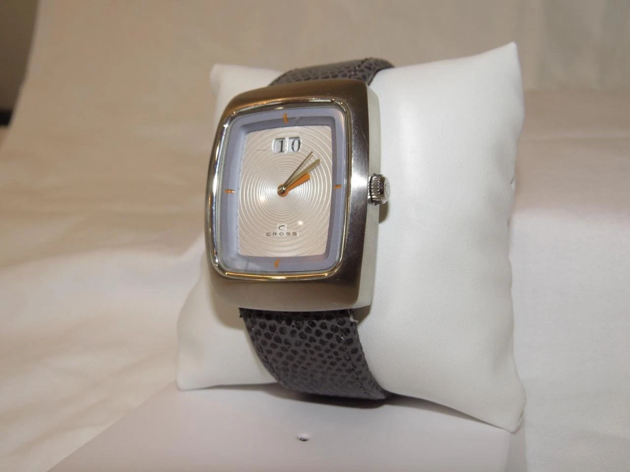 Men's CROSS Stainless Steel Watch Grey Lizard Grain Band NOS Date Orange accents