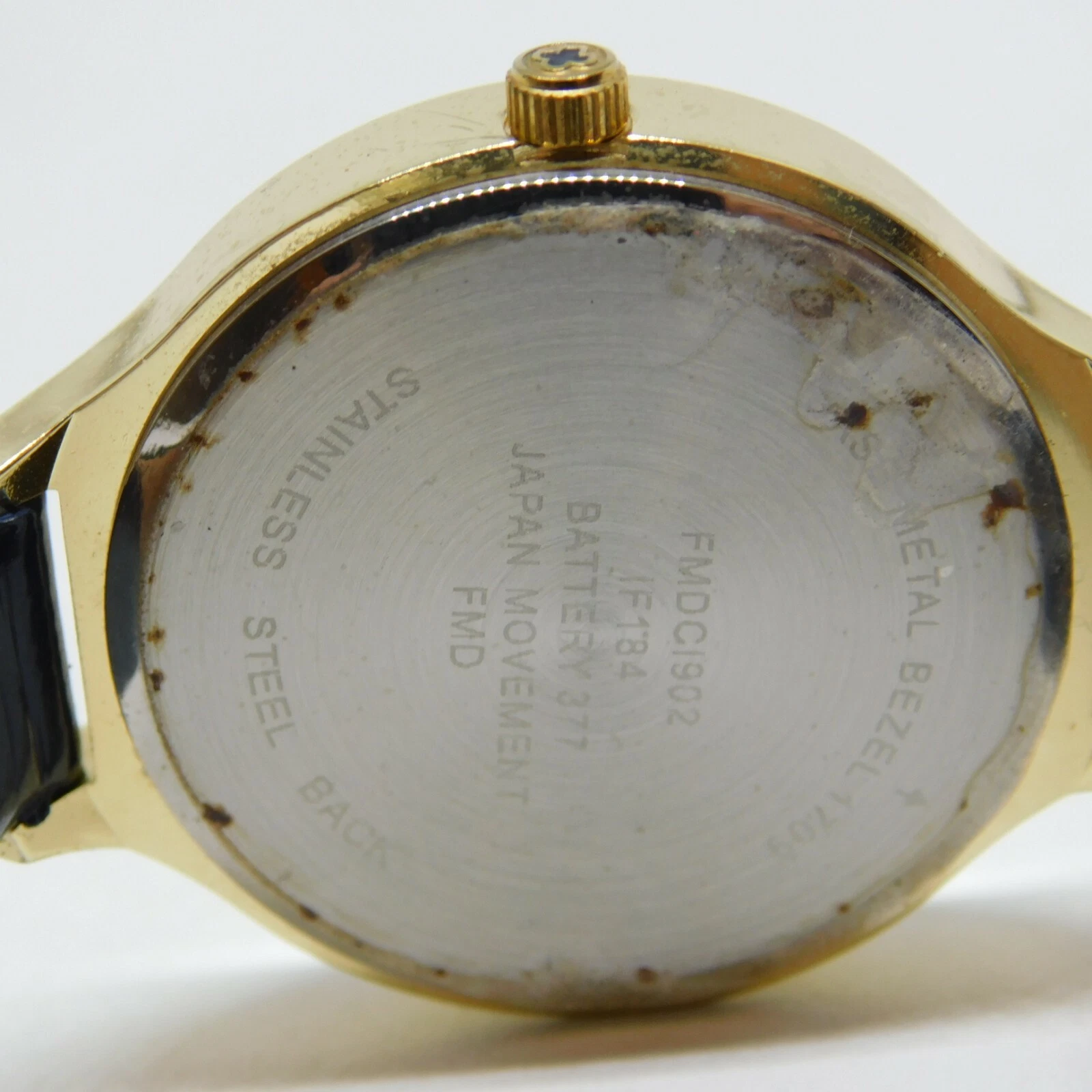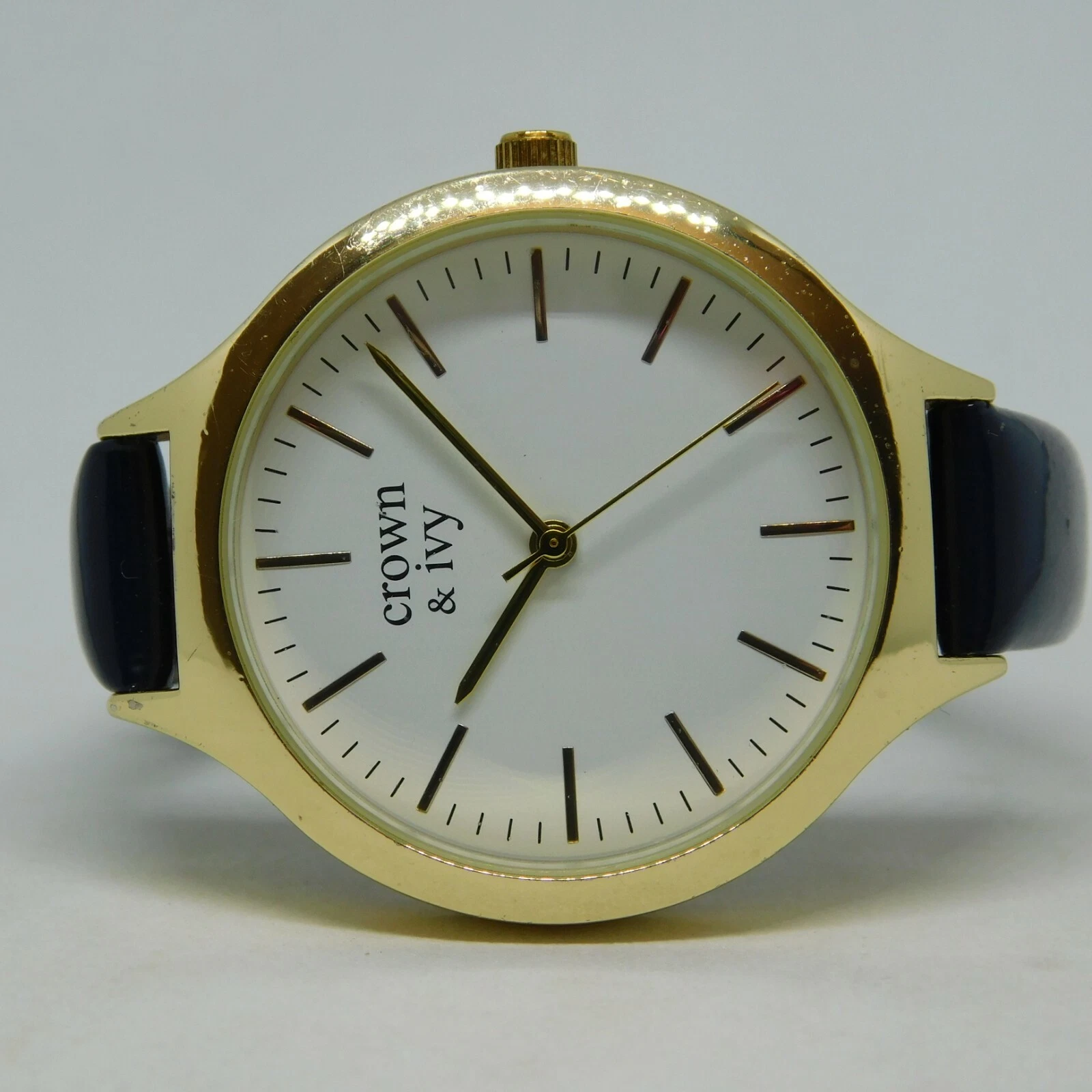 Crown & Ivy FMDCI902 Gold Tone Case Genuine Leather Quartz Analog Ladies Watch