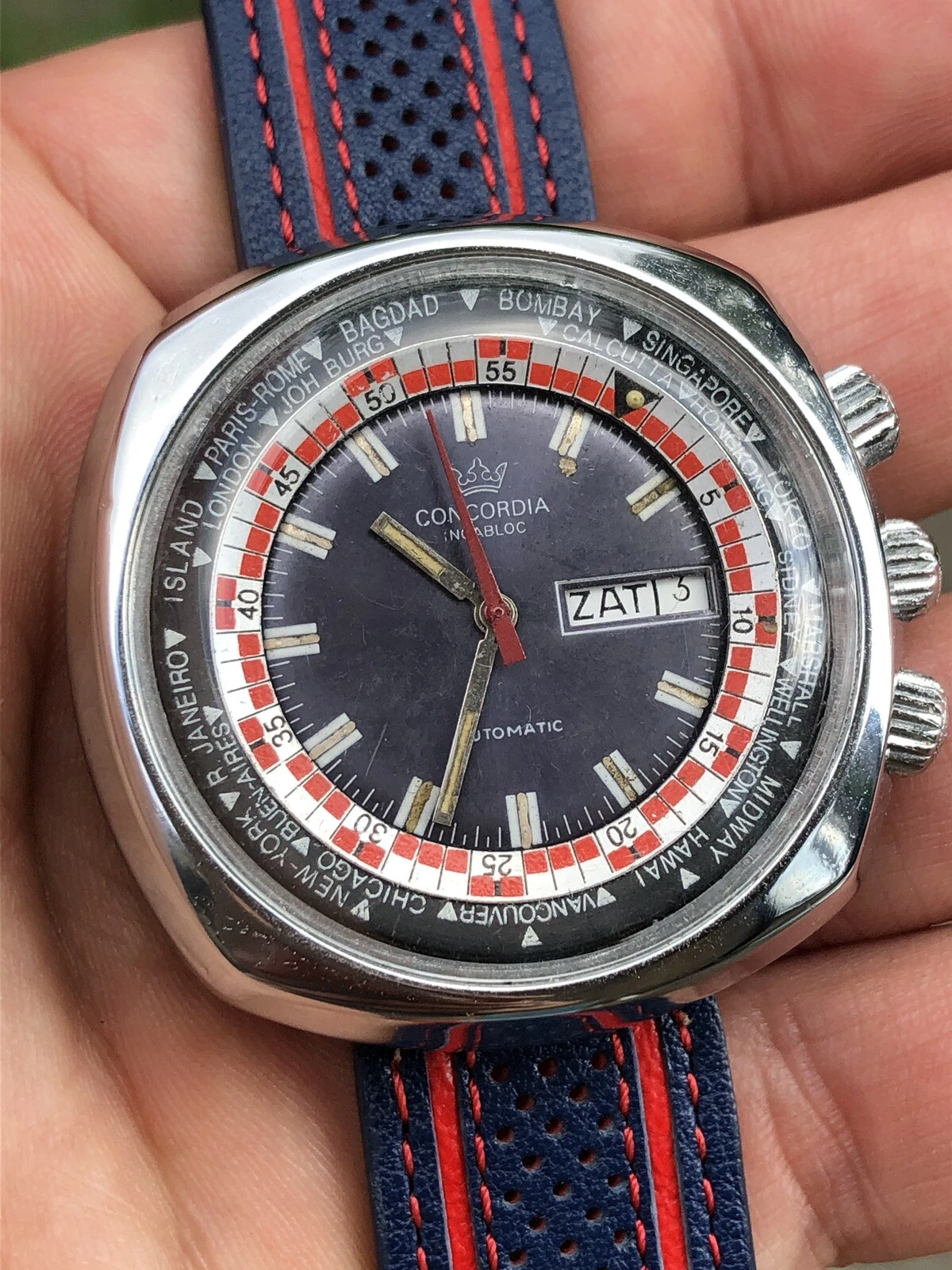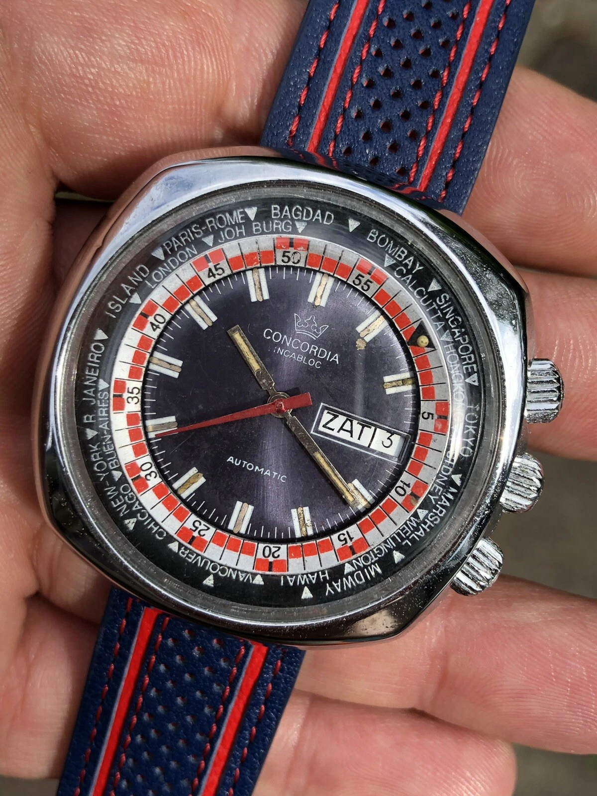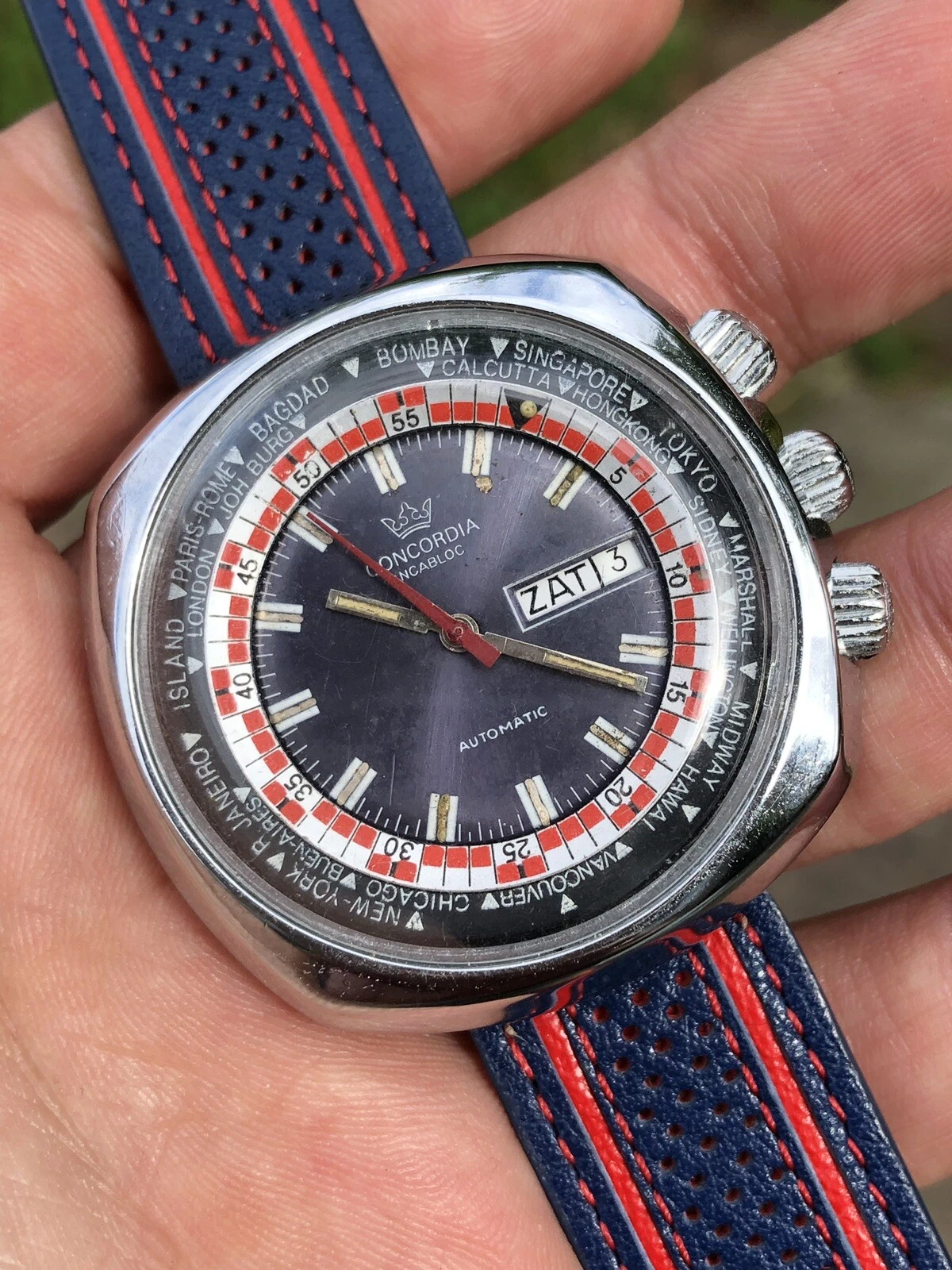 Vintage Concordia Triple Crown World Timer Mens Watch Automatic FE 5611 43,5mm