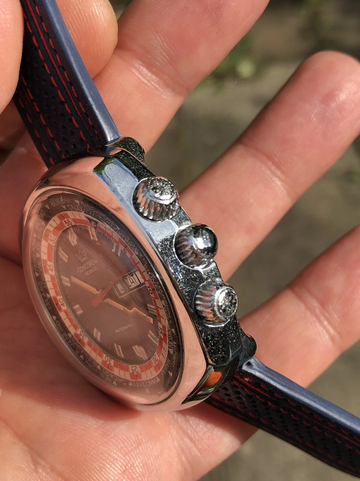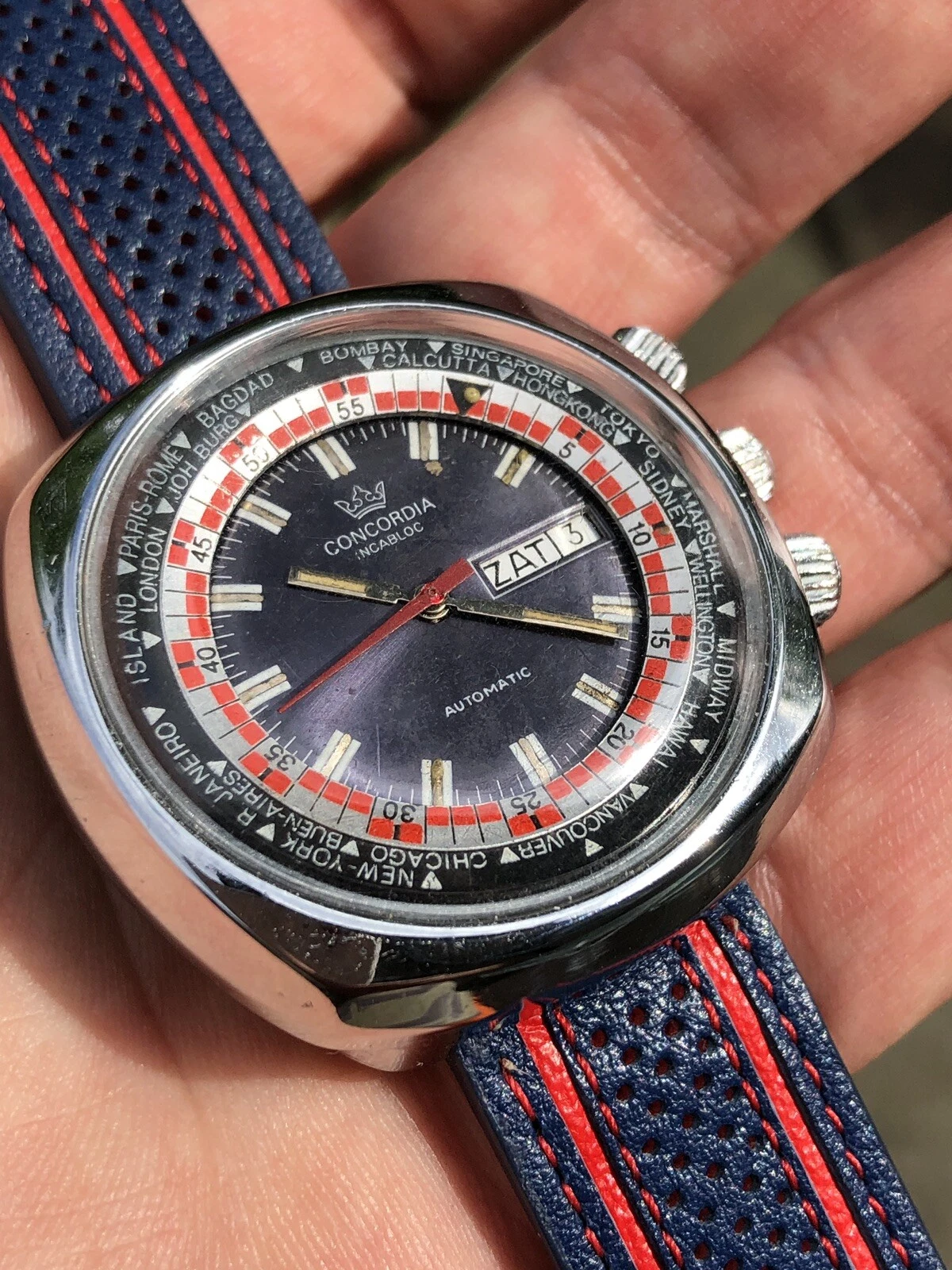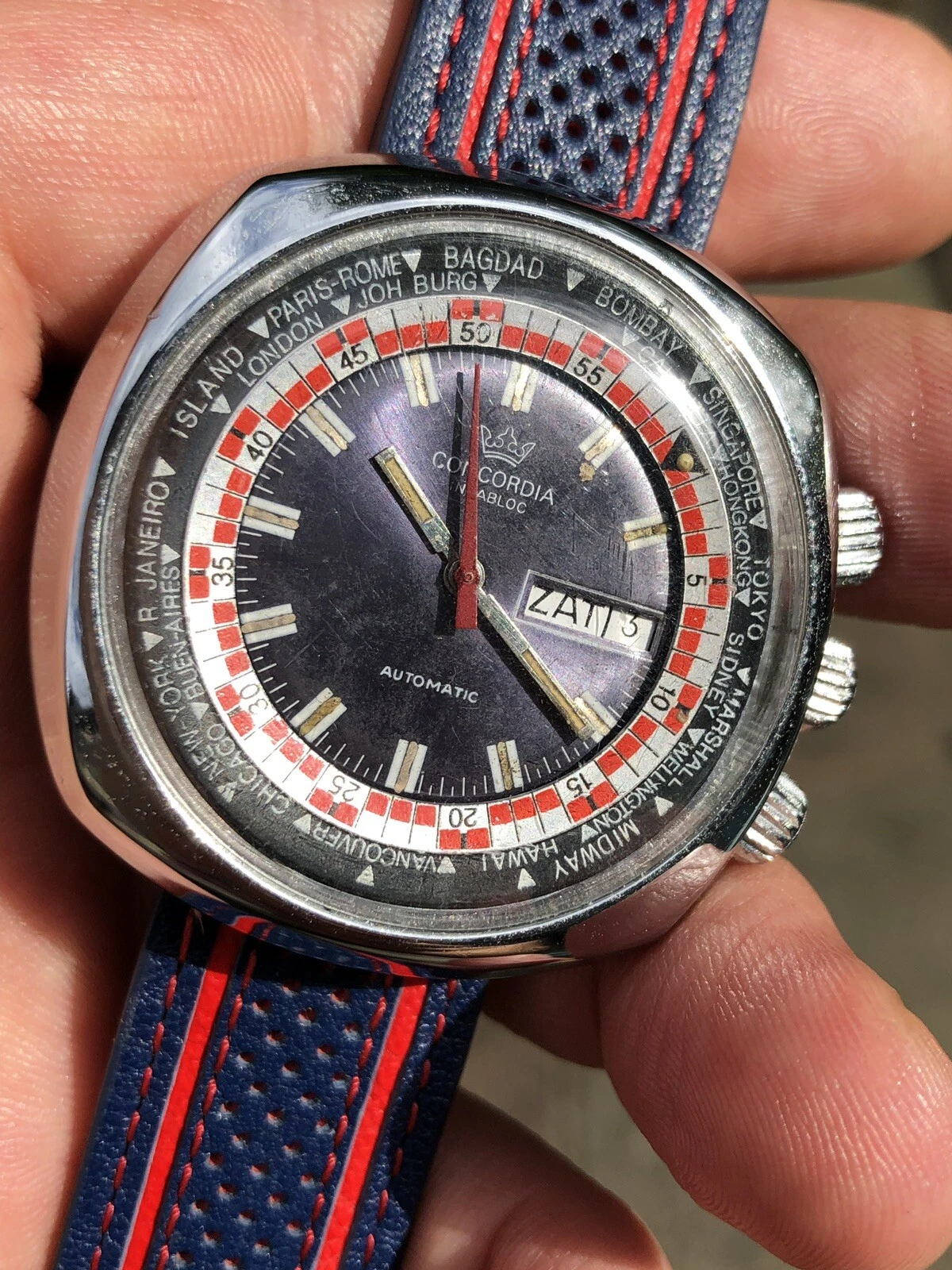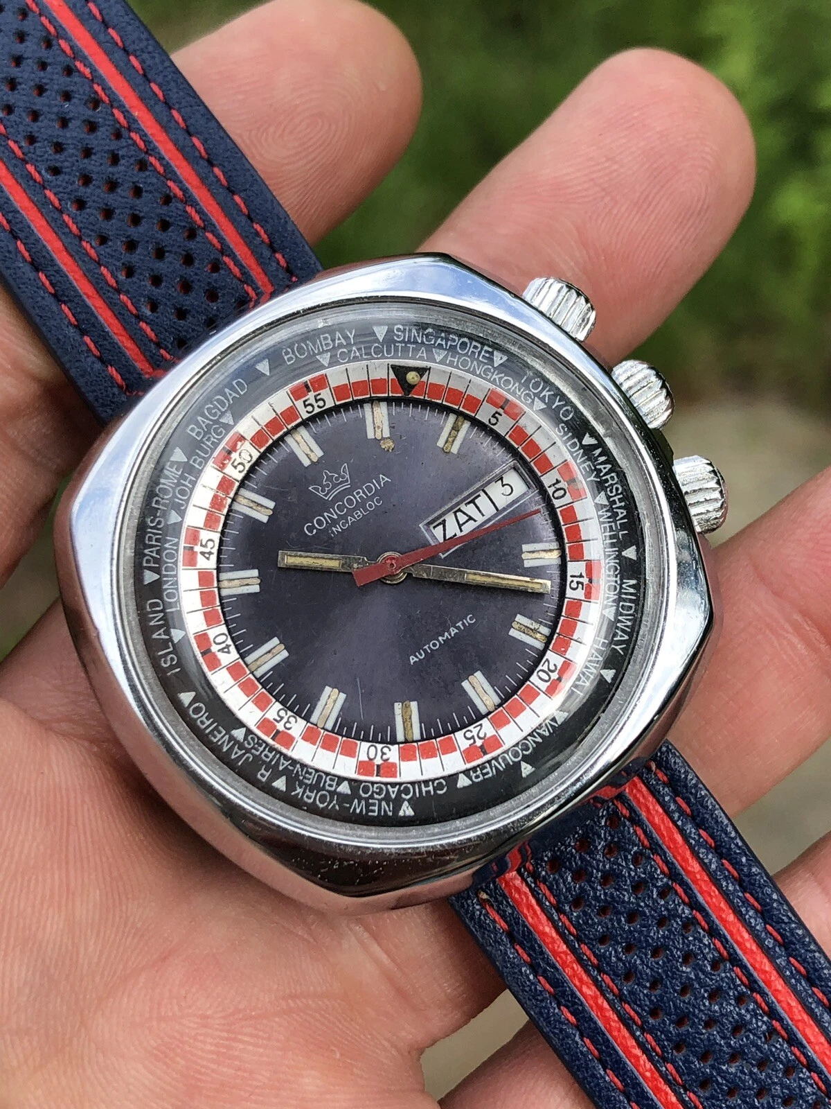Vintage Concordia Triple Crown World Timer Mens Watch Automatic FE 5611 43,5mm