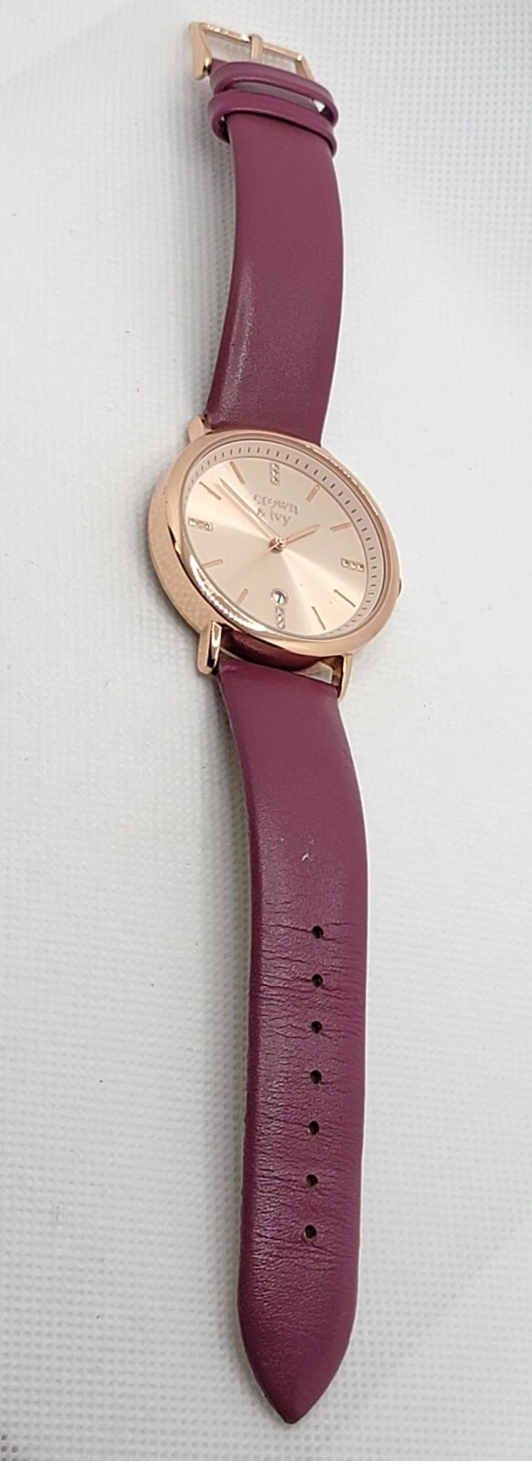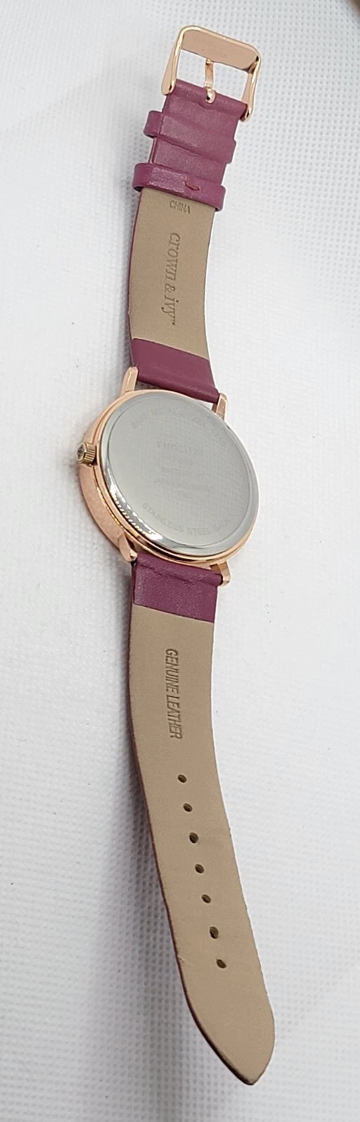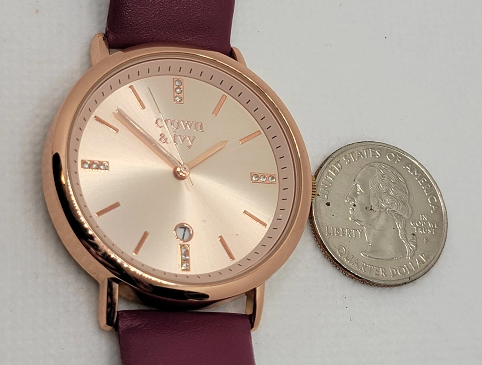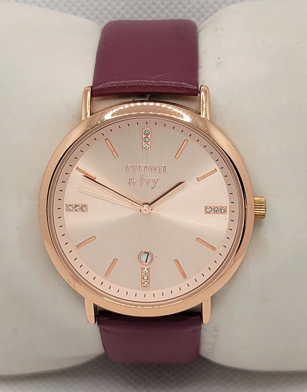 Ladies Crown & Ivy Round Rose Gold Tone Dial Leather Band Watch H6