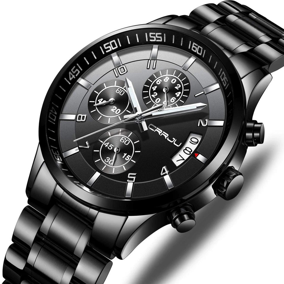 Men's Black Watch Fashion Business Chronograph Quartz Wristwatches,Luxury Sta...