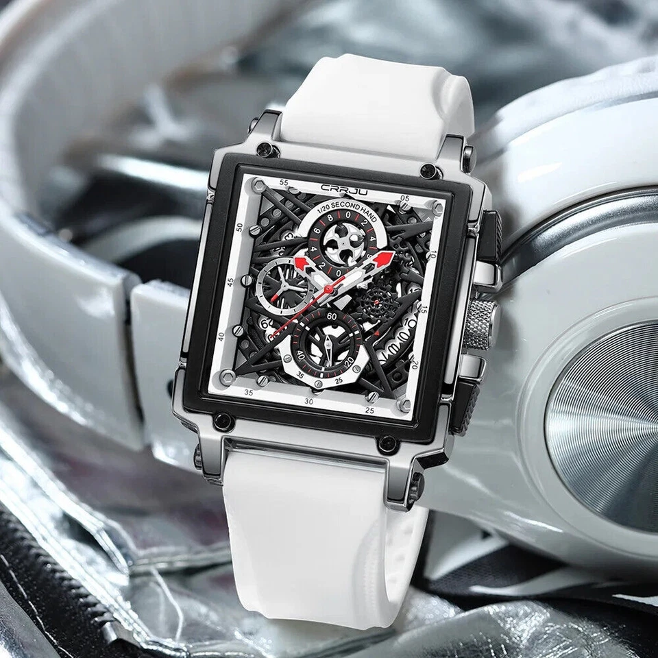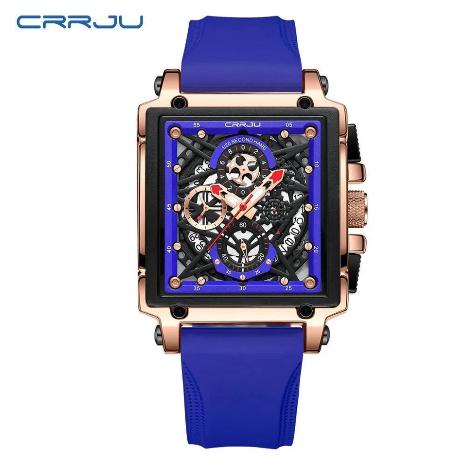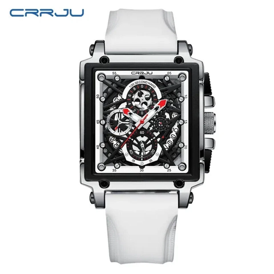 CRRJU Men Watch Brand Rectangle Quartz Wristwatch Slicone Strap Males Watches