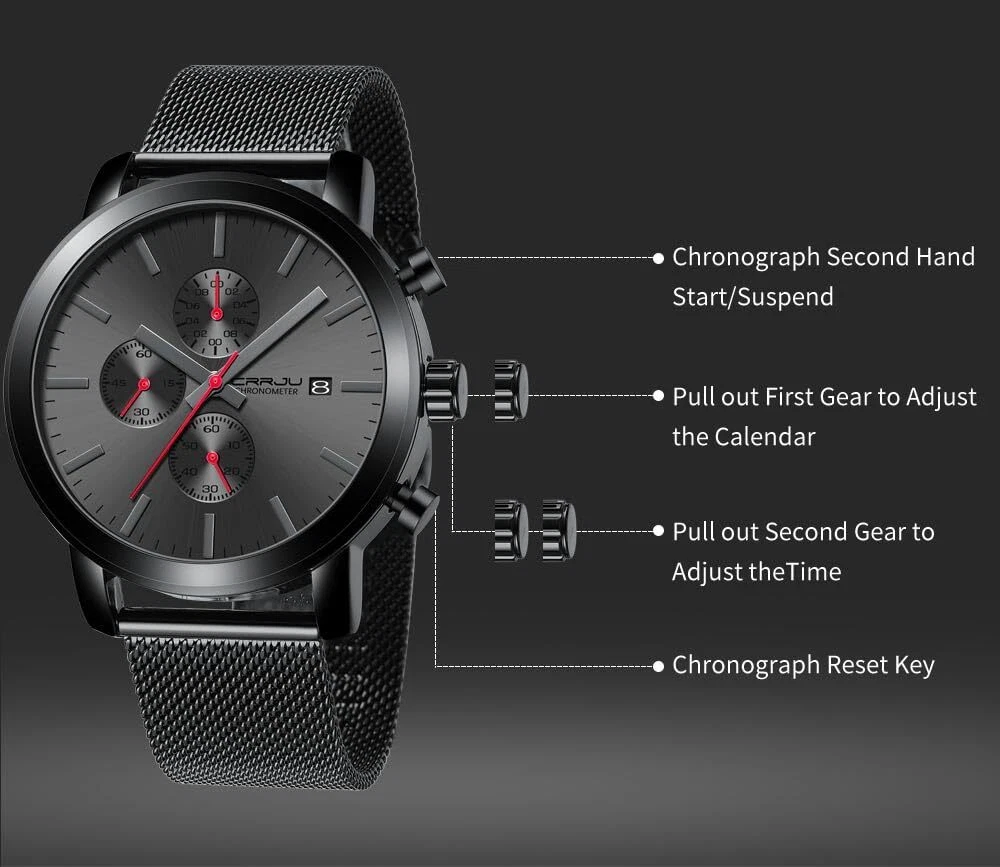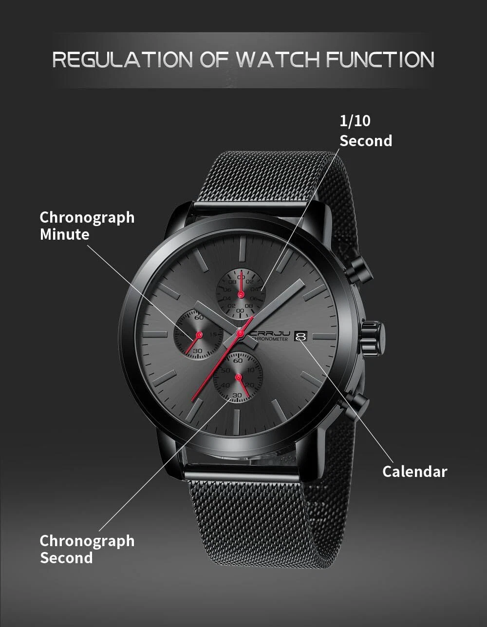 CRRJU Mens Stylish Casual Quartz Watches for Men Luxury Waterproof Calendar C...