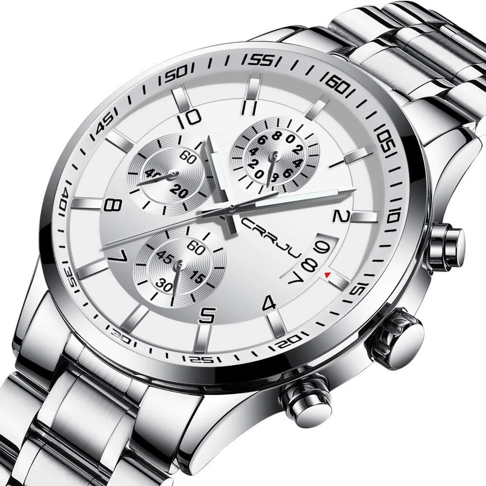 CRRJU Men's Watches Date Chronograph Wristwatches for MenMultifunctional Stai...