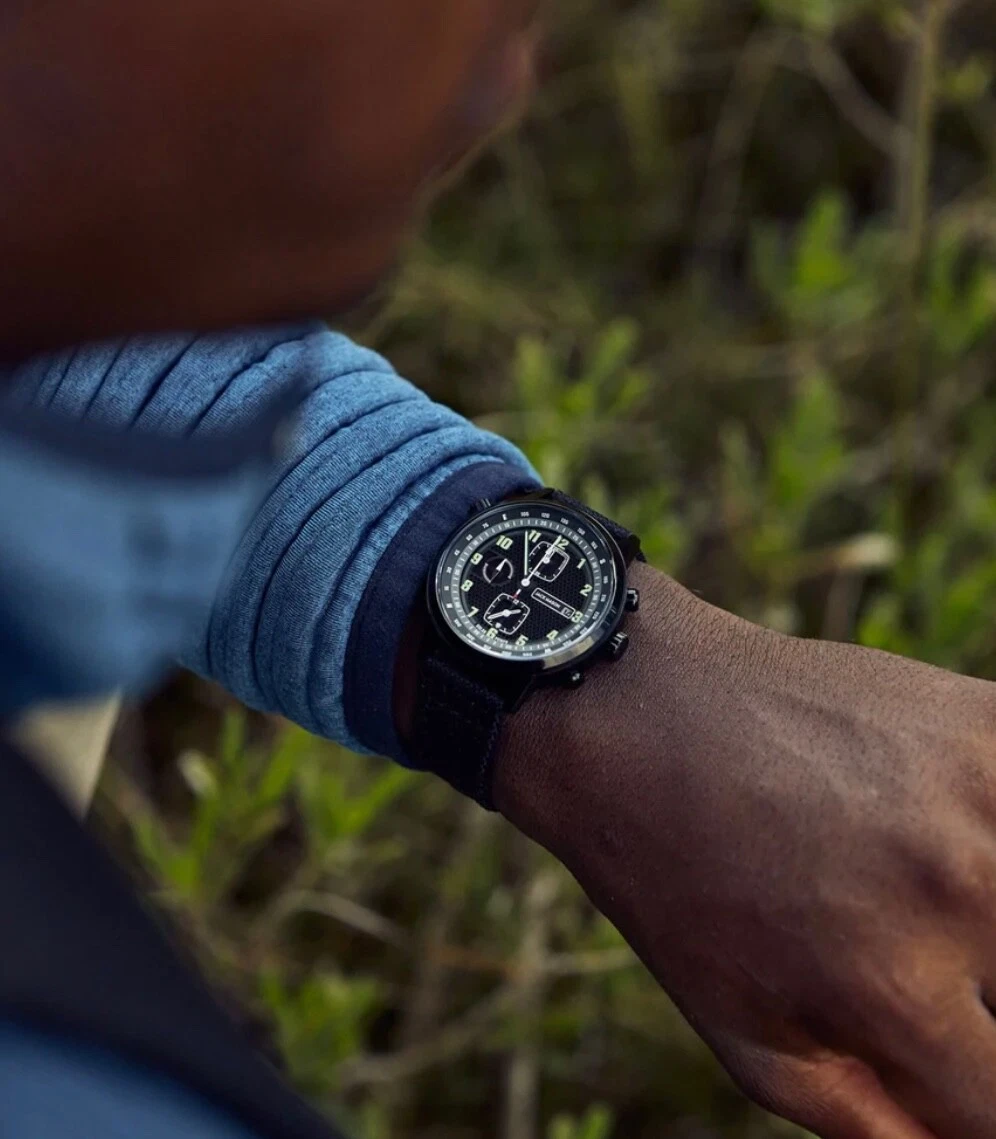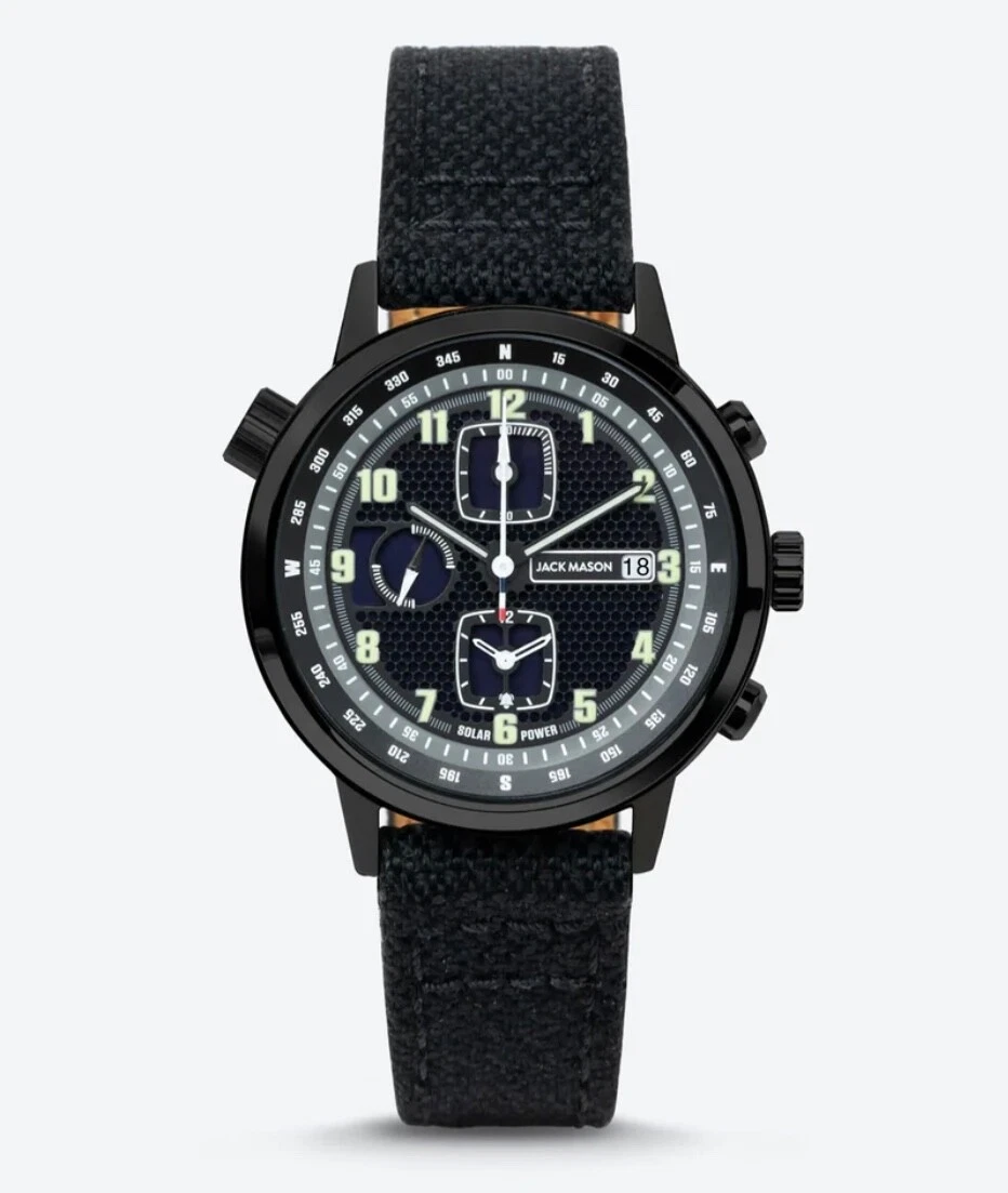 Jack Mason Solar Chronograph, 42mm, Black Dial With Recycled Plastic Strap