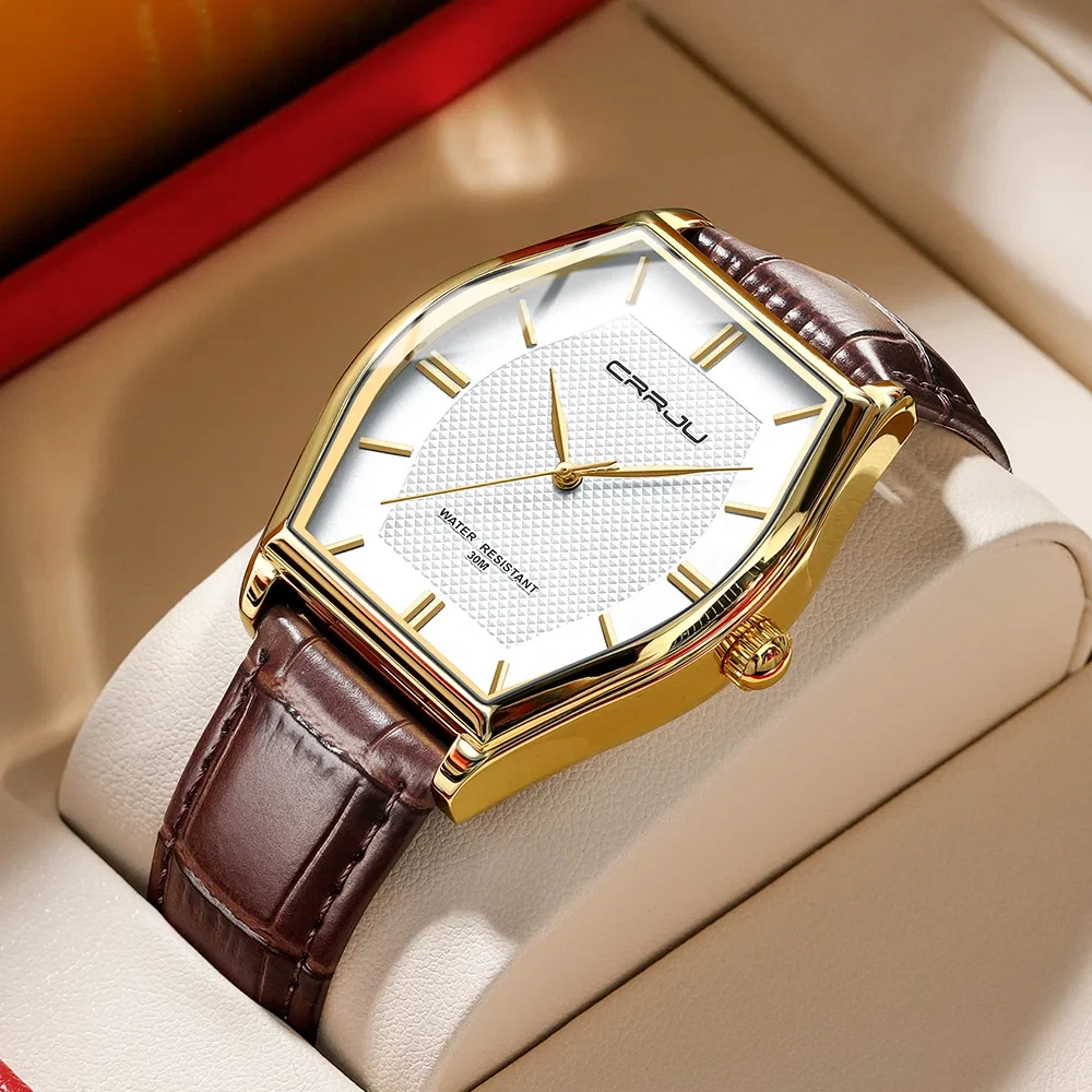 CRRJU Men's Business Watch Quartz Leather Band Waterproof