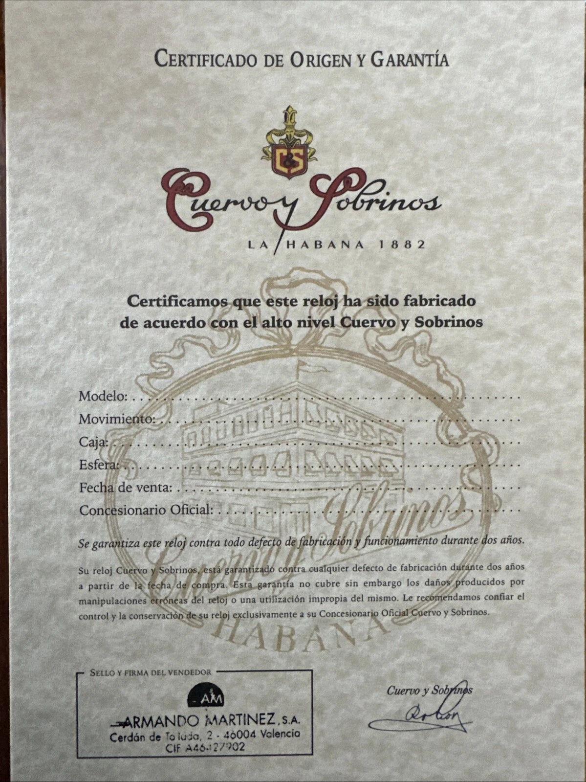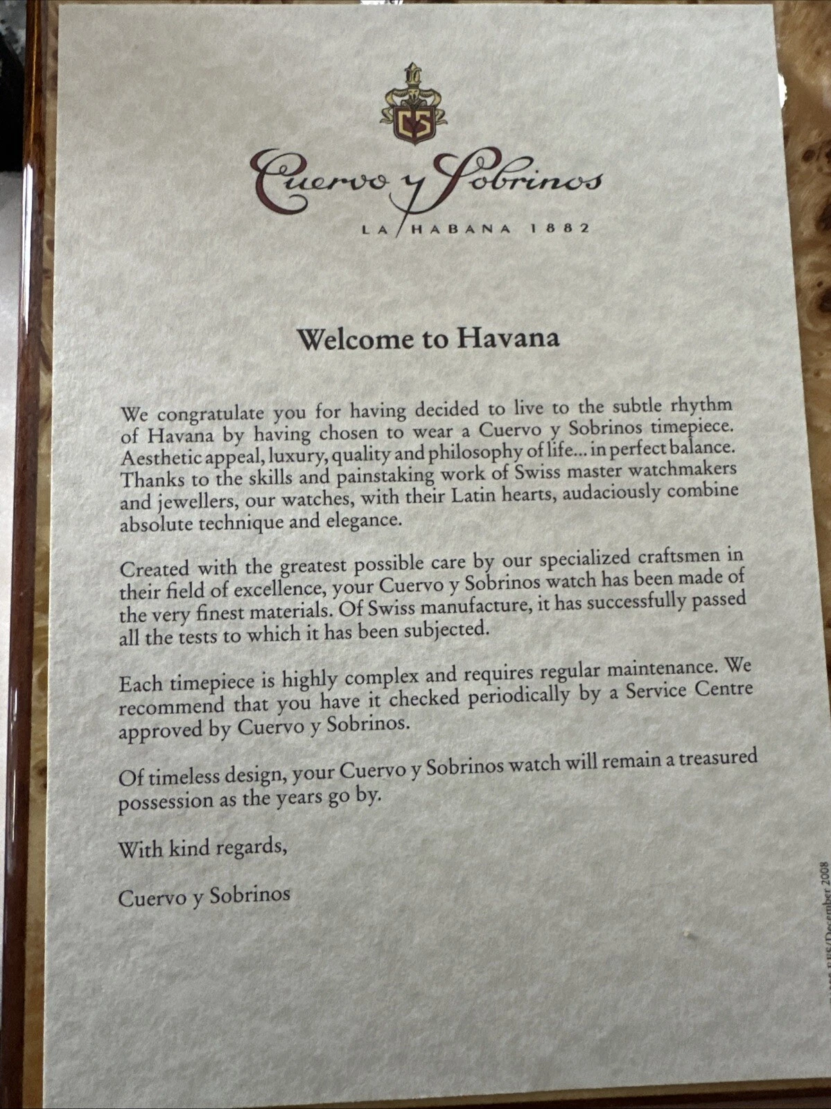 Cuervo y Sobrinos Historiador Flameante 3130.9FG. With Humidor Box .