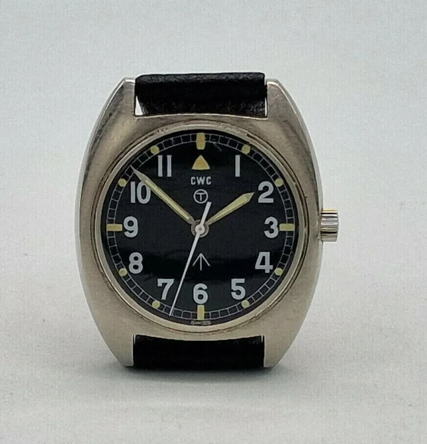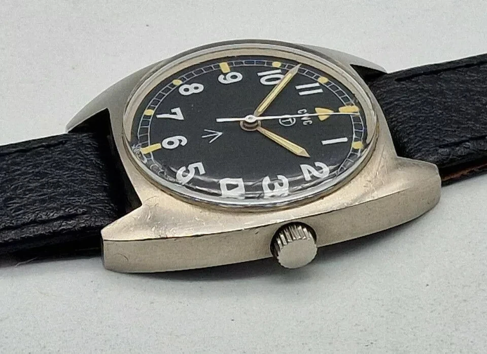 RARE 1976 CWC 6596/76 BRITISH MILITARY BLACK DIAL MANUAL WIND MAN'S WATCH / R074